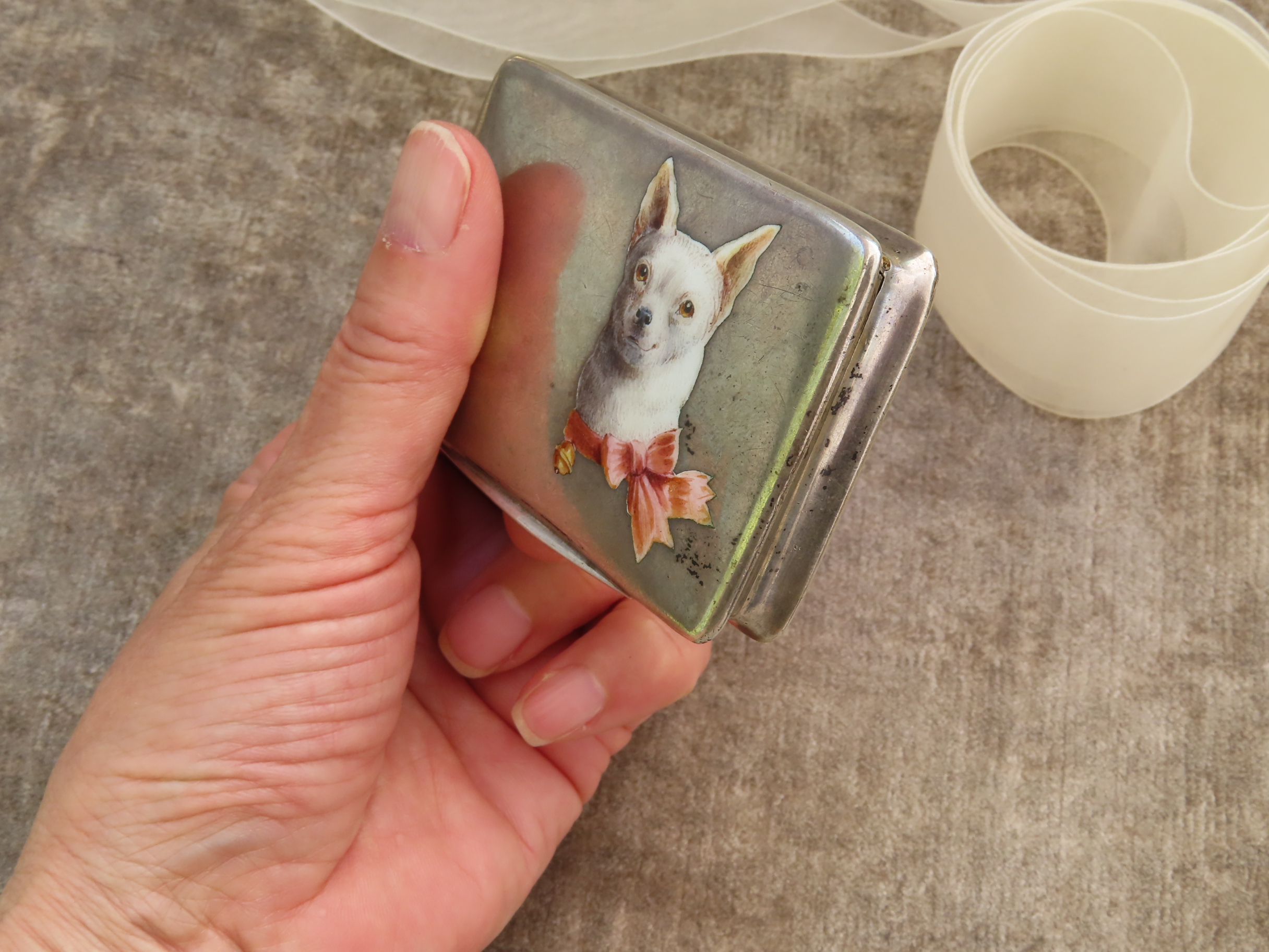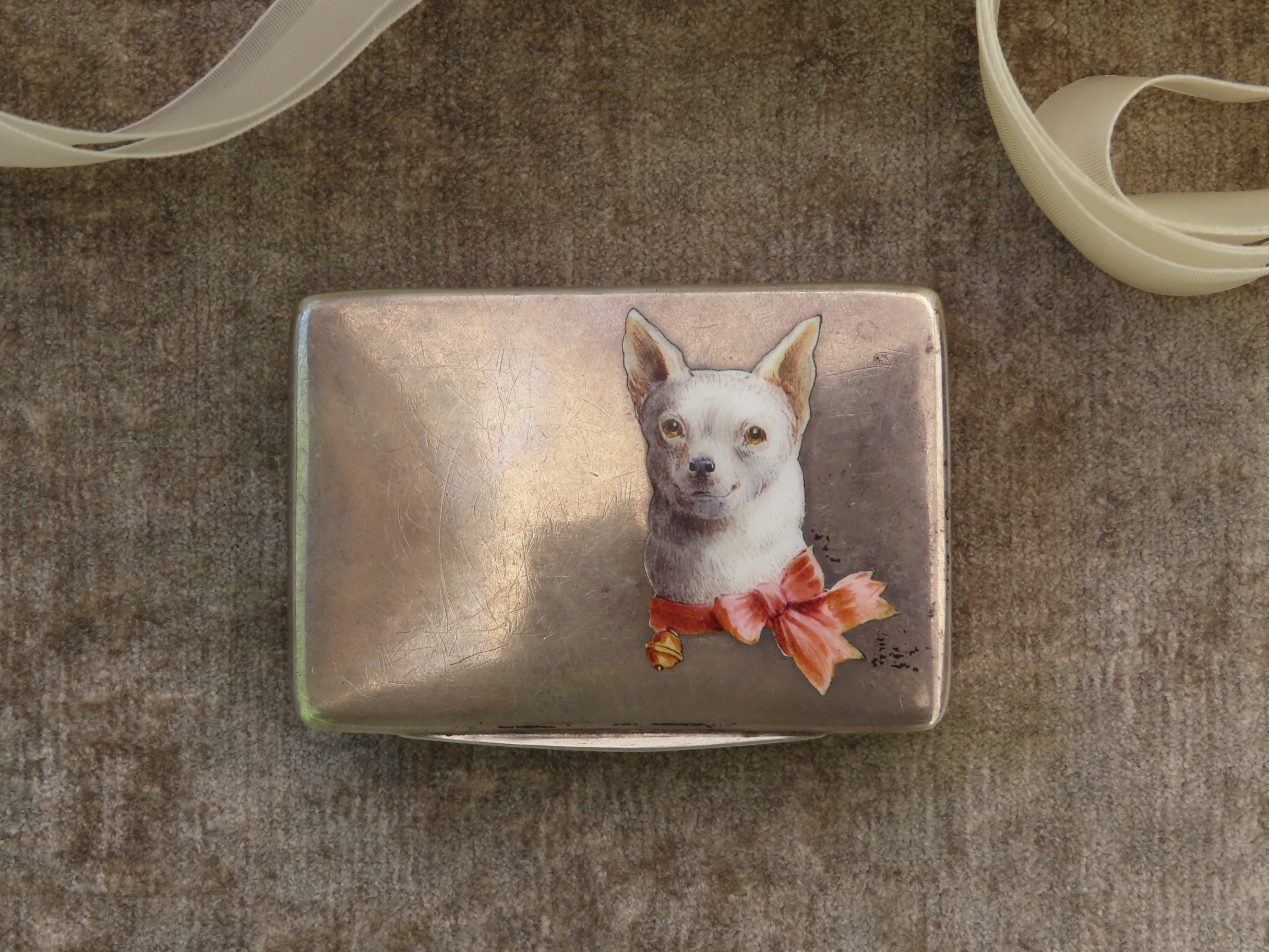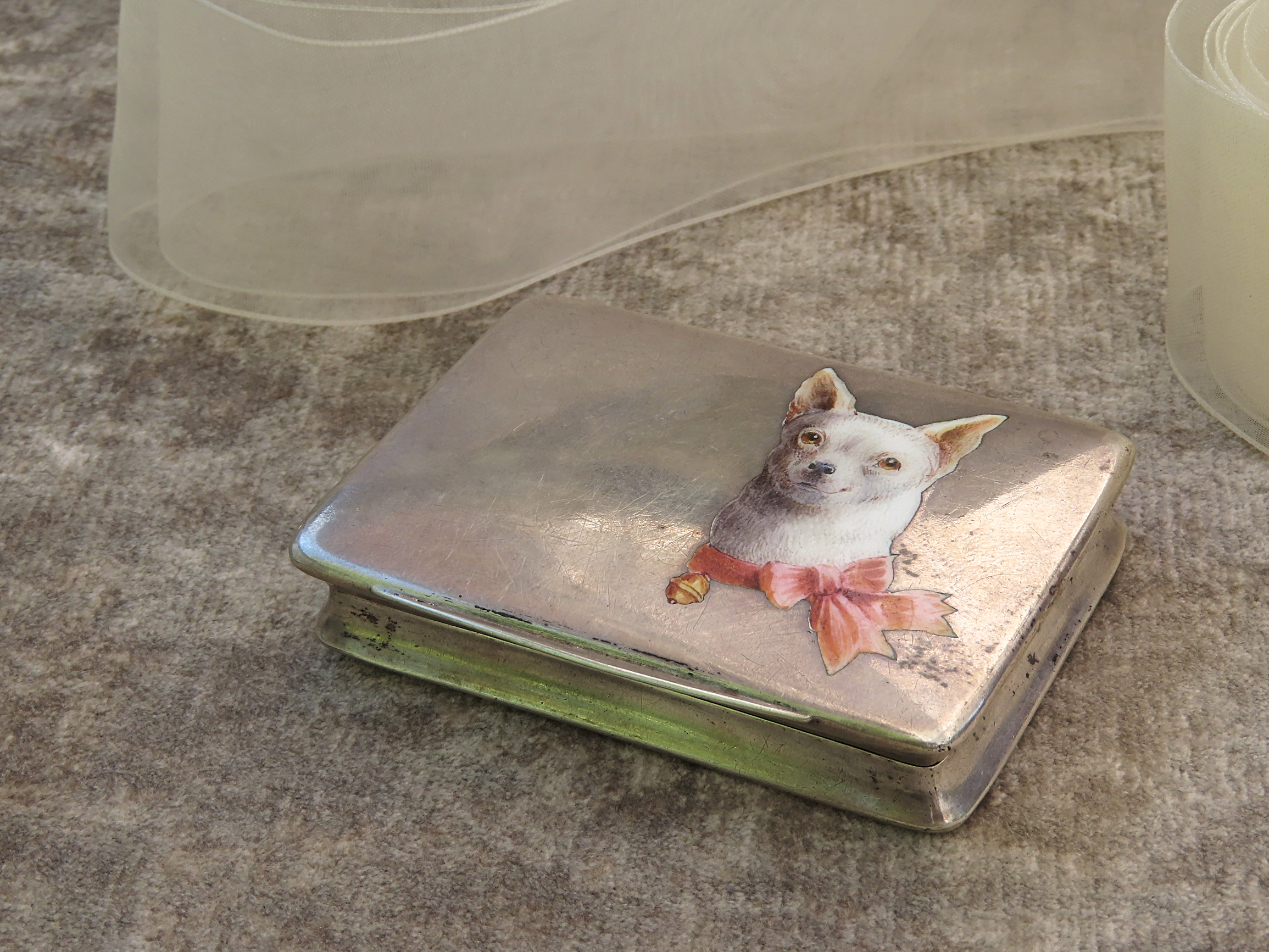 「ウチのかわいい子」のシガレットケース、そうとう愛用されたのか、銀の表面にはかすり傷あれど、しかしエナメル面には損傷はありません。*^^*