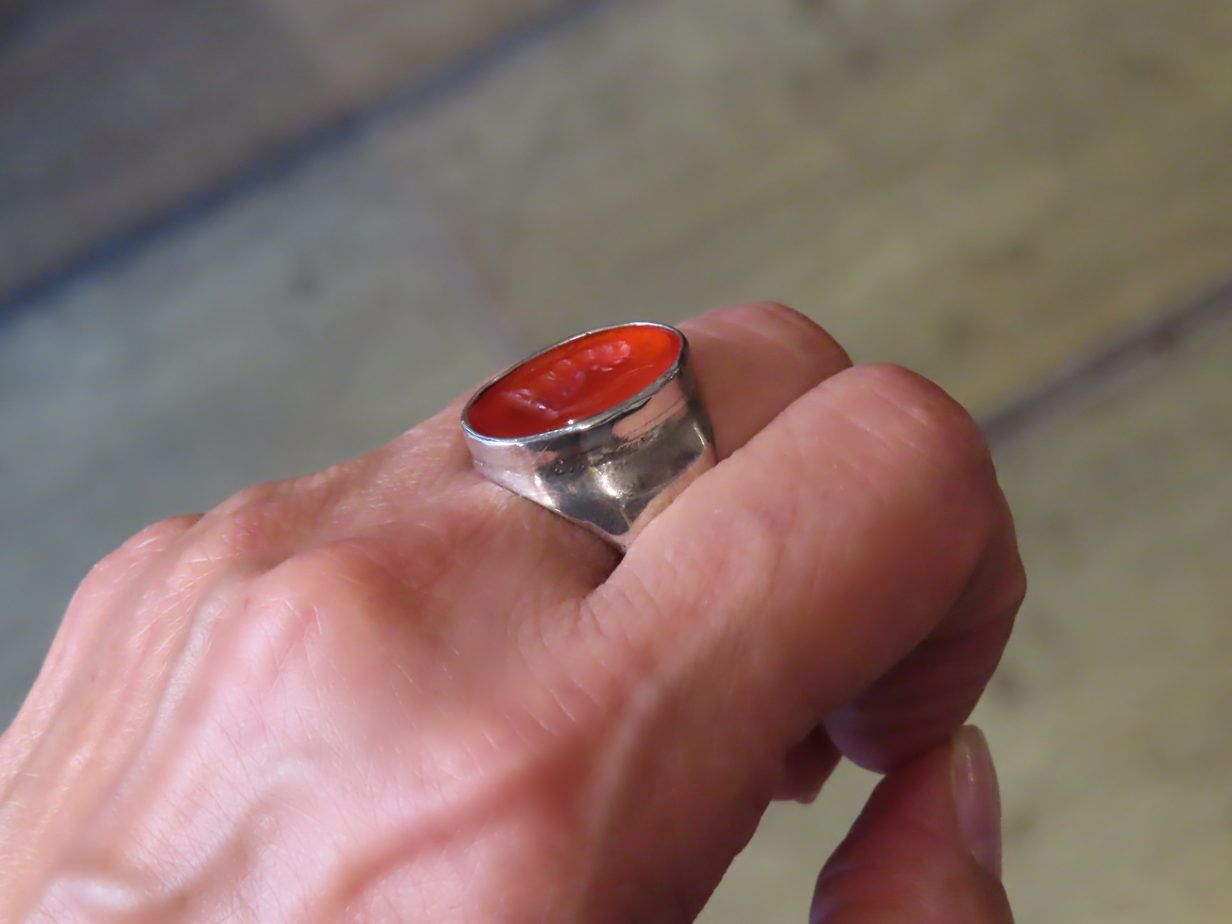 彫は端正で美しく、カーネリアンの色も明るく、身に着けてもなかなかに素敵です。