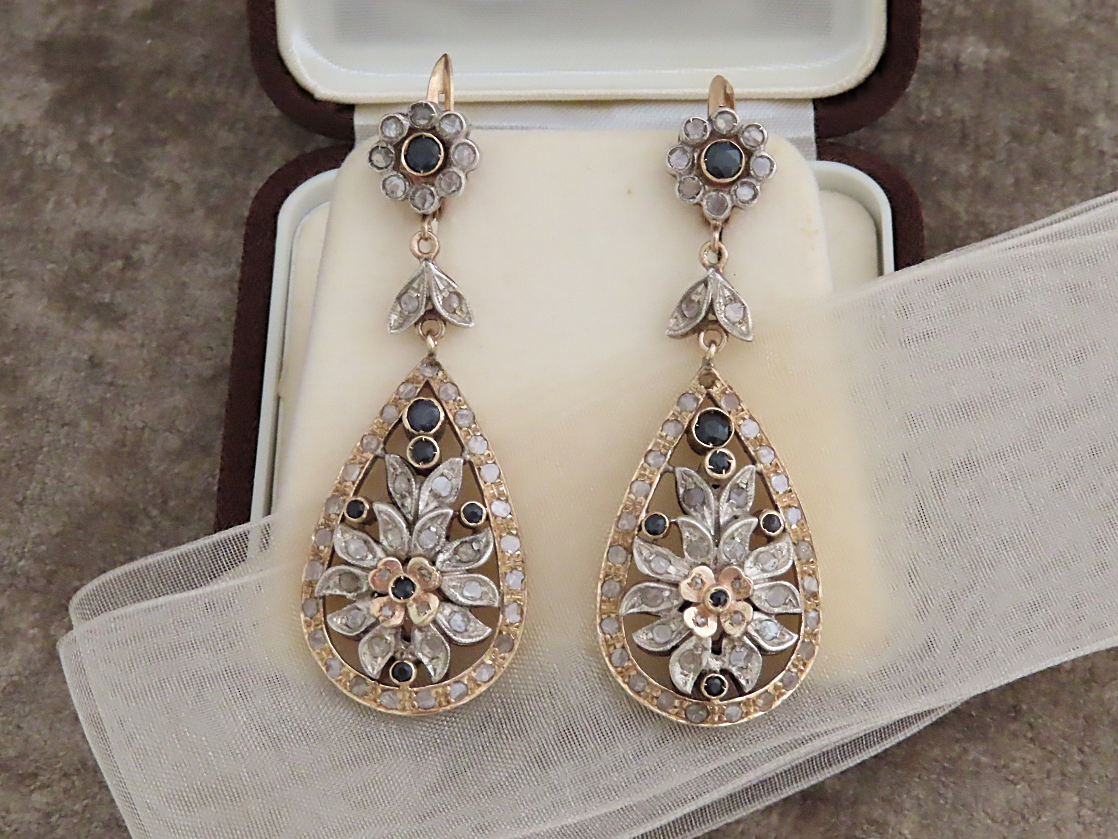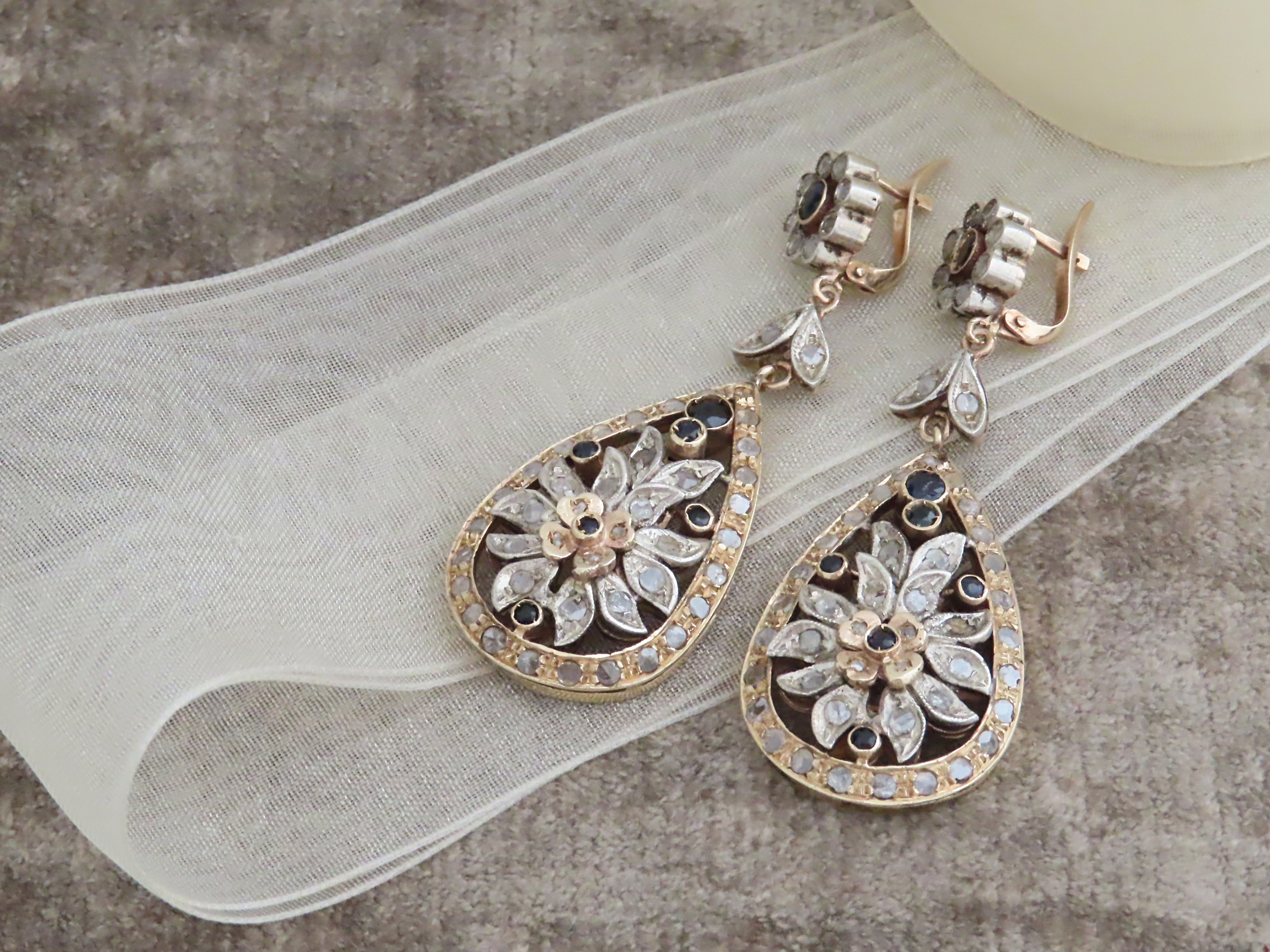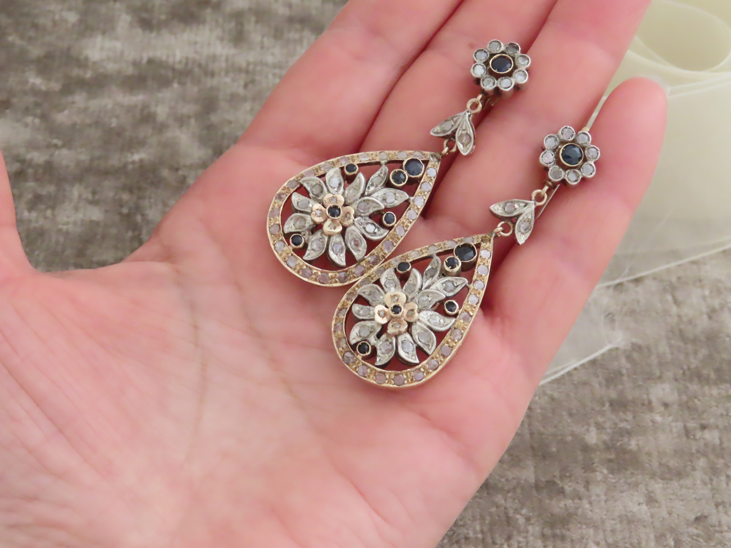 イタリア・1930-40年頃の、サファイア&ダイヤモンドの、ゴージャスなピアスです。