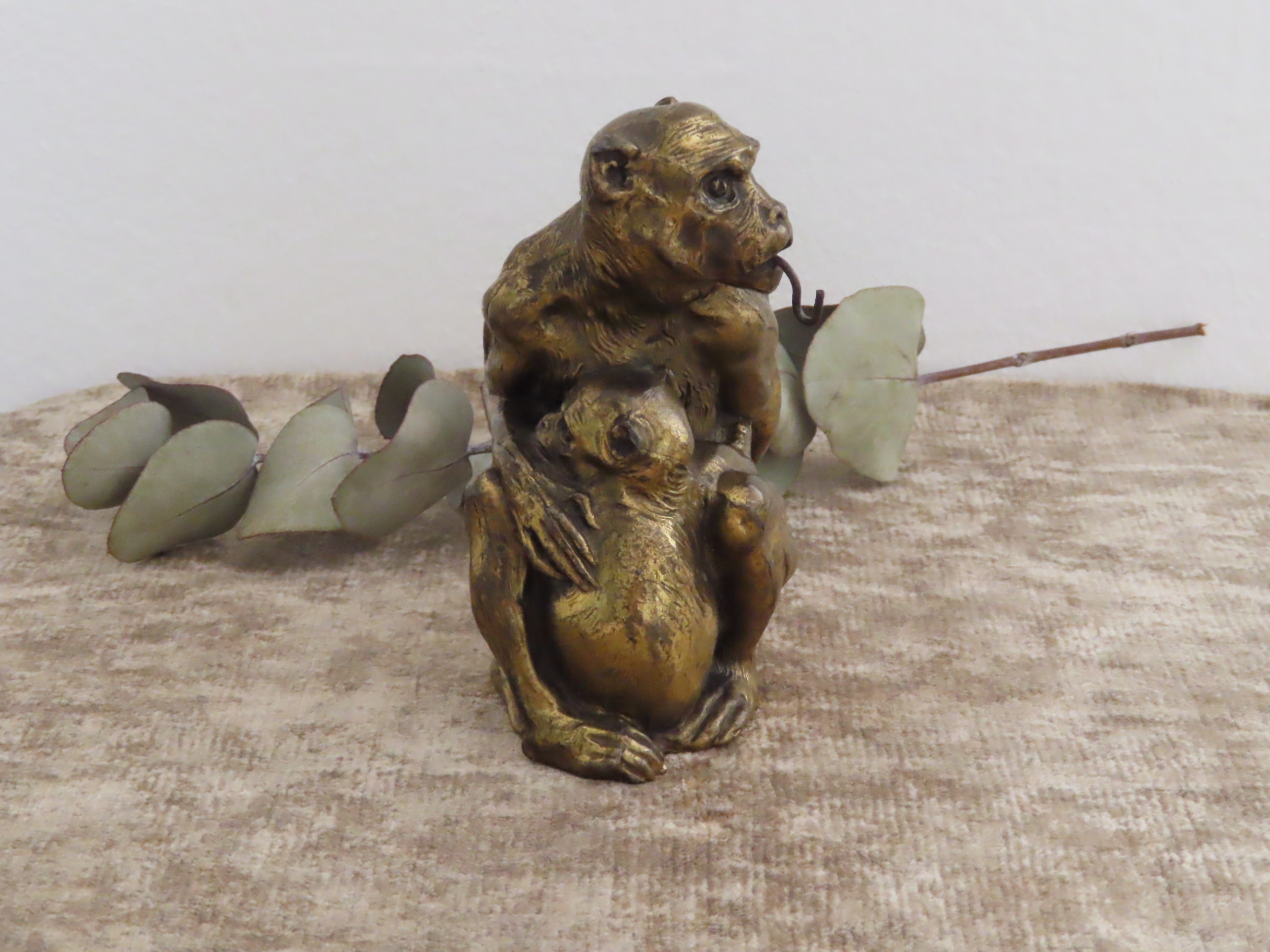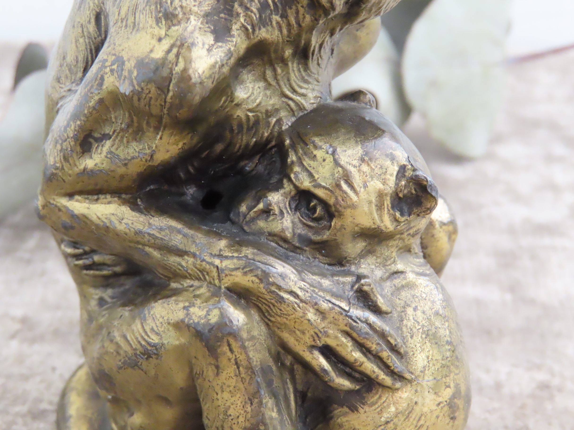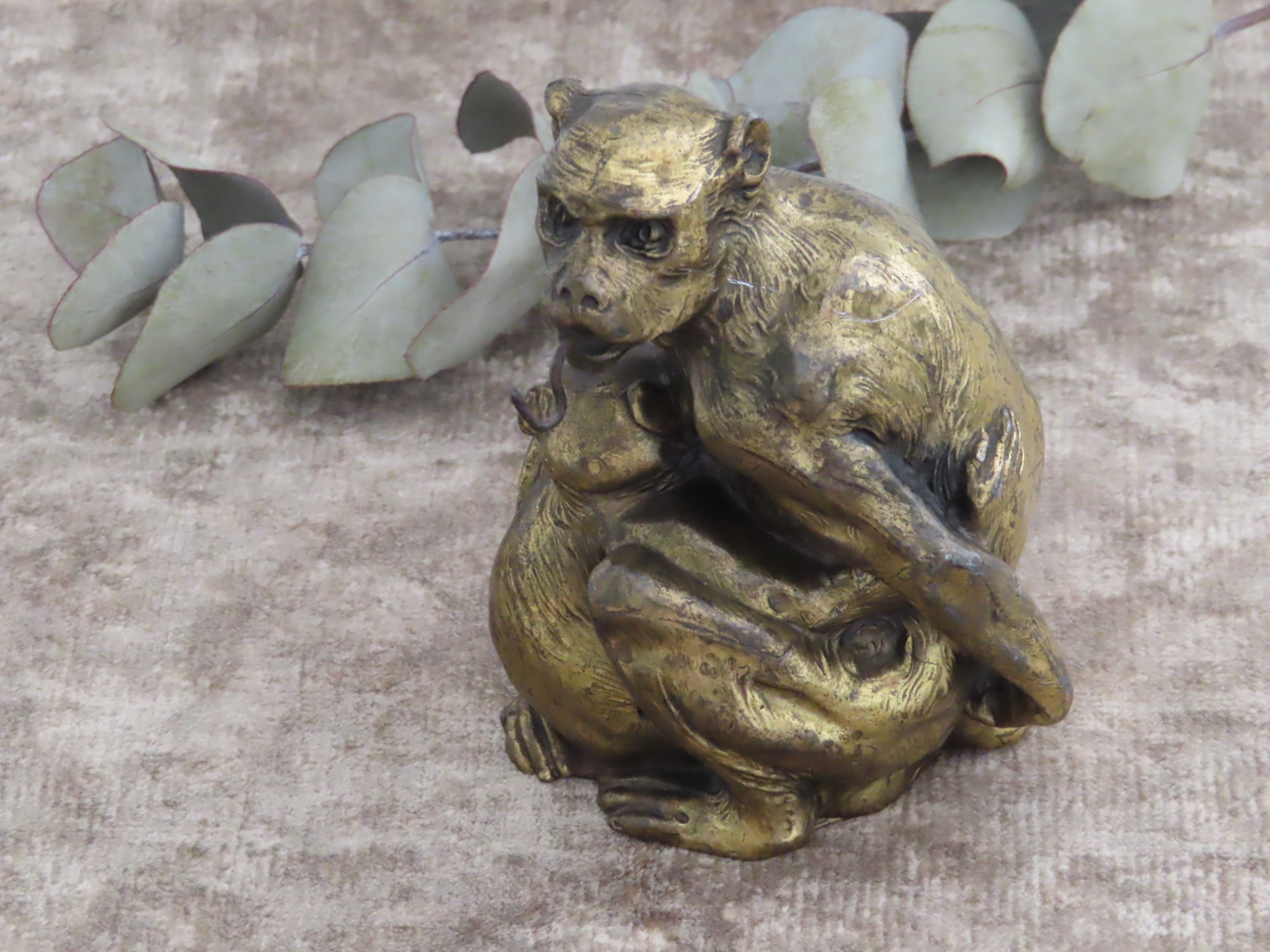 19世紀後半期の、イタリアかフランスで作られた、ブロンズ製の猿の親子。