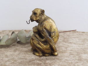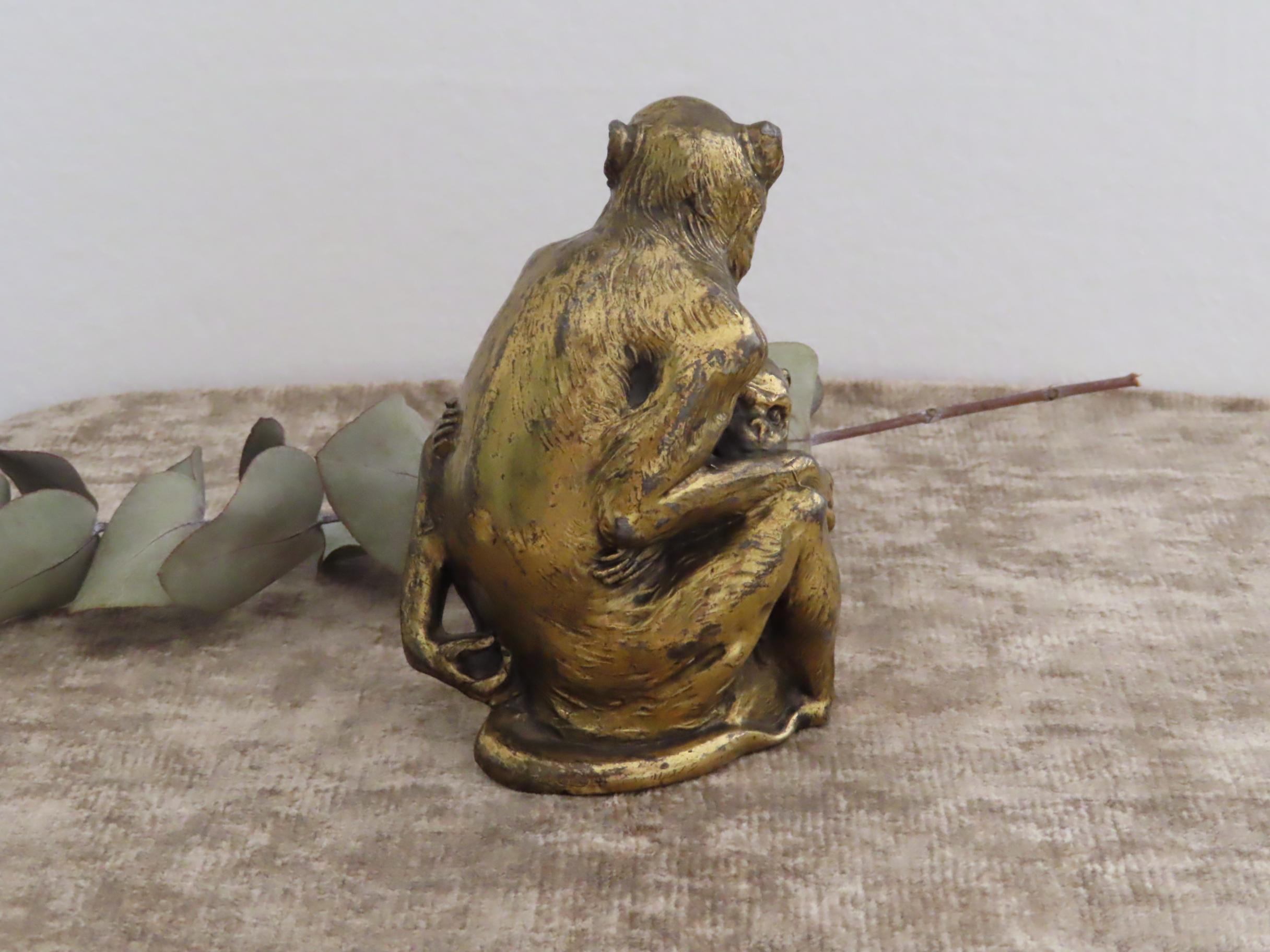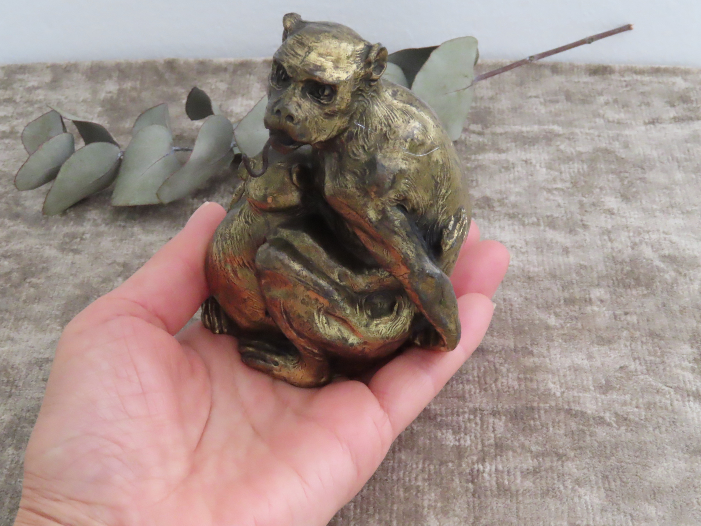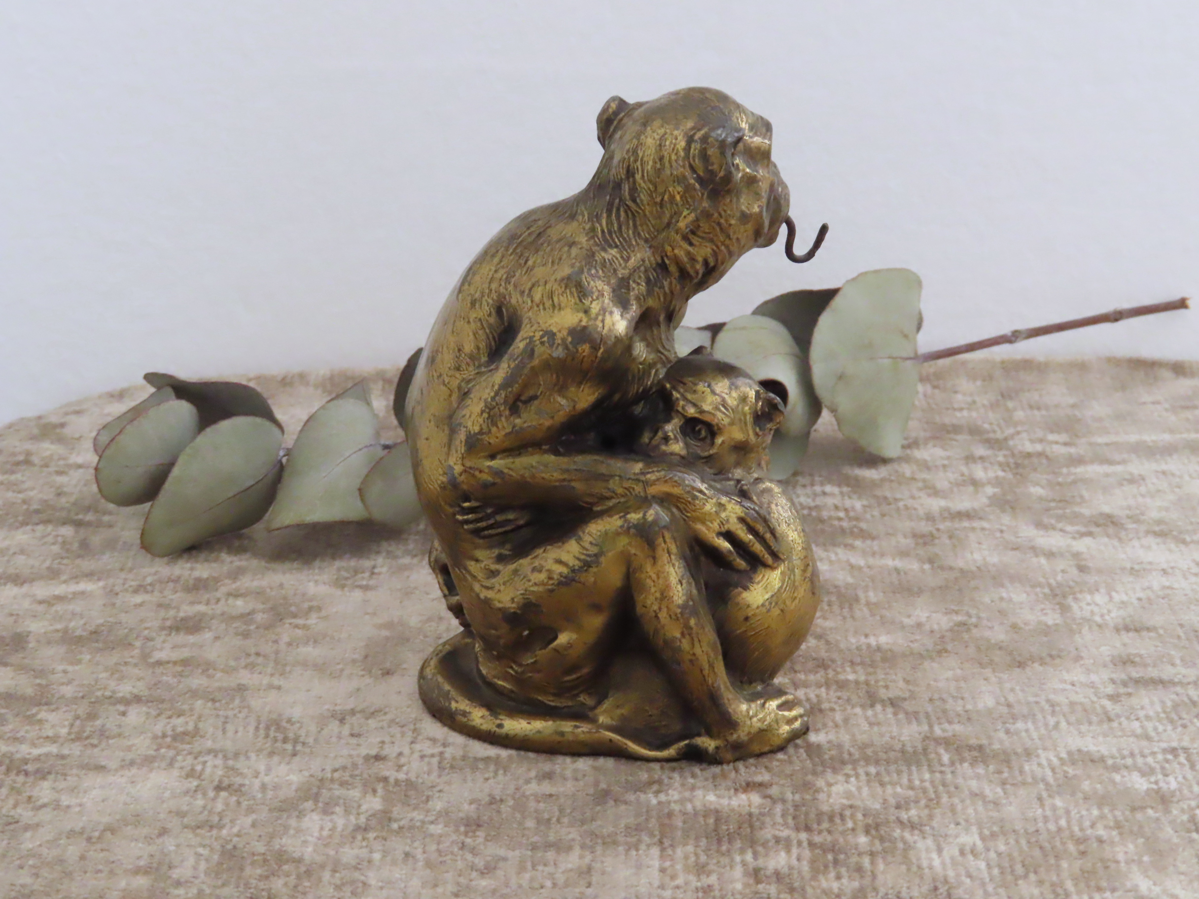 19世紀後半期の、イタリアかフランスで作られた、ブロンズ製の猿の親子。