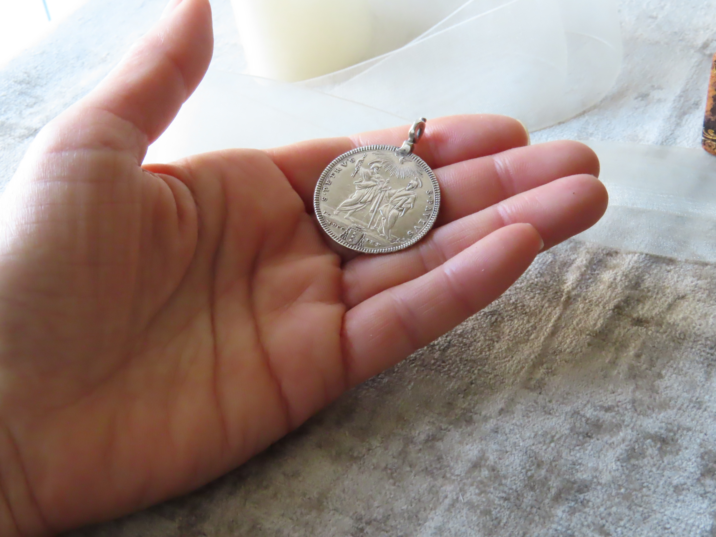 1770年頃発行のローマの銀貨を、ペンダントにしたものです。