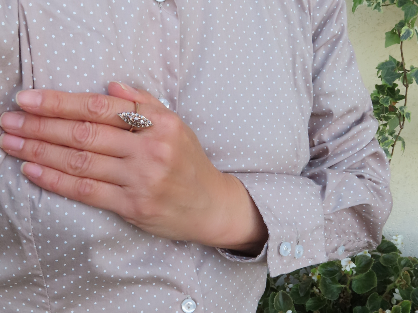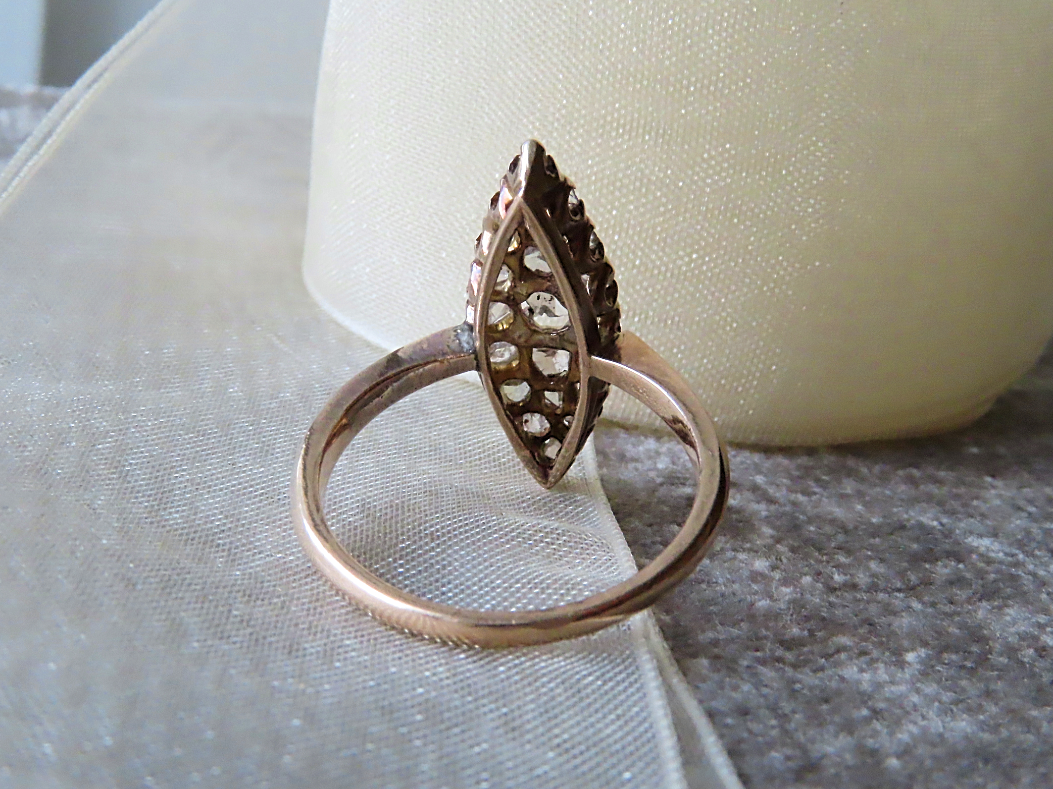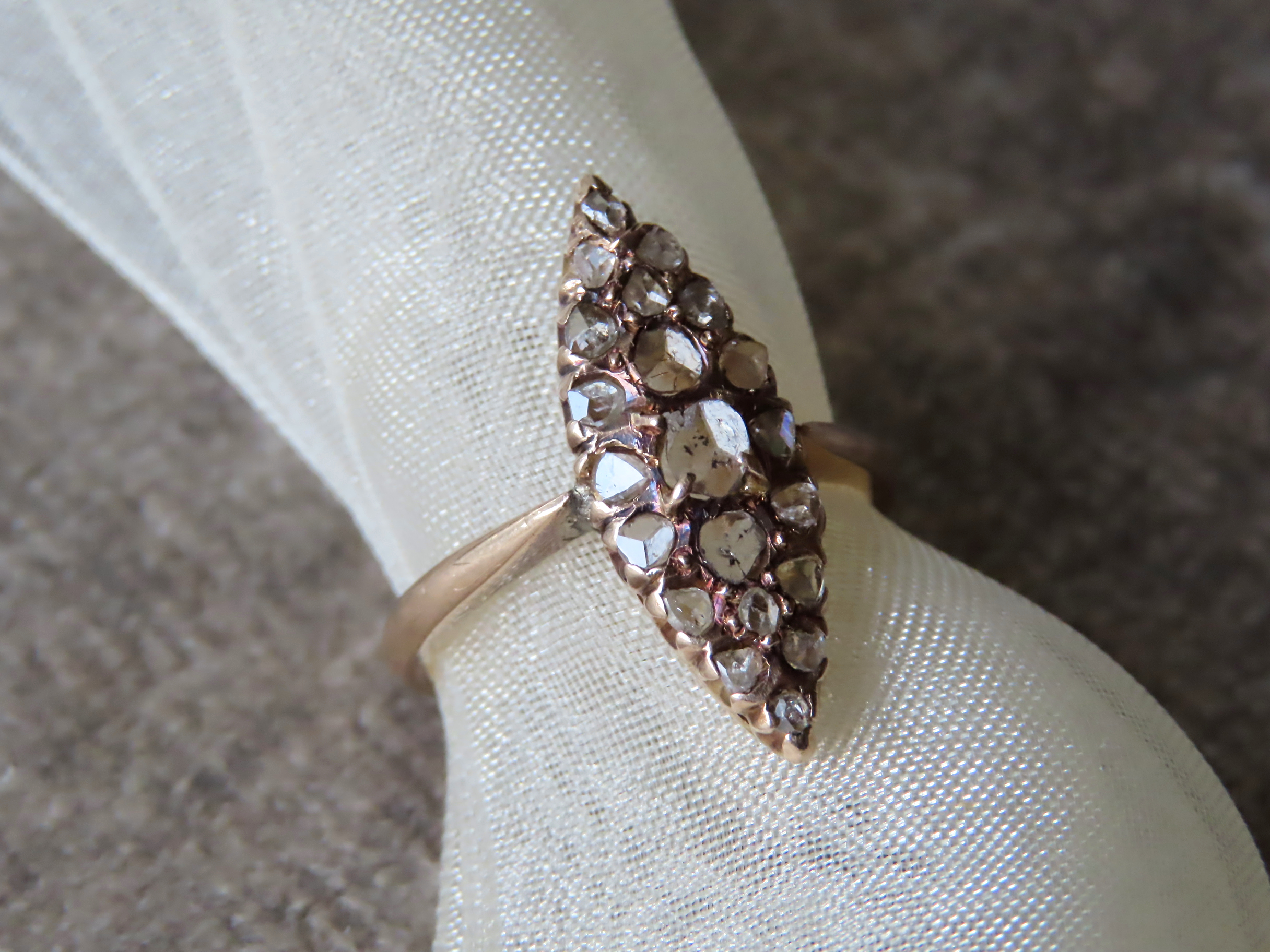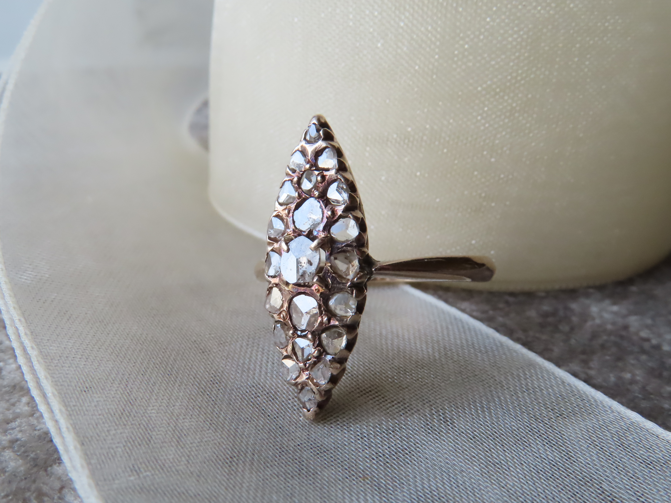 フランスもしくは英国の、1890-1910年頃の、スリーファセットローズカットダイヤモンドのマーキーズシェイプリングです。