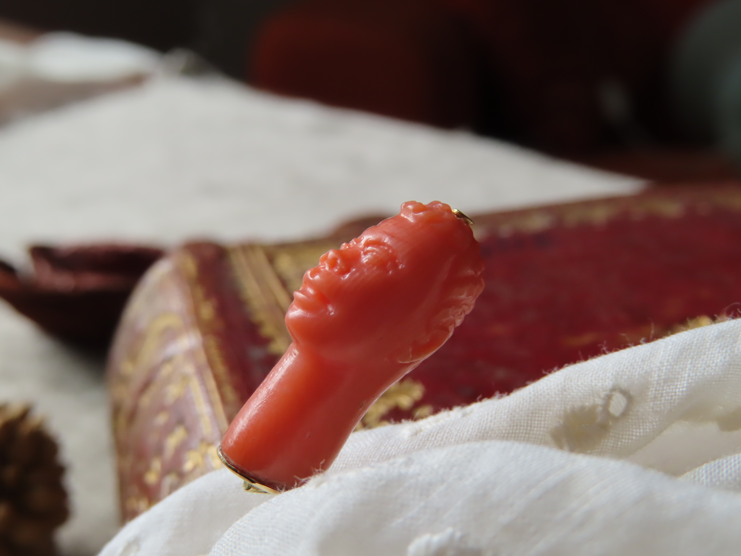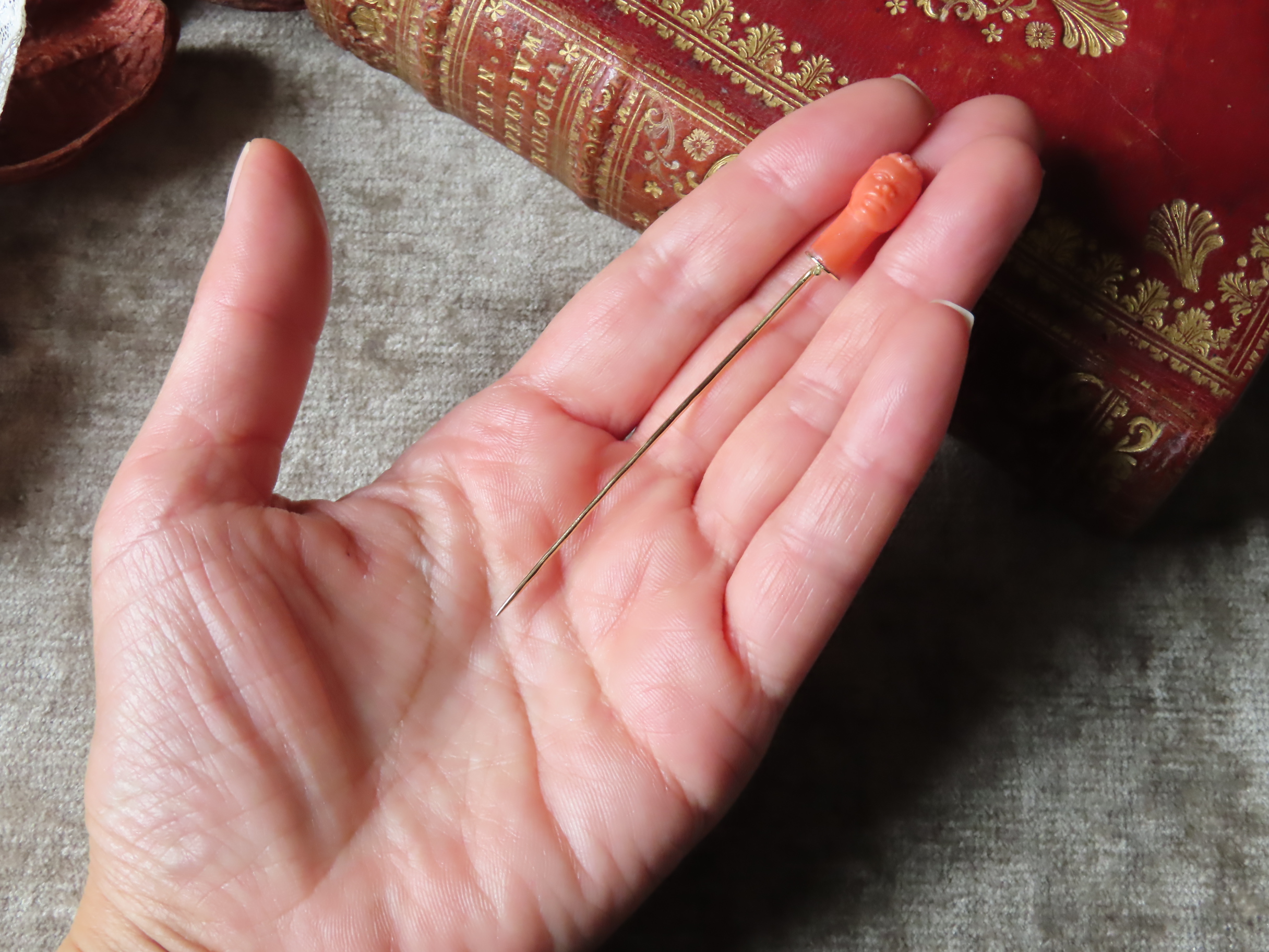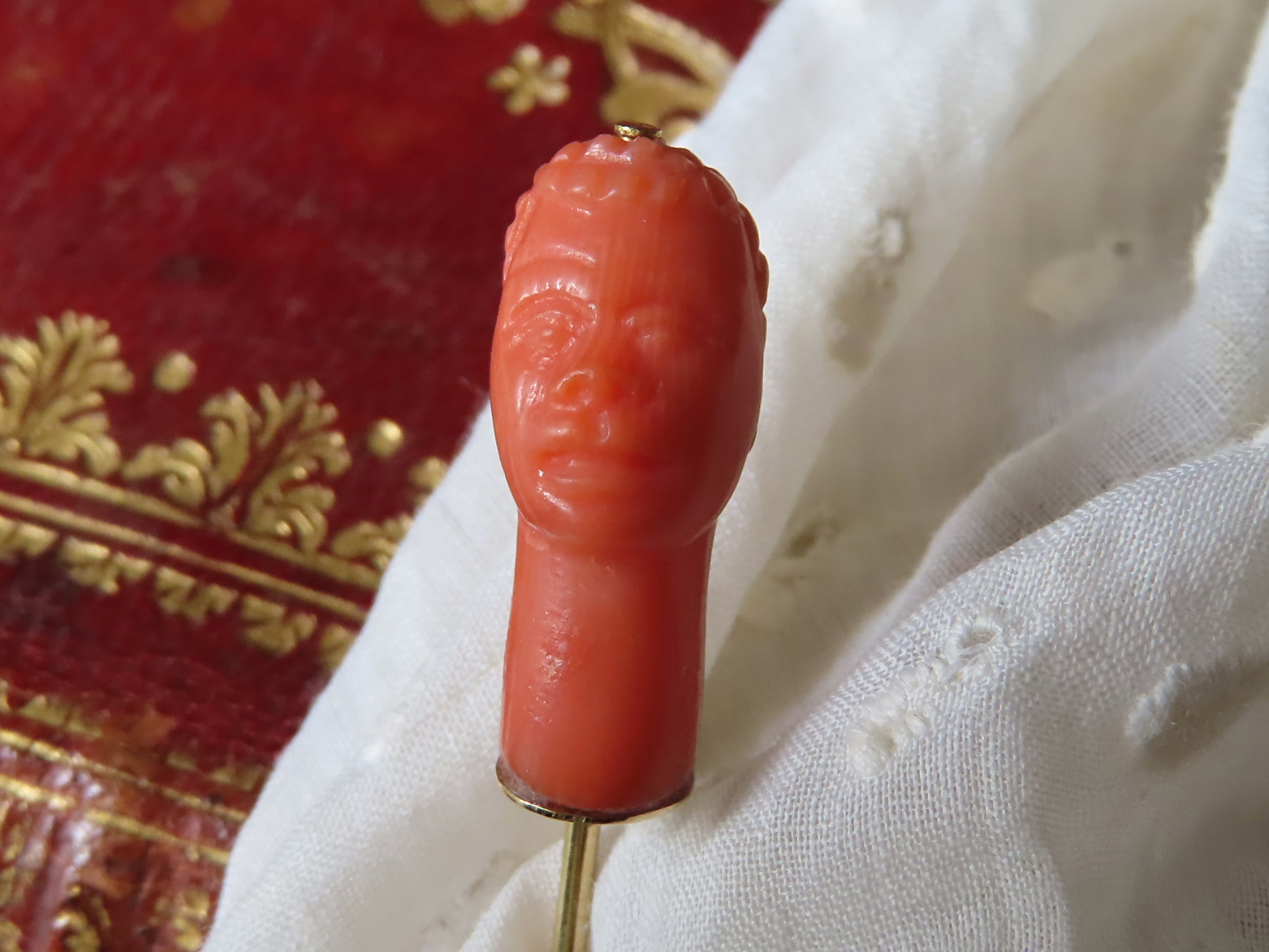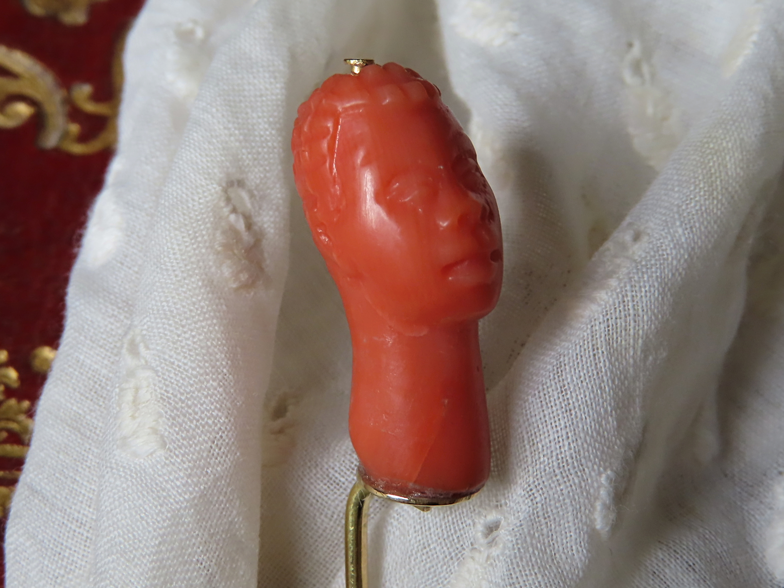 1850-60年頃のイタリア製、地中海珊瑚のカラバットピンです。
