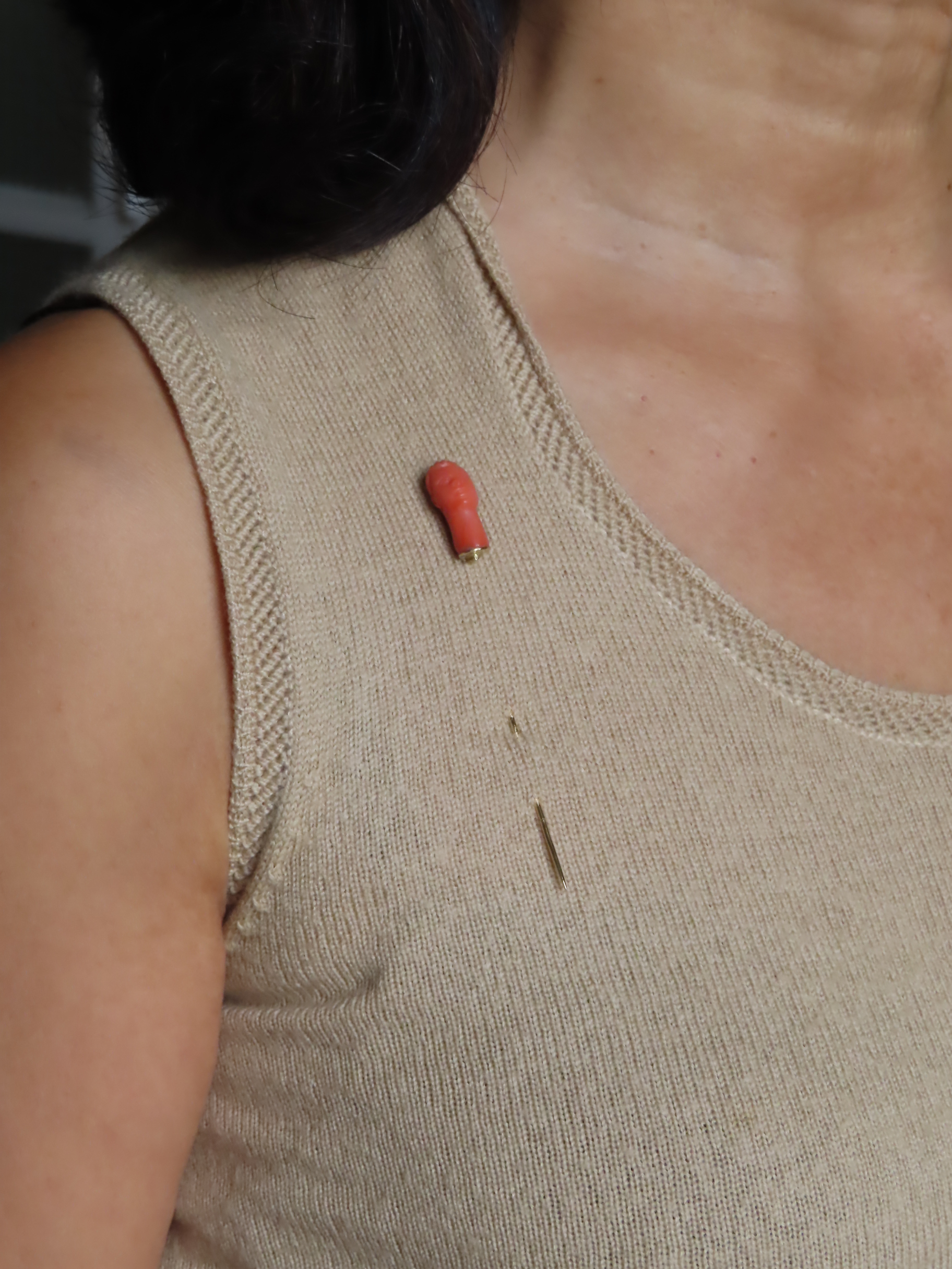 ピン部分は、珊瑚を貫通して留めてあります。