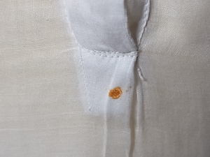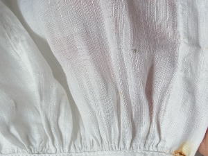背中のホック下にシミ、すそのシミが6個、胸にピンスポット1個があります。