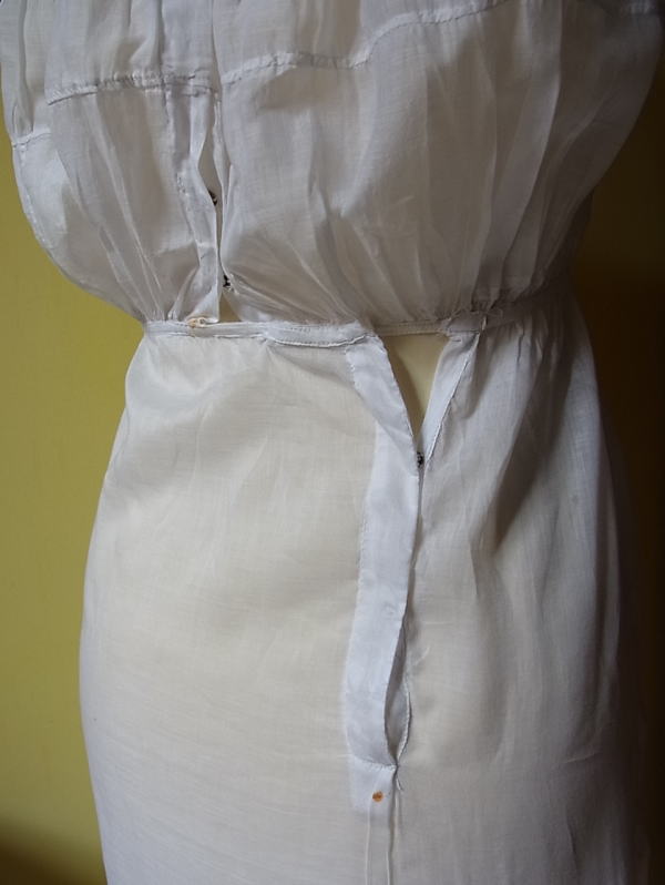 おそらく脱ぎ着がしやすいように、ウエストが広く開くよう、ずれたホック位置。
