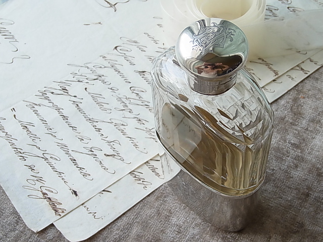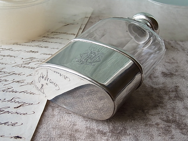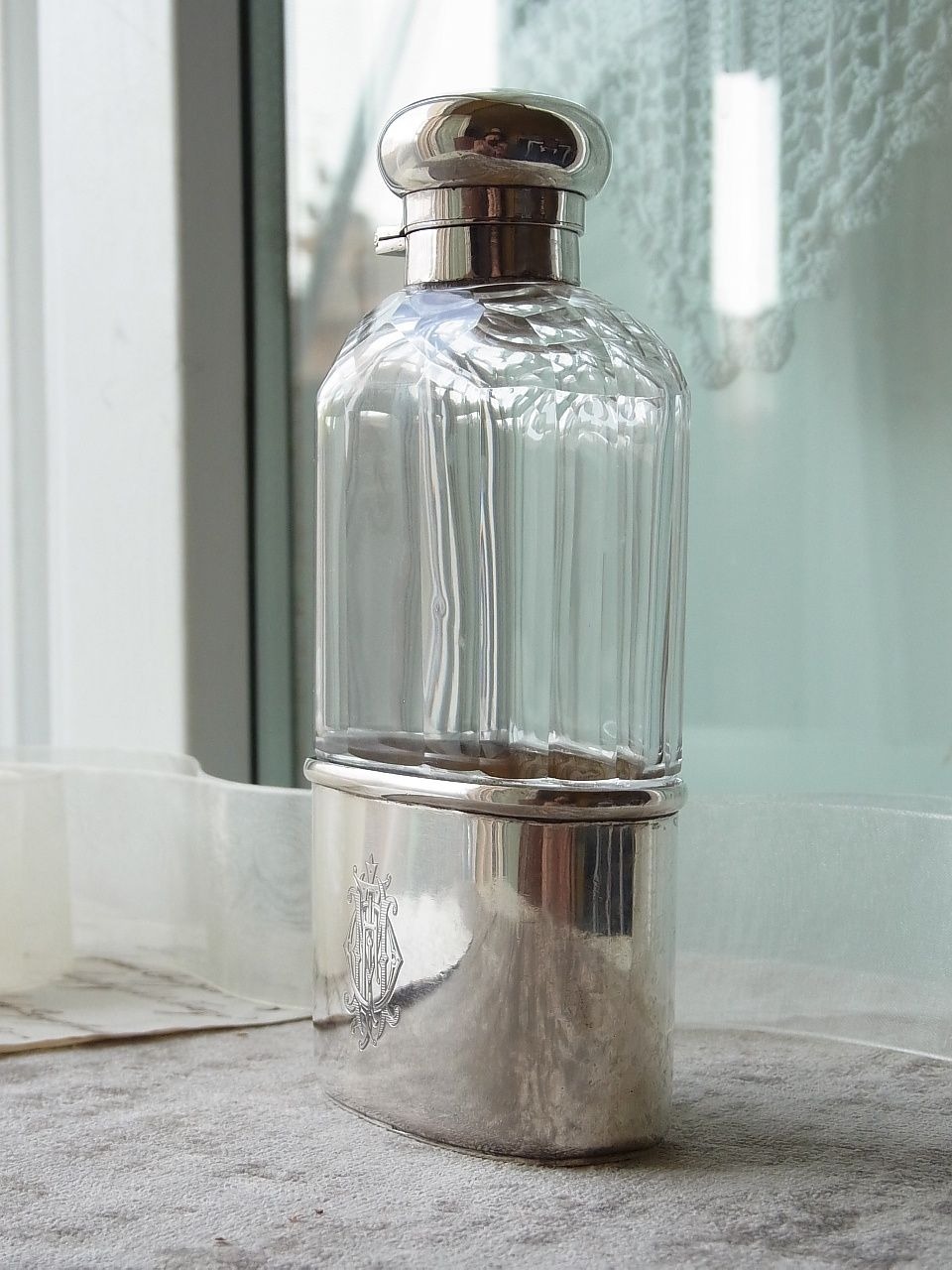 1898年製造、英国製の携帯用ウイスキーボトルです。