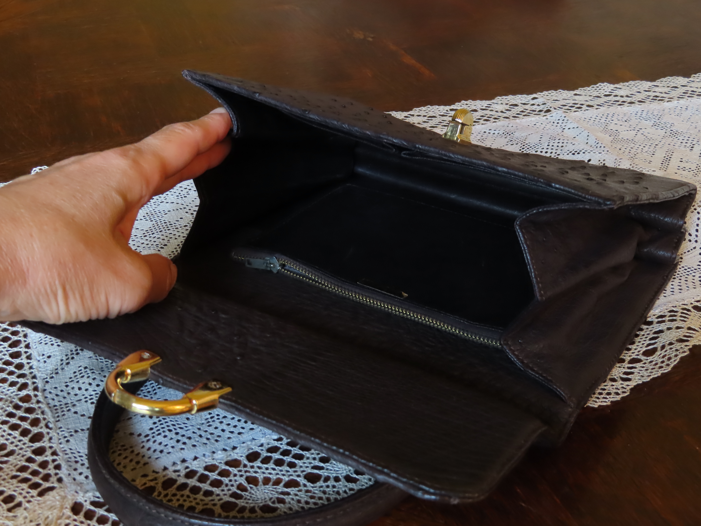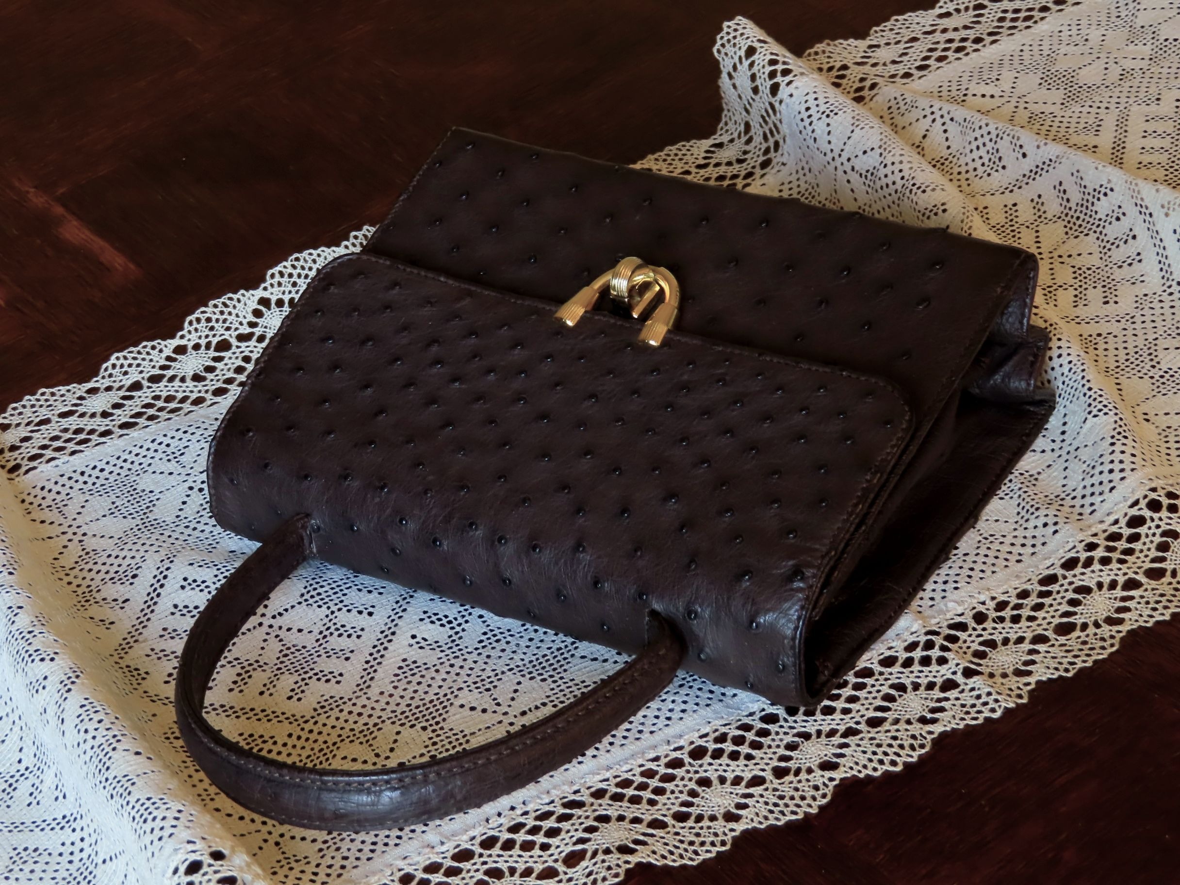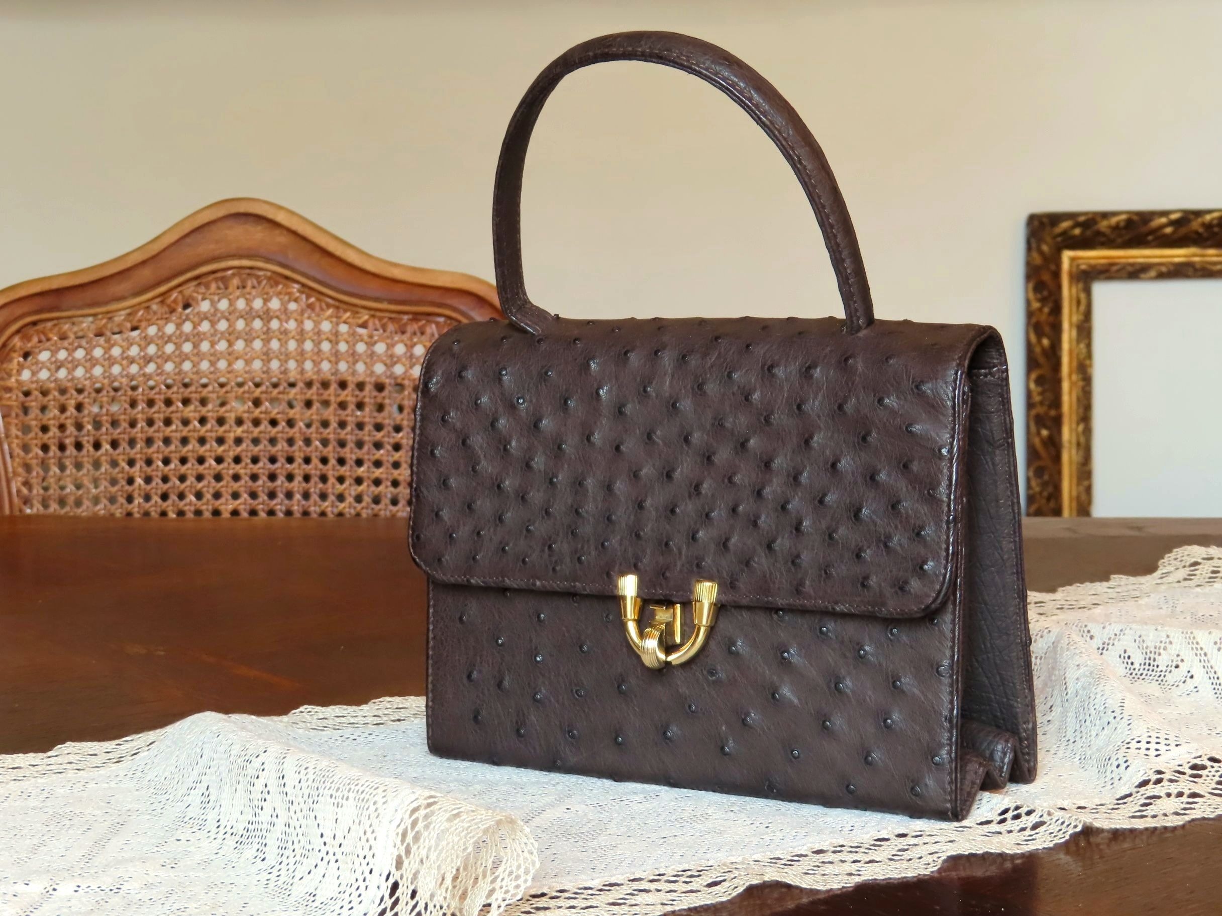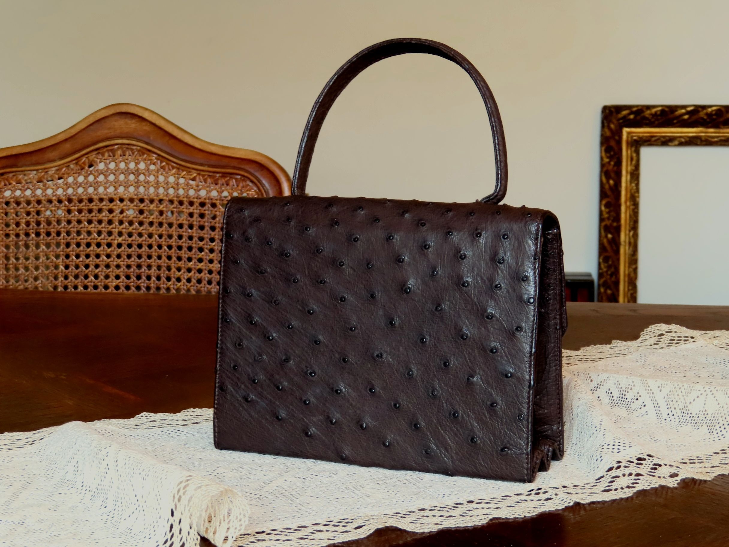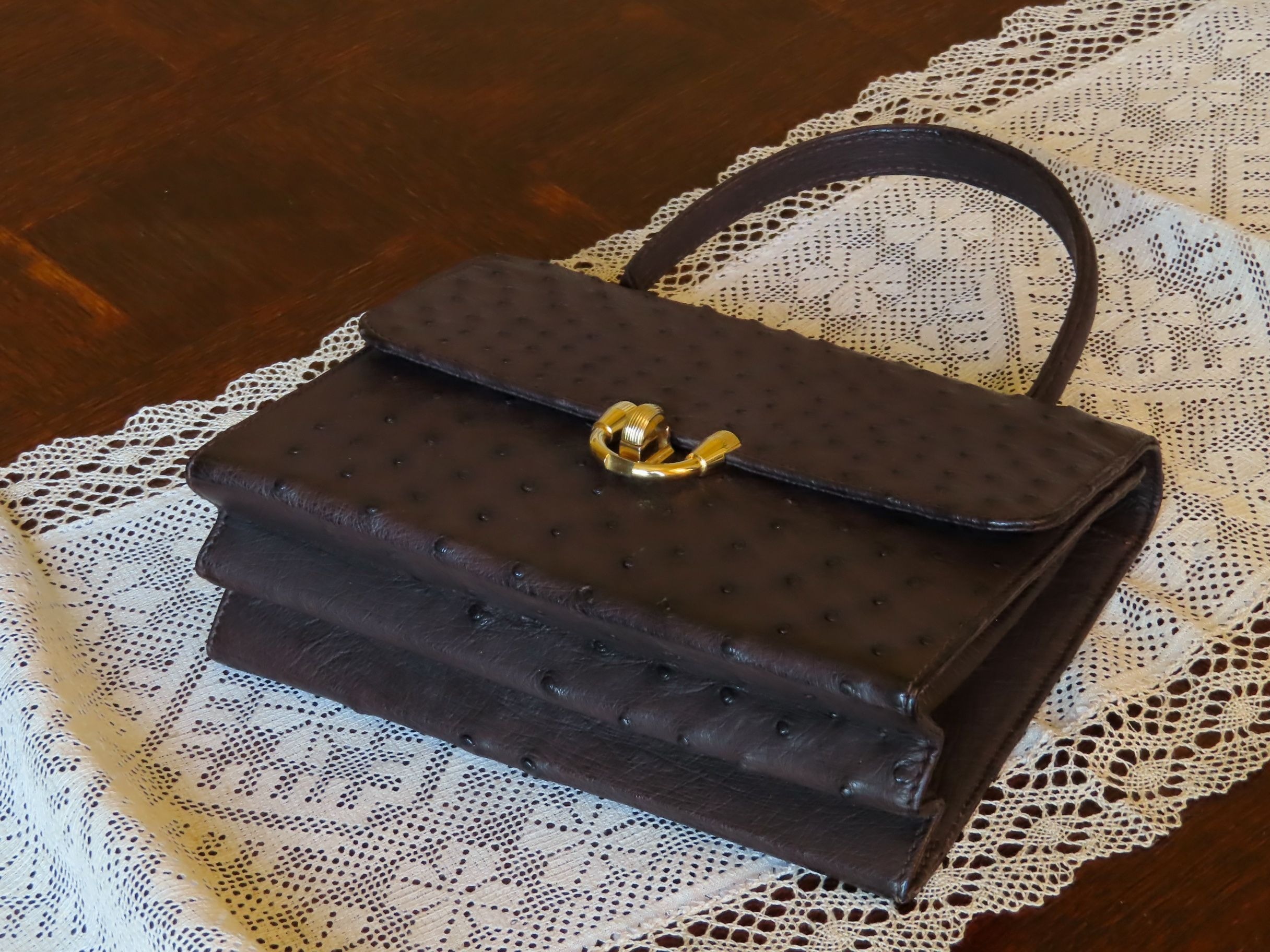 Ostrich leather handbag