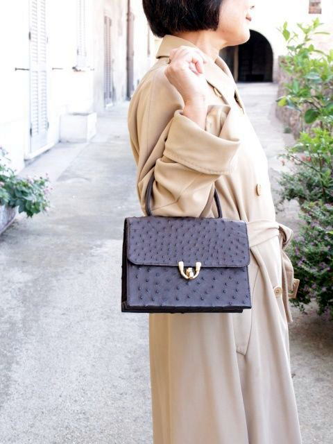 美しい半艶のモーロ色の、オーストリッチ(ダチョウ)本革のハンドバックです。