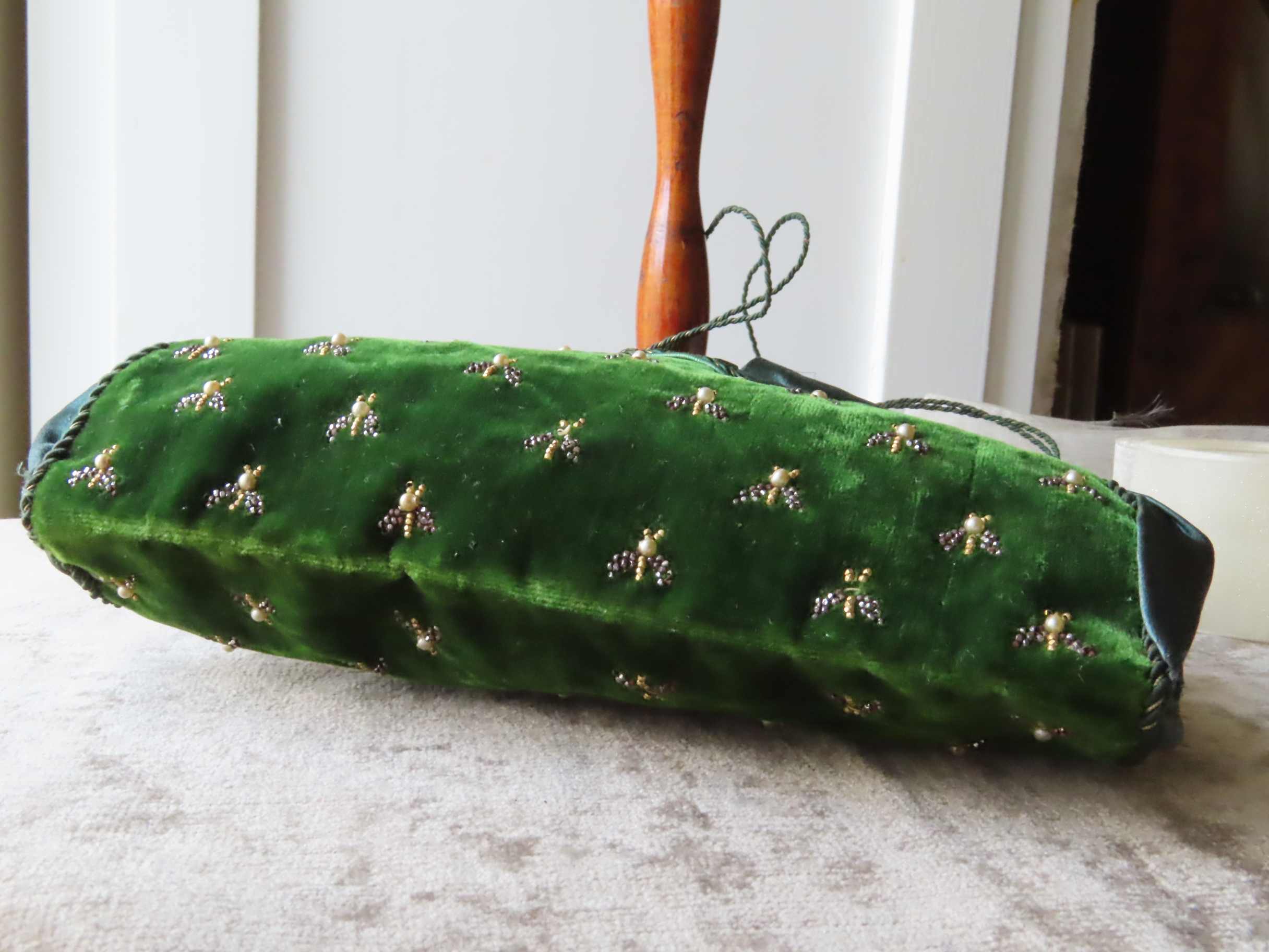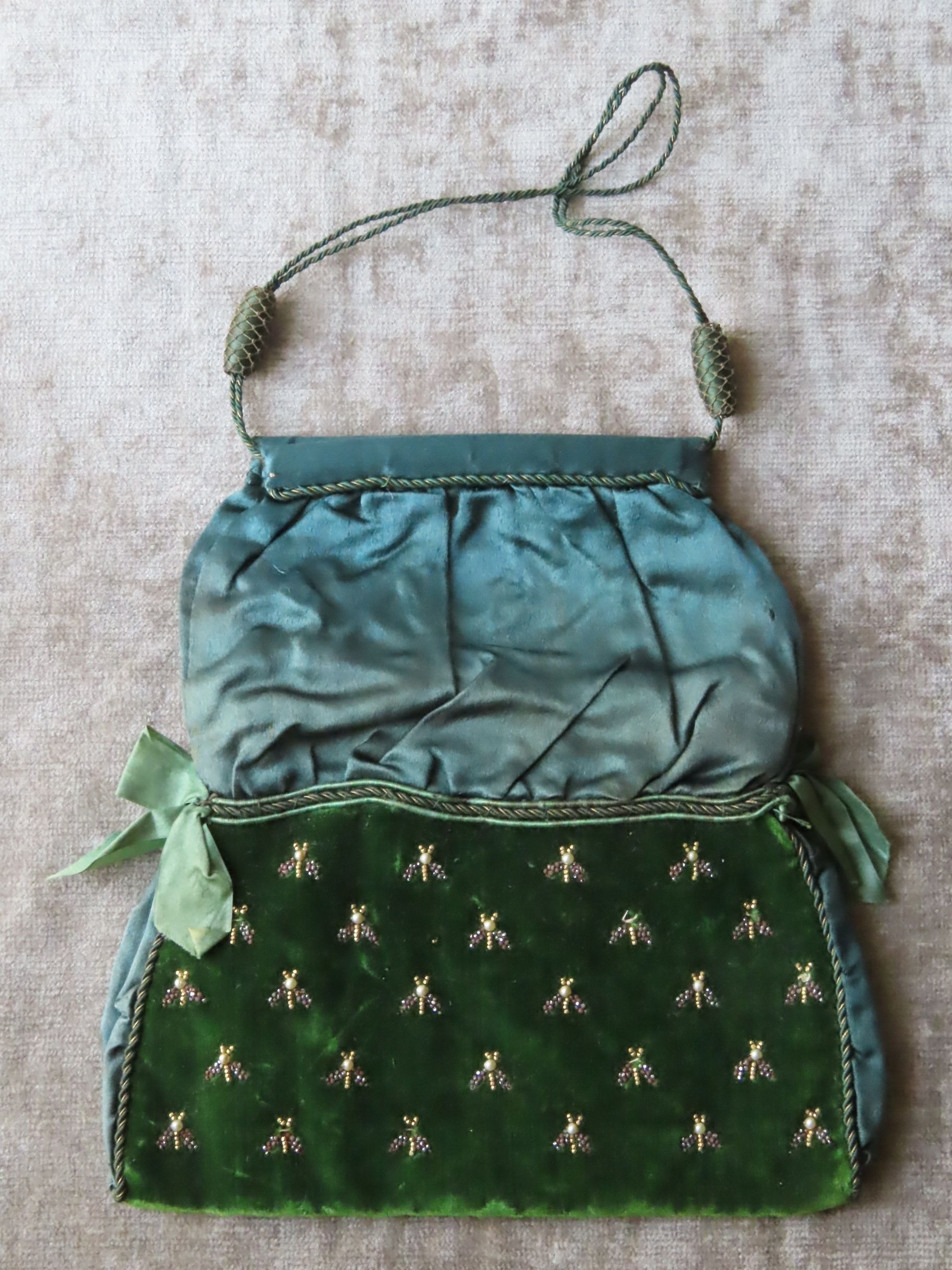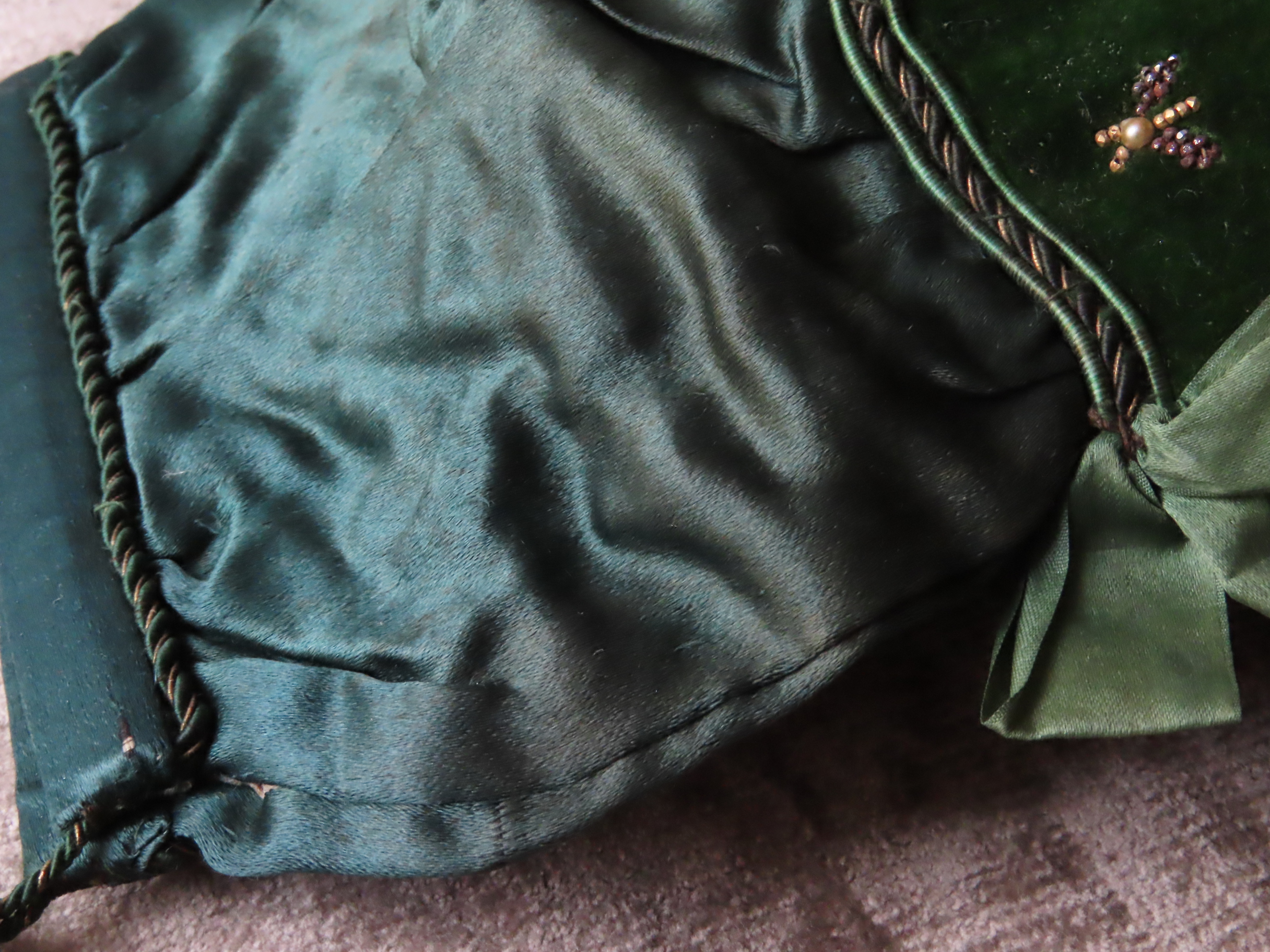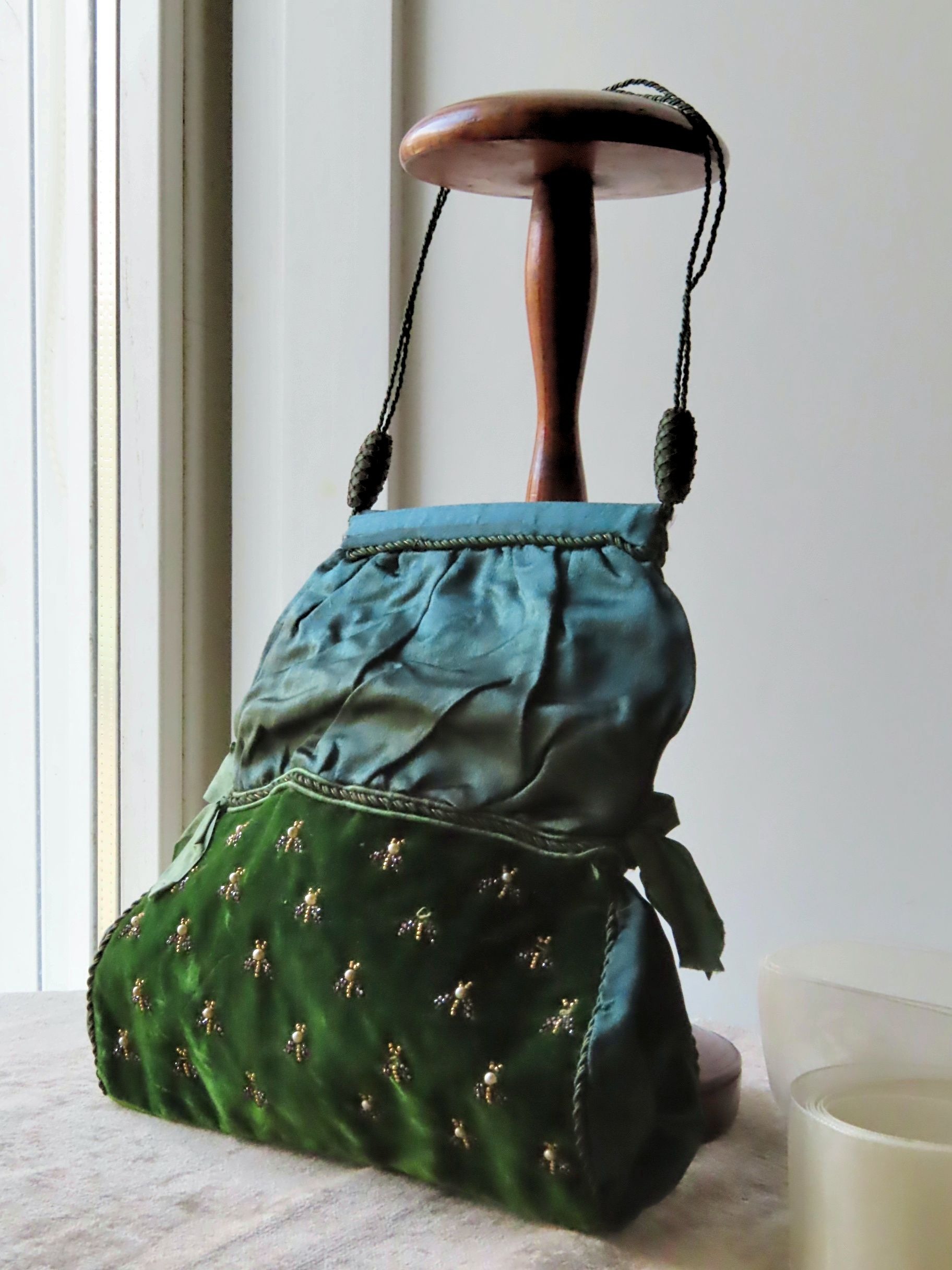 フランス・1800-1820年頃の、絹とベルベット地のポシェットです。