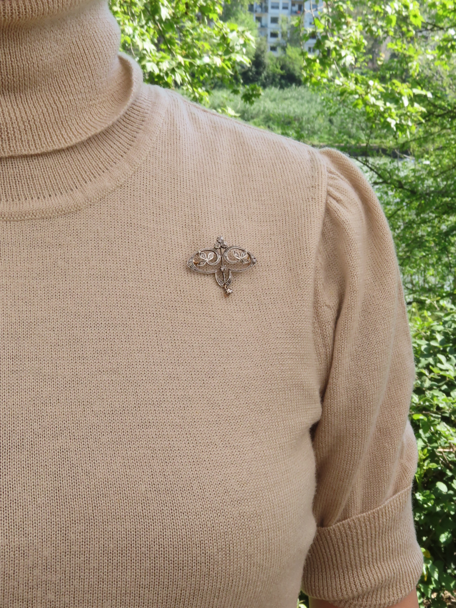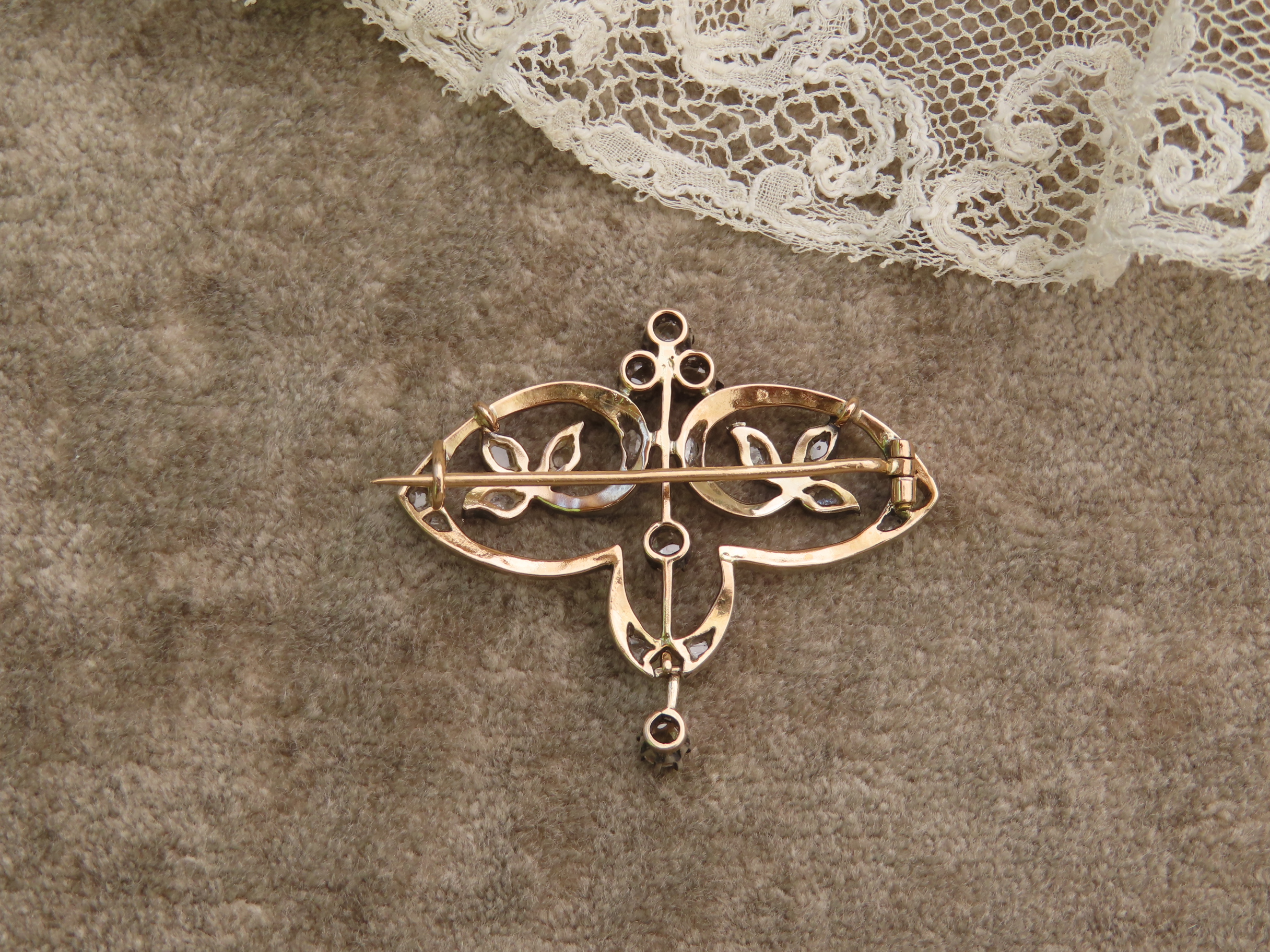 | 20世紀初頭イタリアの、蝶々のようなシルエットが特徴のペンダント兼ブローチ。 装いも白が基本になり、ジュエリーも白いものが好まれた、優雅なリバティ時代(=エドワーディアン)。 |