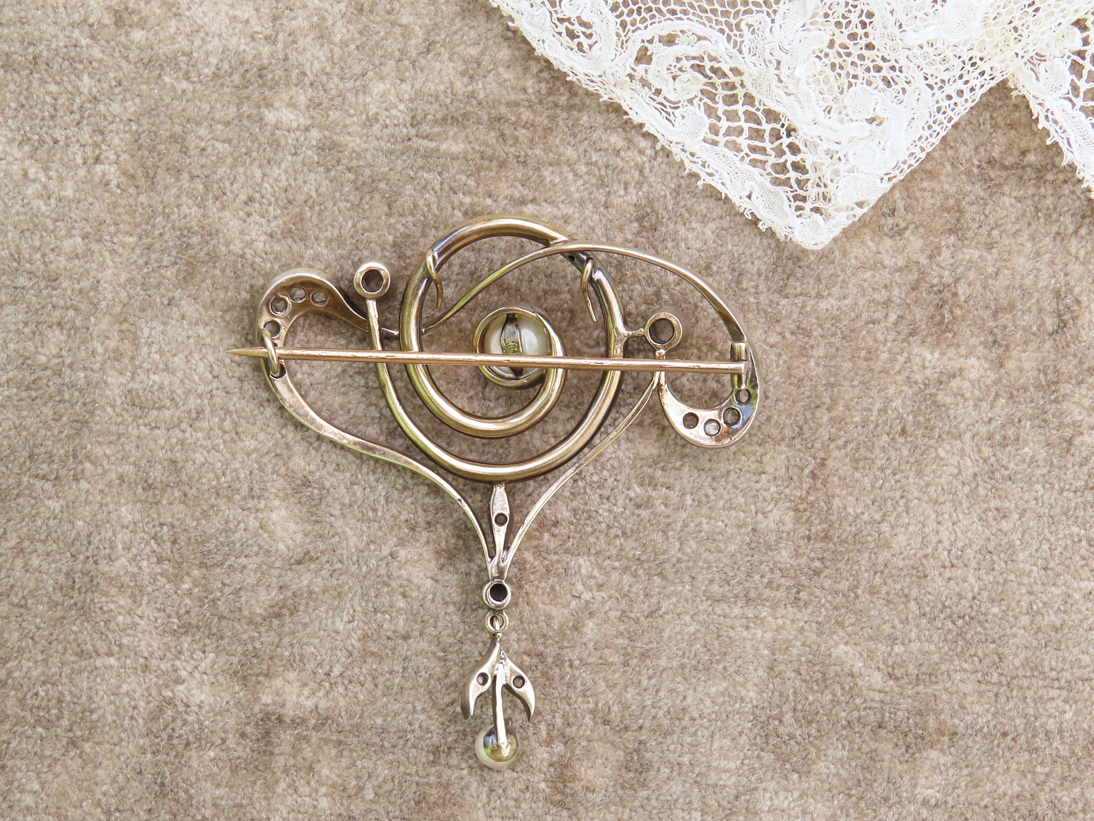 20世紀初頭イタリアの、流れるような曲線が優雅なペンダント兼ブローチ。