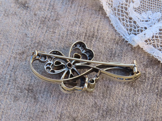 春の陽射しによく似合う、クローバーブローチ。 幸せも運んで来てくれそうです。 ※専門の石留め職人さんに、全ての石留めのチェックをお願いし、クリーニングをして、納品致します。 |