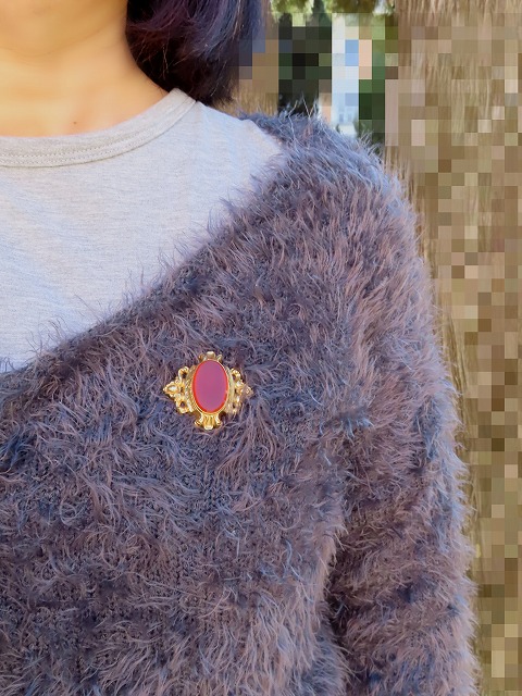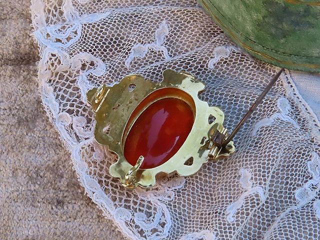 D-094 カーネリアンの18Kレポゼブローチ 優雅なフランス製 |