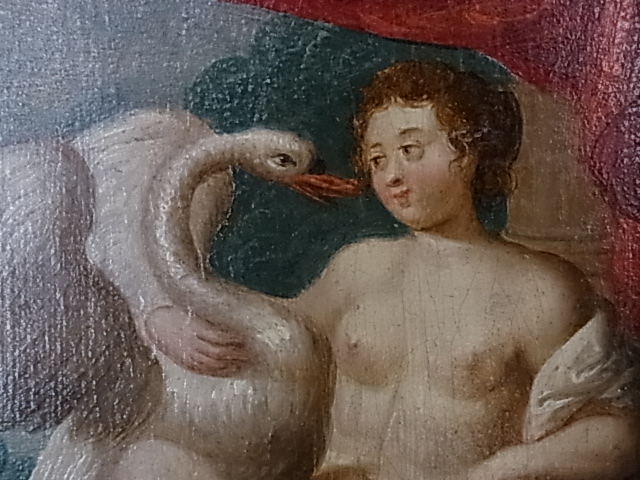 うっとりと白鳥を抱擁するレダの、なまめかしい裸体。
