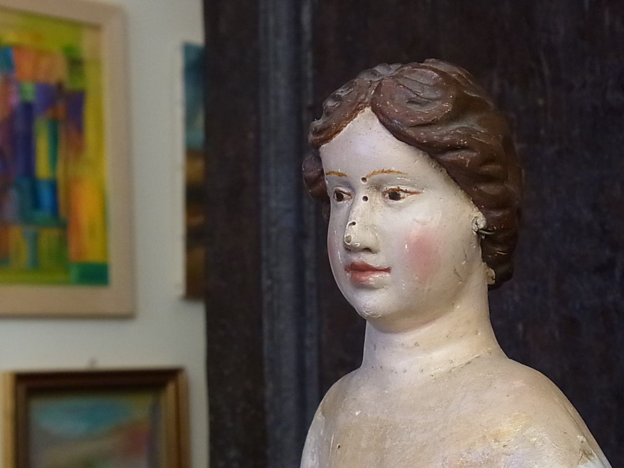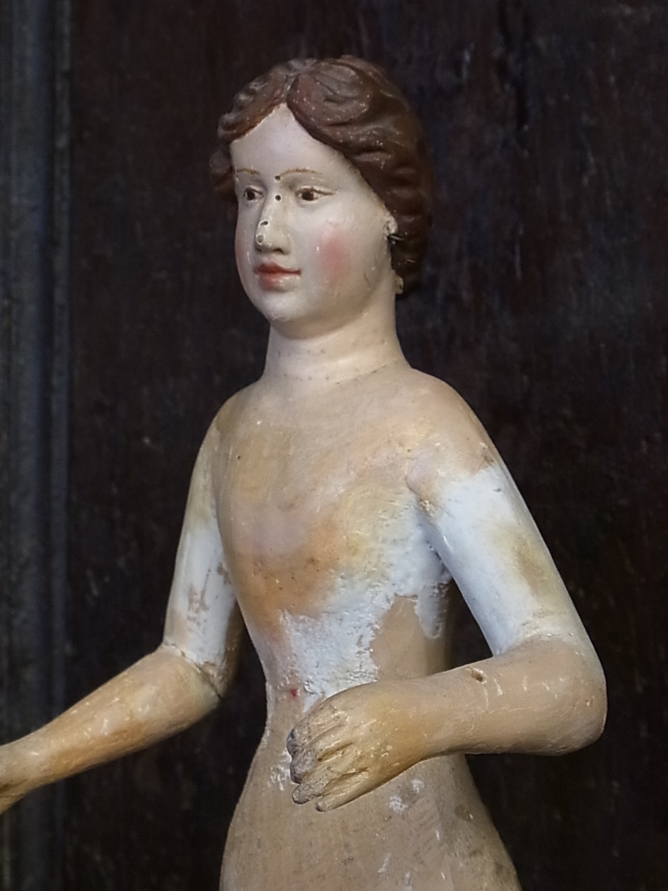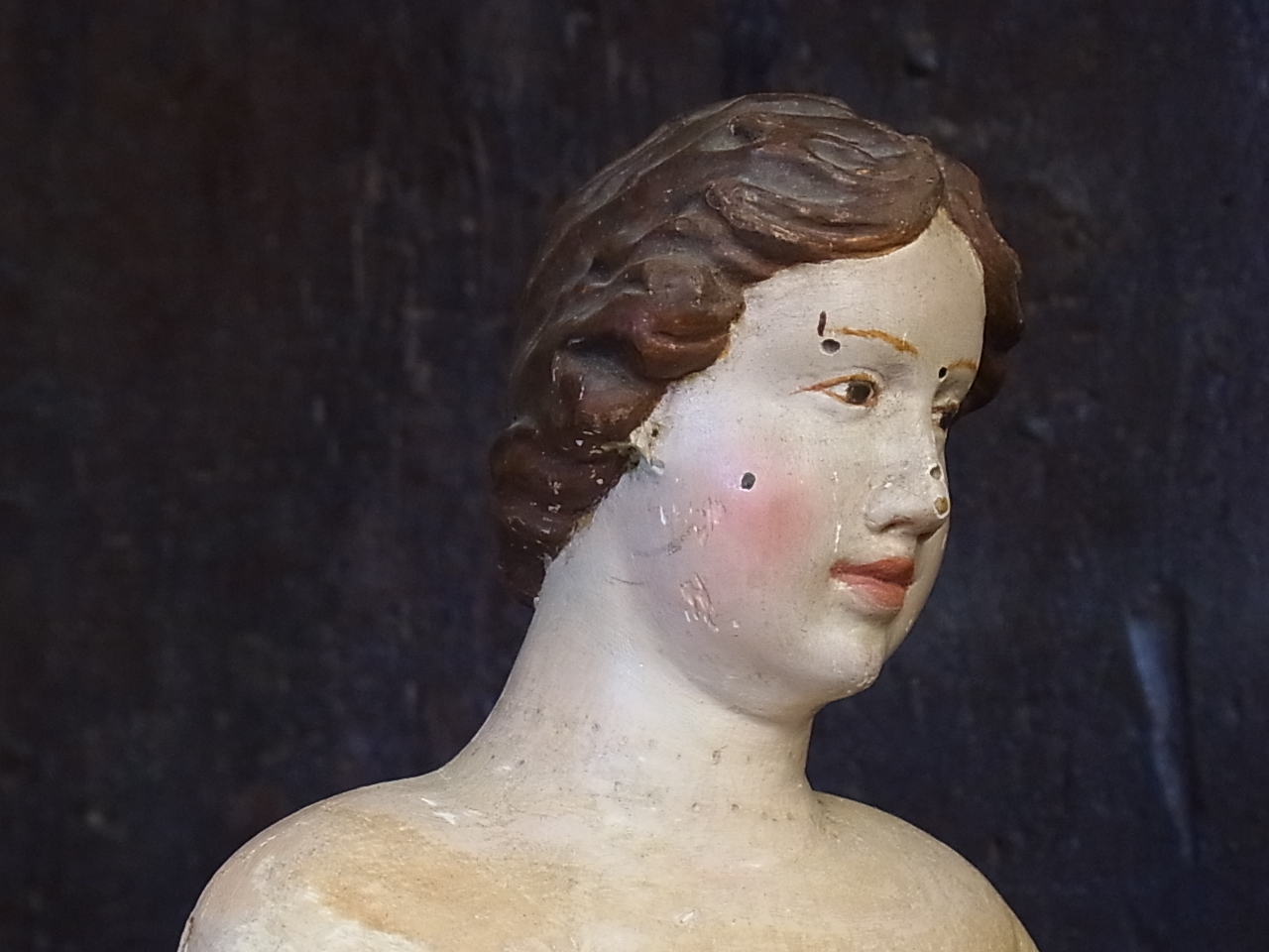 | お顔に残念ながら虫穴がありますが、こちらは専門の修復家によって、埋めることも出来ます。 お問い合わせください。 ※カーソルを画像に置きますと、拡大写真がご覧になれます。 |