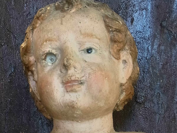 | 瞳は、オリジナルは木製にペイントでした。 しかし、1700年代にガラスのカバーをかぶせたものが流行り、付け替えられ、片目はその後失われています。 修復により、失われた目を木製のペイントで再生することが可能です。 |