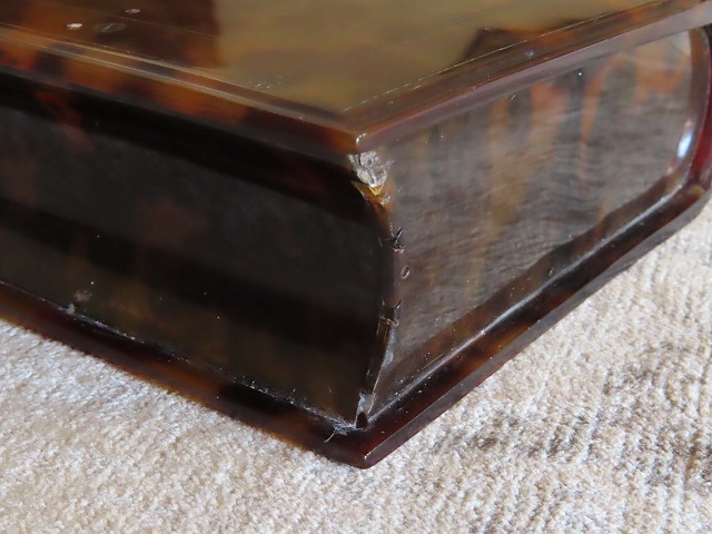 やや角にダメージがあります。 しかし、鼈甲は貴金属のように修繕が出来る素材です。 簪なども折れていても、つなぎ直すことが出来ます。 日本で、鼈甲の修理をしてくれるところはいくつかあります。 |