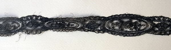 | 技法としてはボビンレースです。 このレースは手編みの為、糸をつないだ小さな玉結びが、頻繁に見られます。 ※カーソルを画像に置きますと、違う角度の写真がご覧になれます。 |