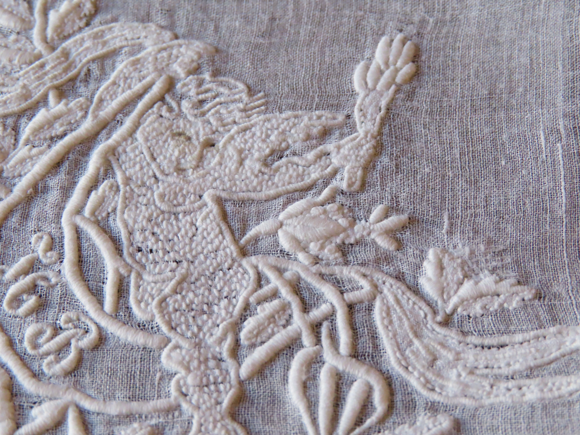 19世紀末期の、極薄いモスリンリネン地に白刺繍のハンカチです。