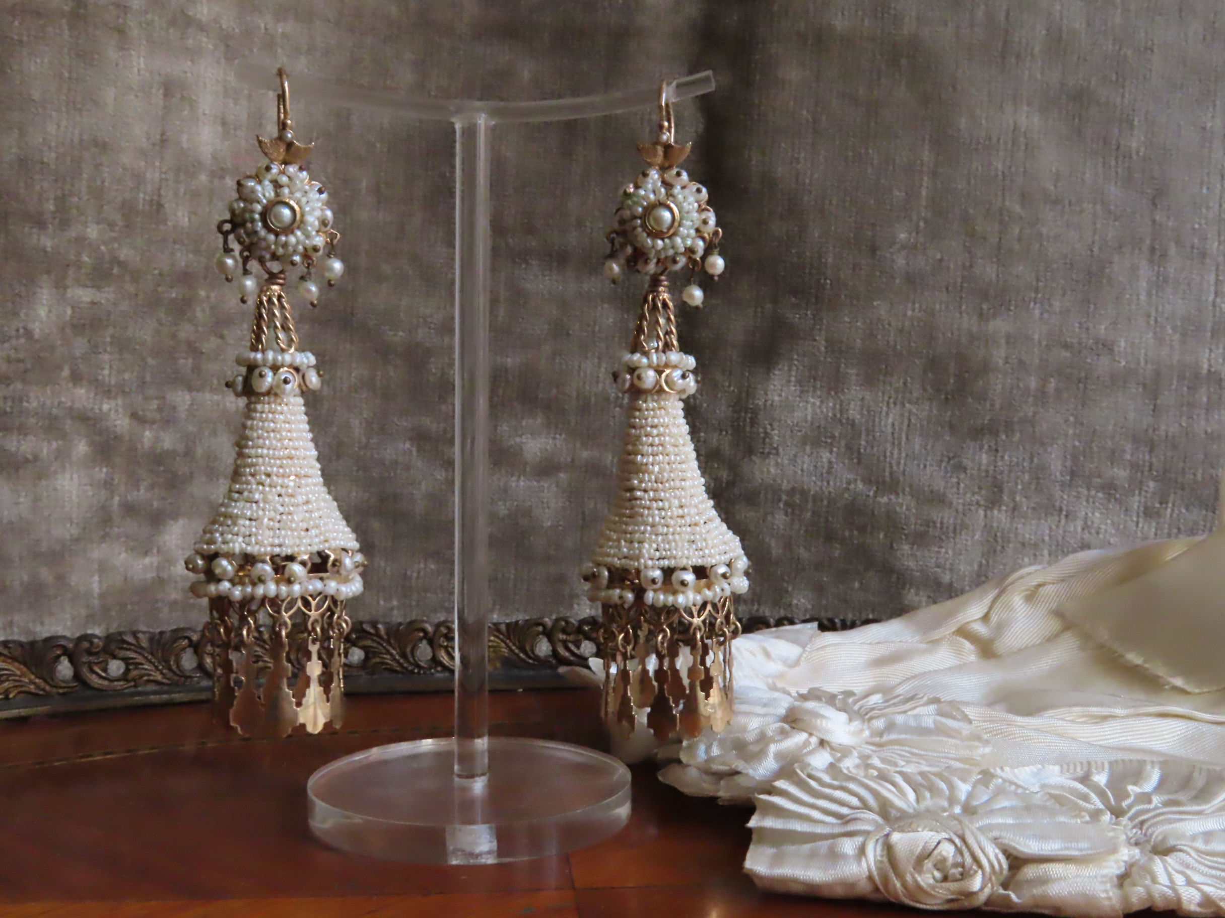 ひとつひとつが金線で繋がれて、円錐形に形作られていて、下にはシャラシャラとエキゾチックな金のフリンジ♪
