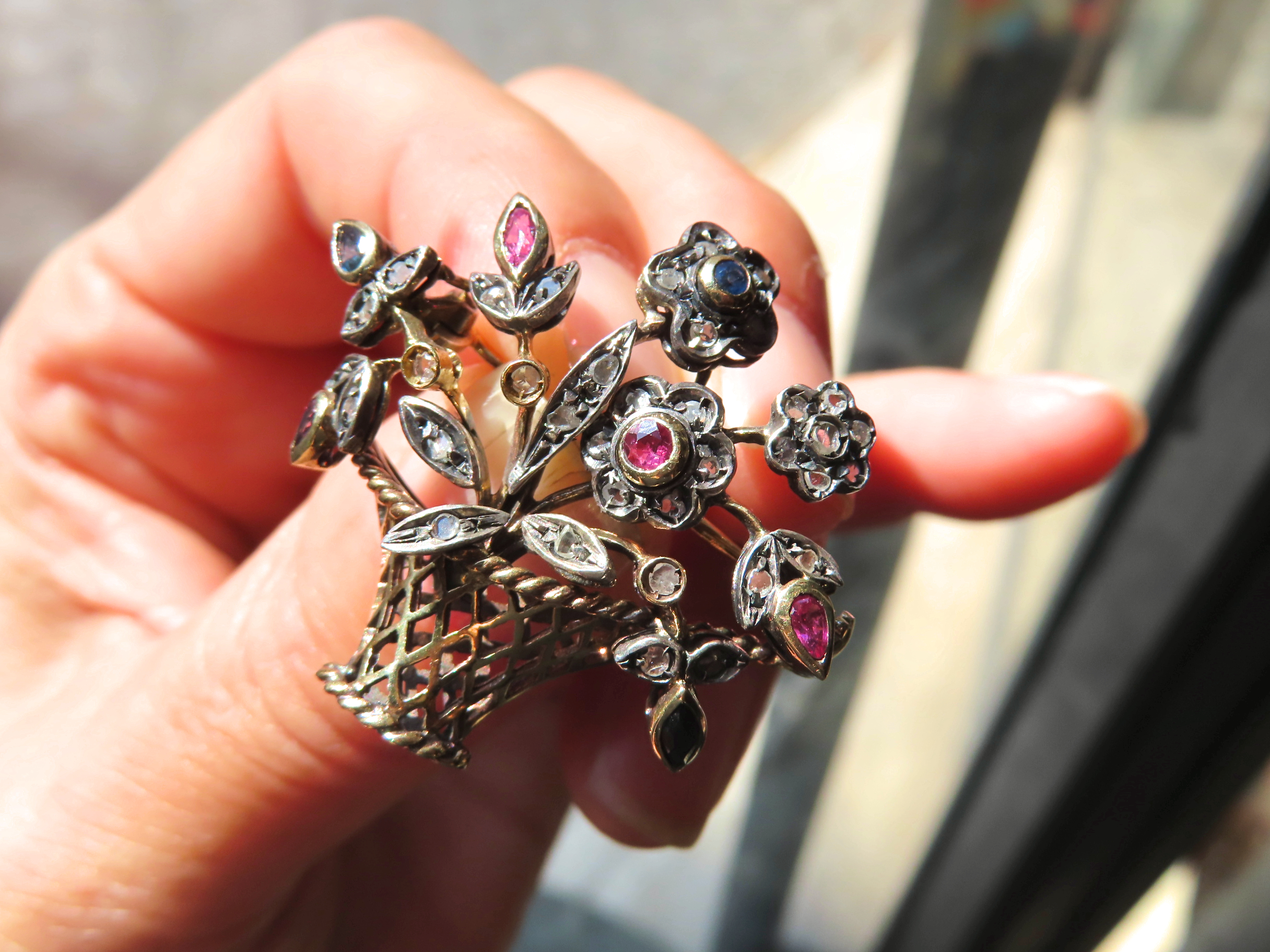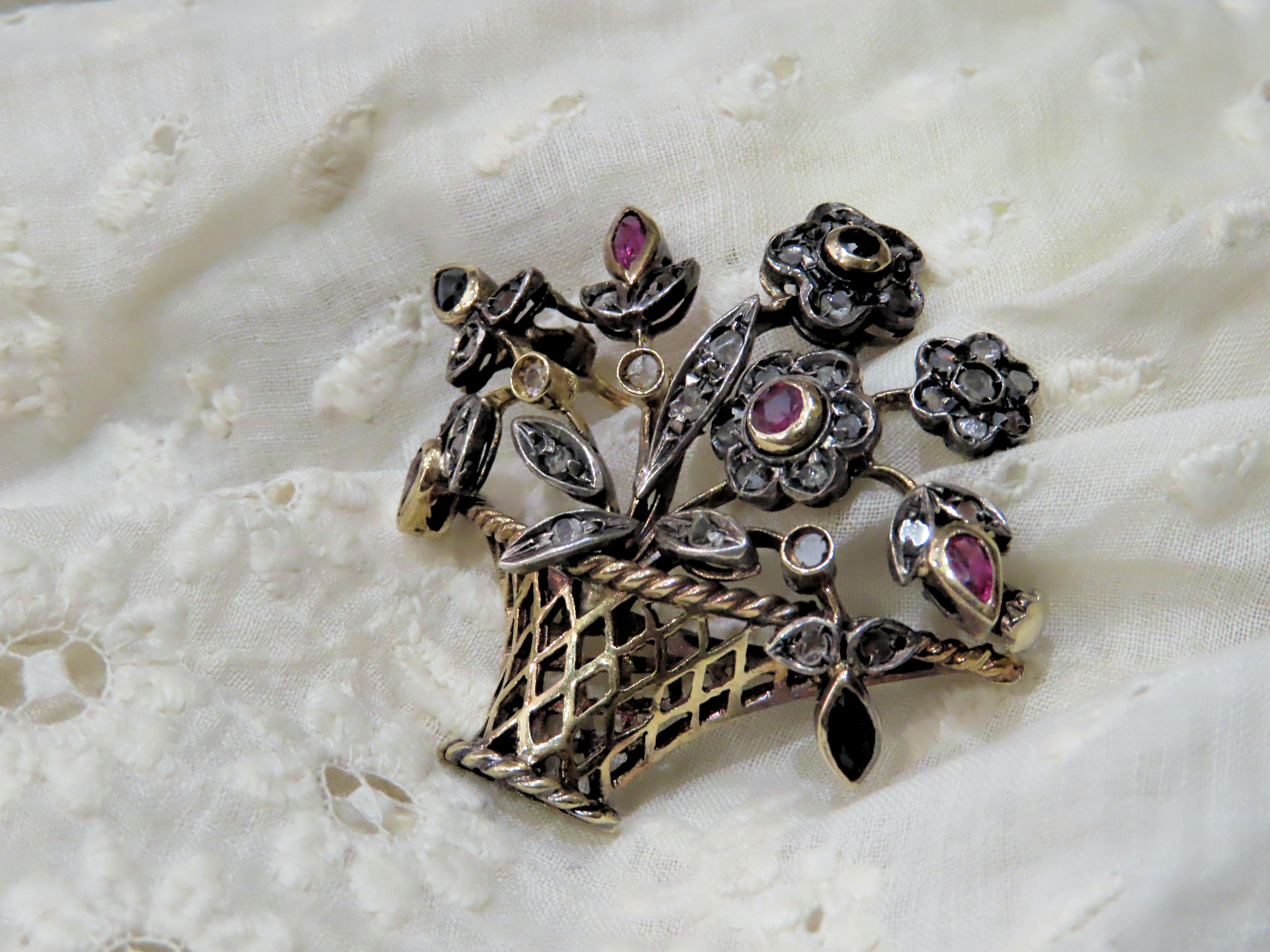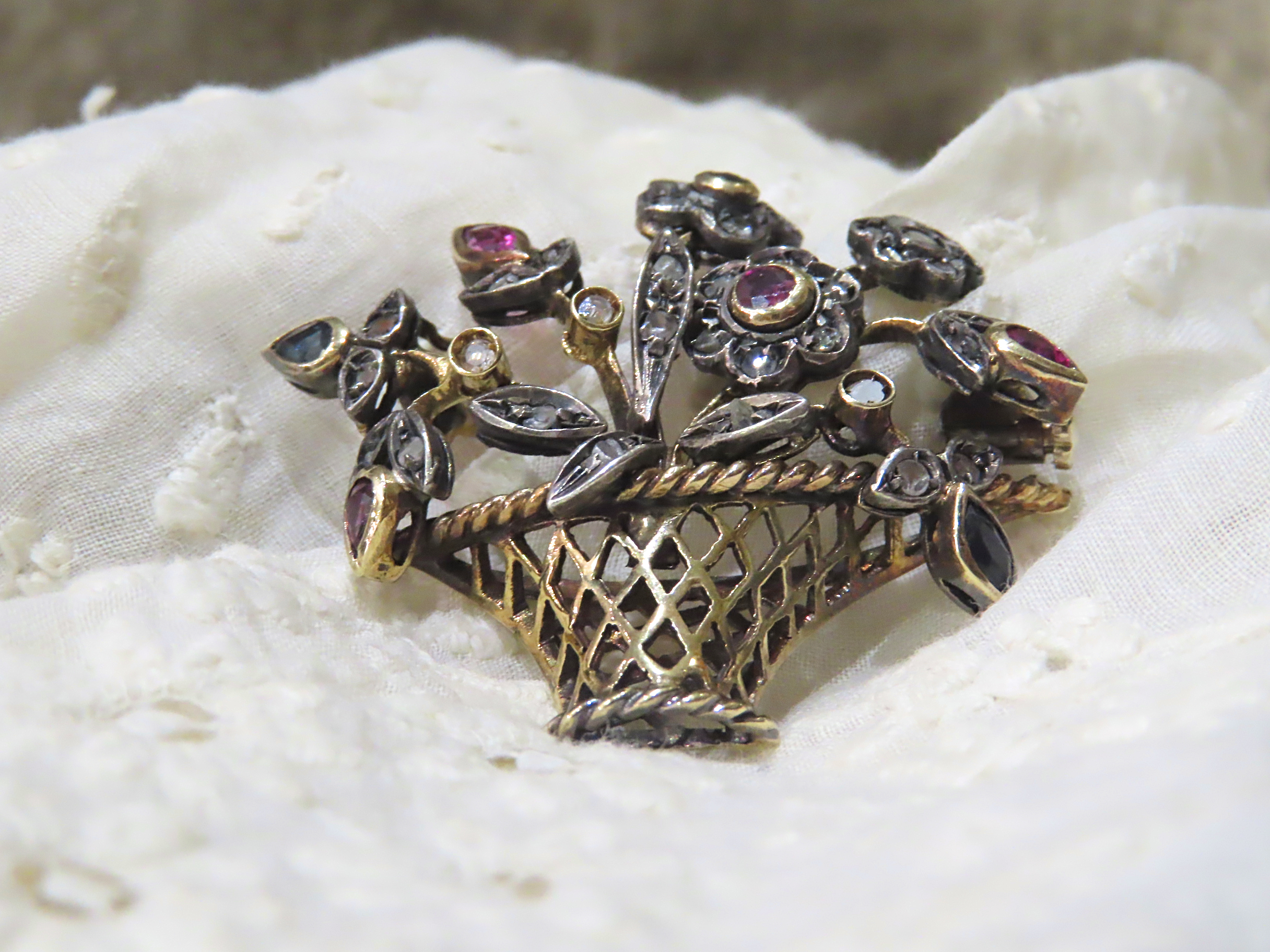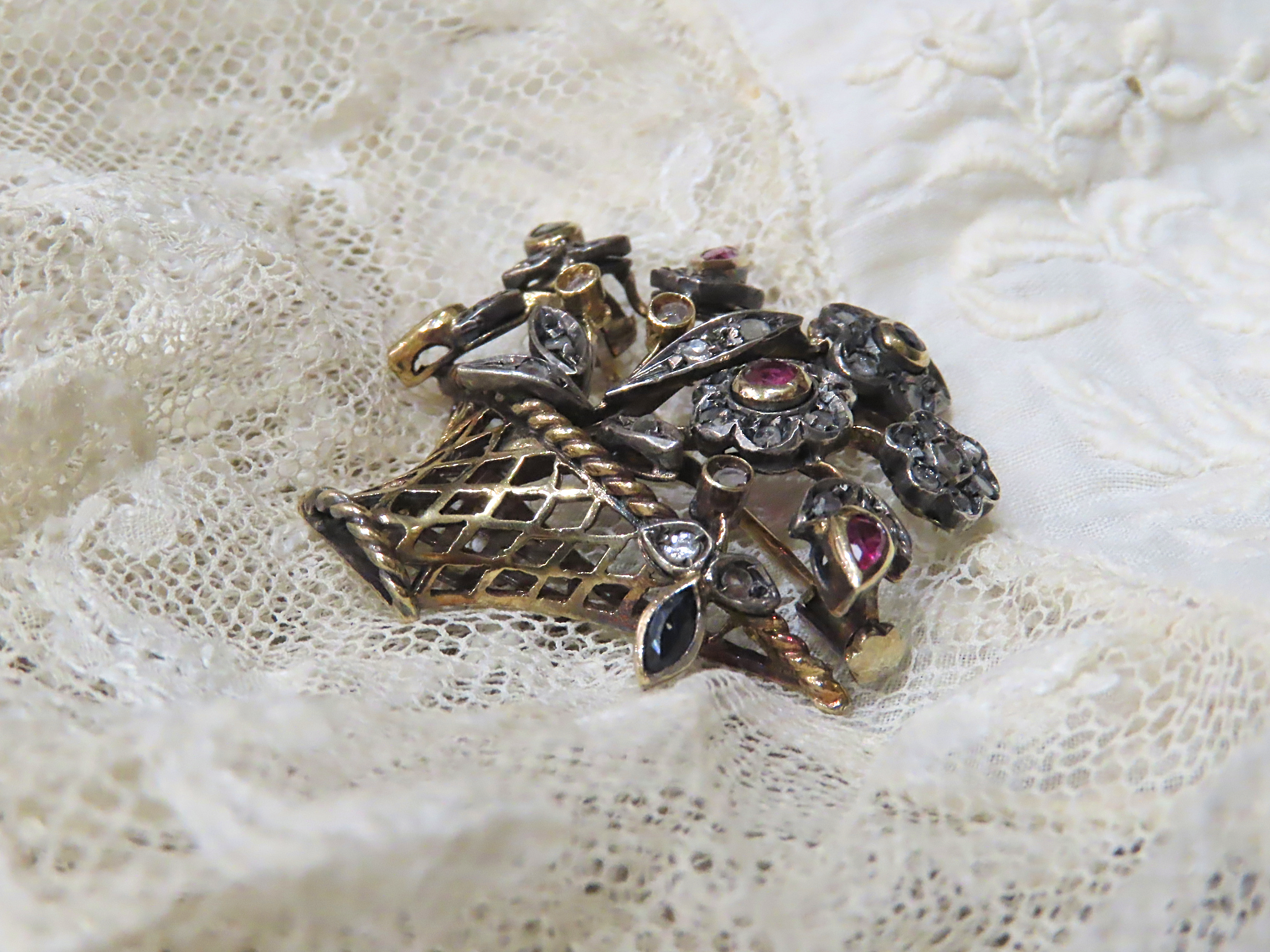 イタリア・1900-10年頃のリバティ時代、花籠のブローチです。