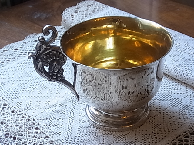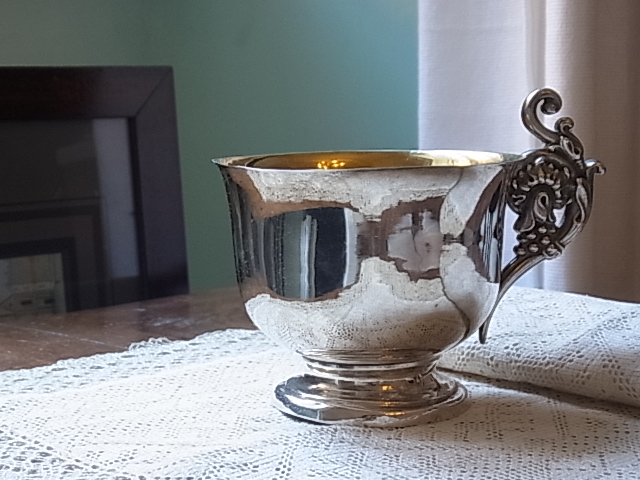 19世紀前半期の、イタリア・ローマ製の、《Tazza di Puerpera.》 PUERPERAとは、ラテン語で母。 その昔のローマで、母となった女性に贈られた、晴れやかな誇り高い記念の銀の杯です。 ※カーソルを画像に置きますと、違う角度の写真がご覧になれます。 |