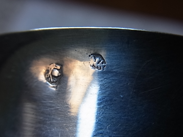 | カップの部分に、銀製品店の刻印(右側)と、ローマの銀の刻印である、教皇のお印の刻印(左)があります。 ※カーソルを画像に置きますと、教皇の刻印の拡大写真がご覧になれます。 「教皇さまの帽子と重なる鍵」のお印は、今でも、ローマの教会などで見ることが出来ます。 イタリアならではの、レアなコレクションアイテムです。 ご出産のお祝いにもお勧めです。*^^* |