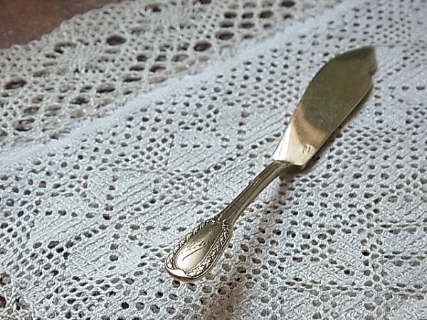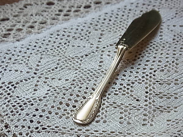 | このバターナイフには全てヴェルメールが施され、またRobertという名前の彫が施されています。 長さ(Length):10.6cm ※カーソルを画像に置くと、拡大写真がご覧になれます。 |