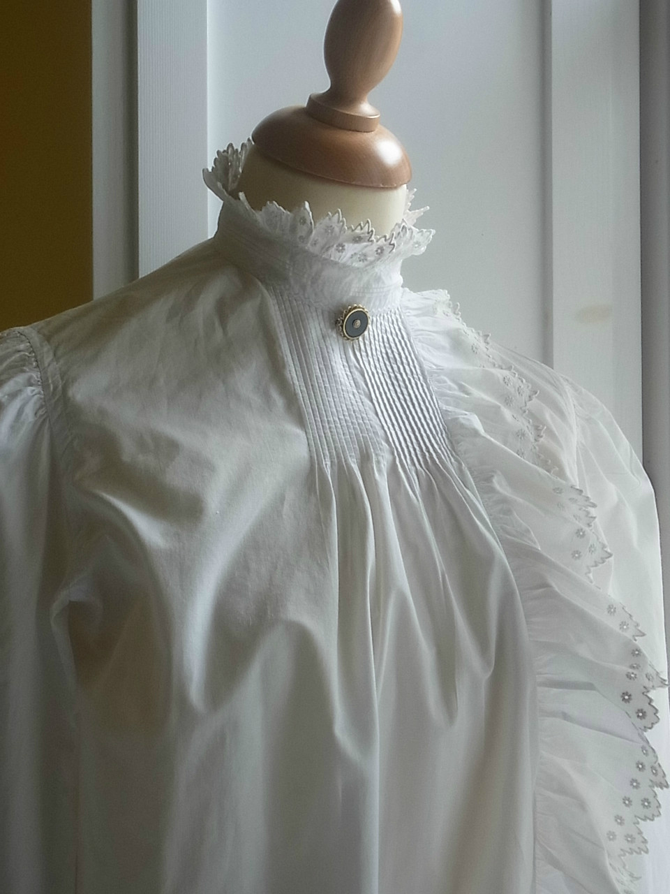 | アンティークのブラウスと。 本来は、このように襟元に使われたものです。 ※カーソルを画像に置くと、拡大写真がご覧になれます。 |