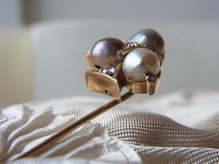 ややパープルがかった3粒は粒が揃ってて(各パールは約6ミリφ)、しかも微妙なグラデーションで組まれています。