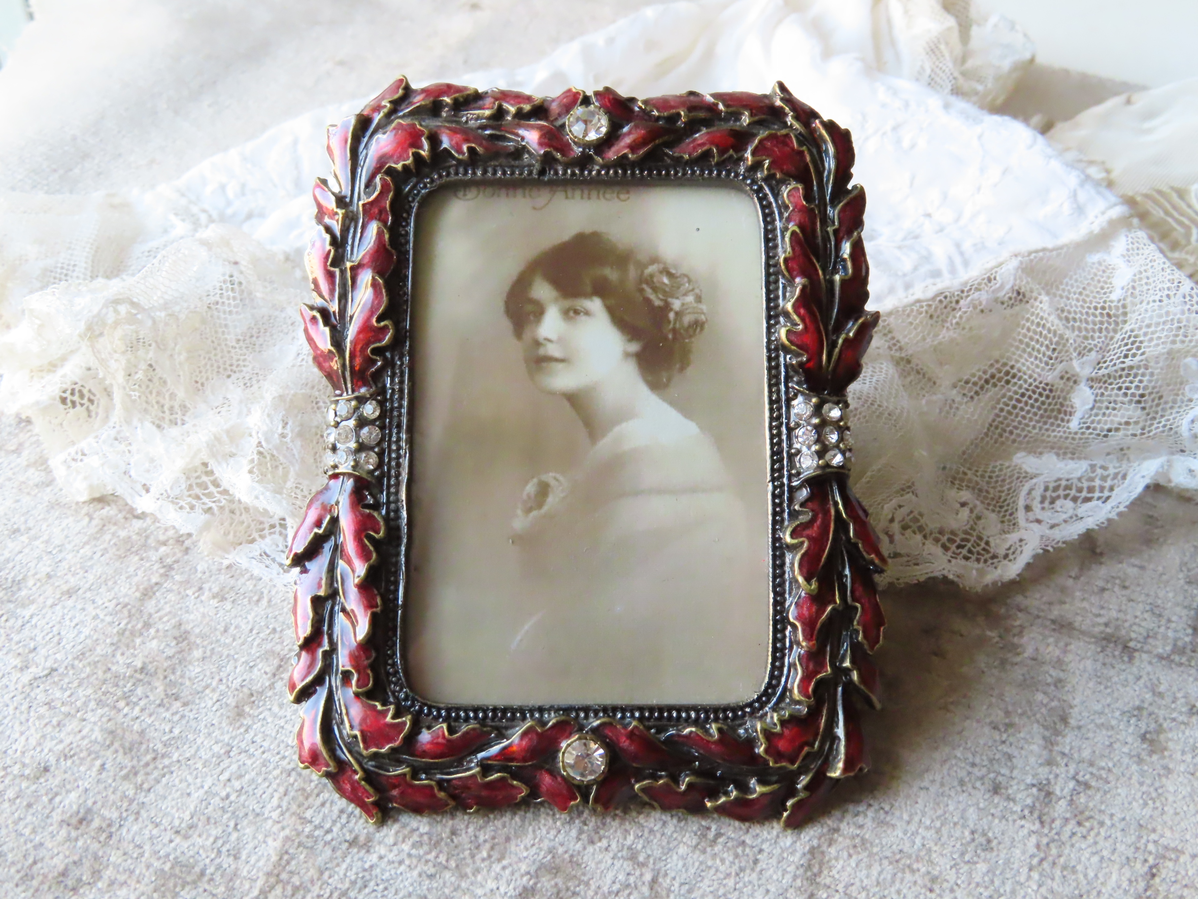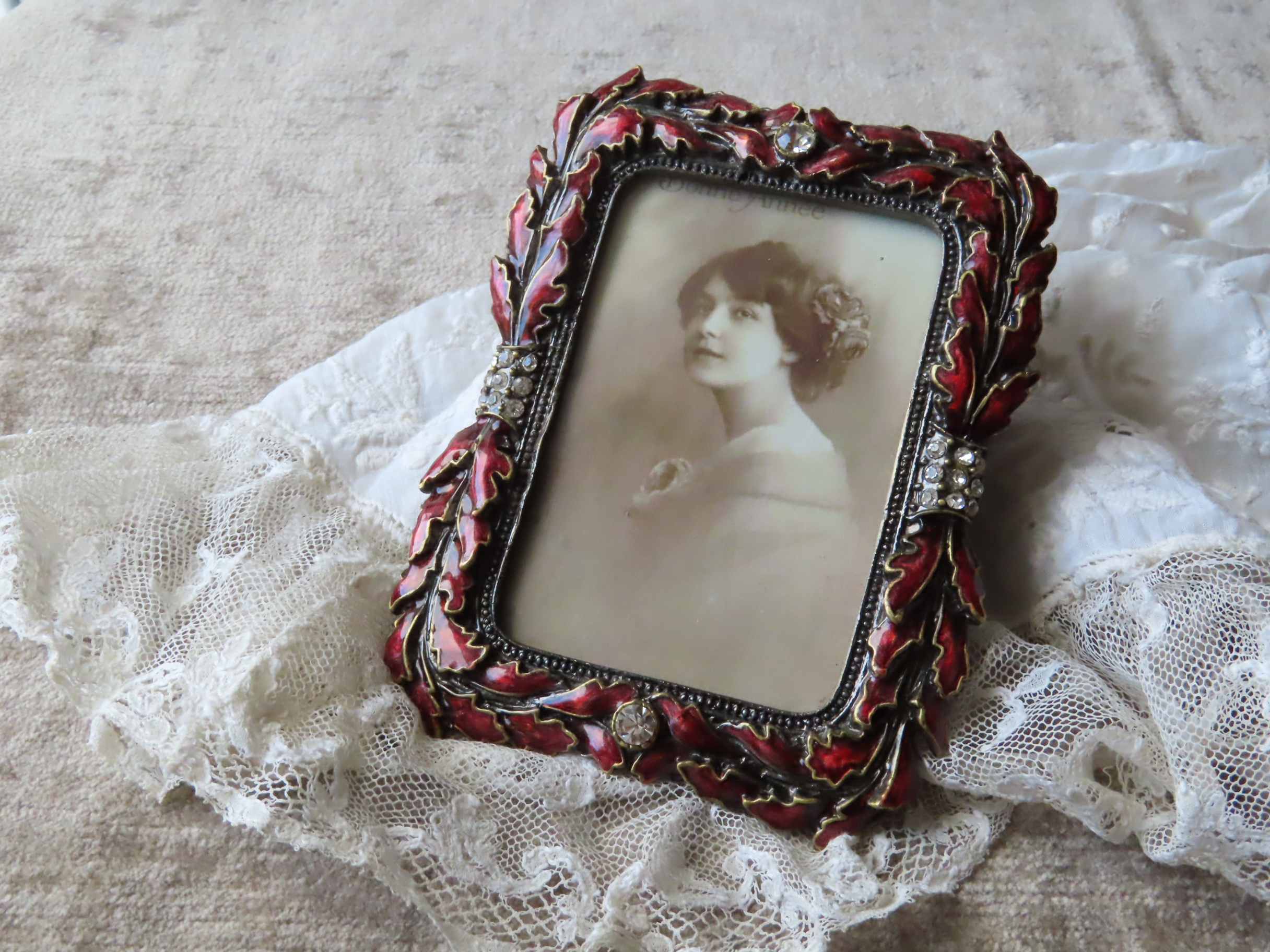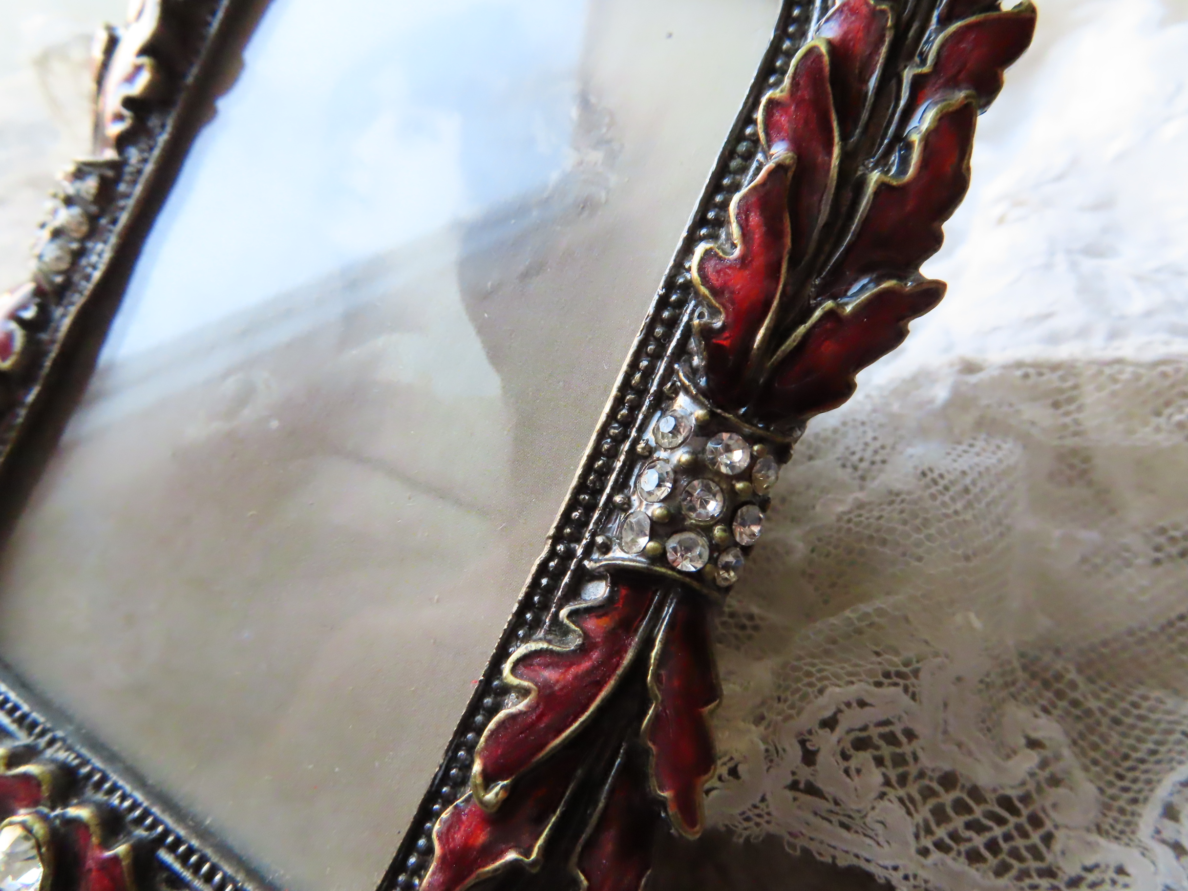 フランスまたはイタリア製の、1900年代のワインレッド色のエナメルの写真立てです。