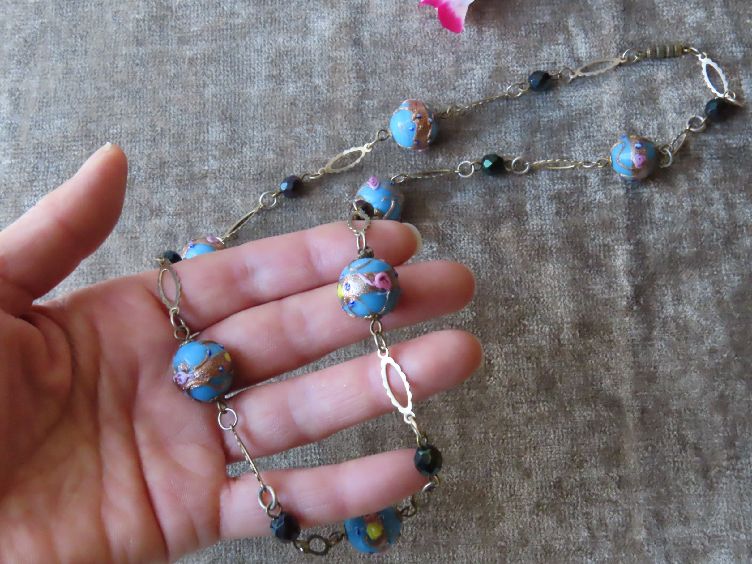 1930年代の、ムラーノガラス(ヴェネチアのムラーノ島のガラス)のビーズ玉で出来たネックレスです。