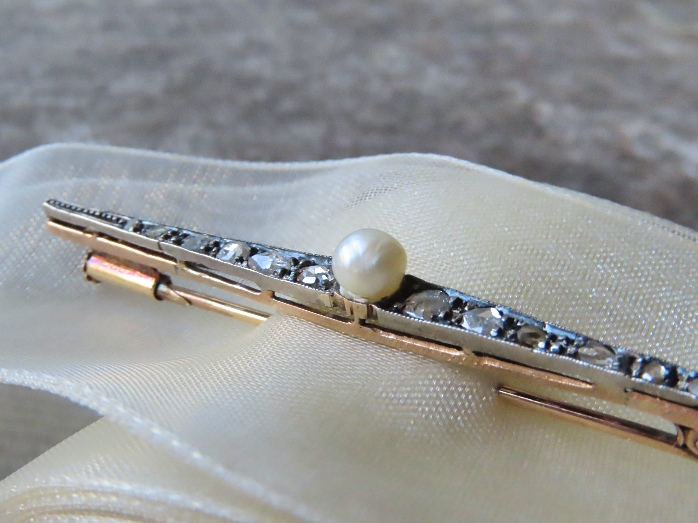 19世紀末から20世紀初頭の、天然真珠とローズカットダイヤモンドのブローチです。