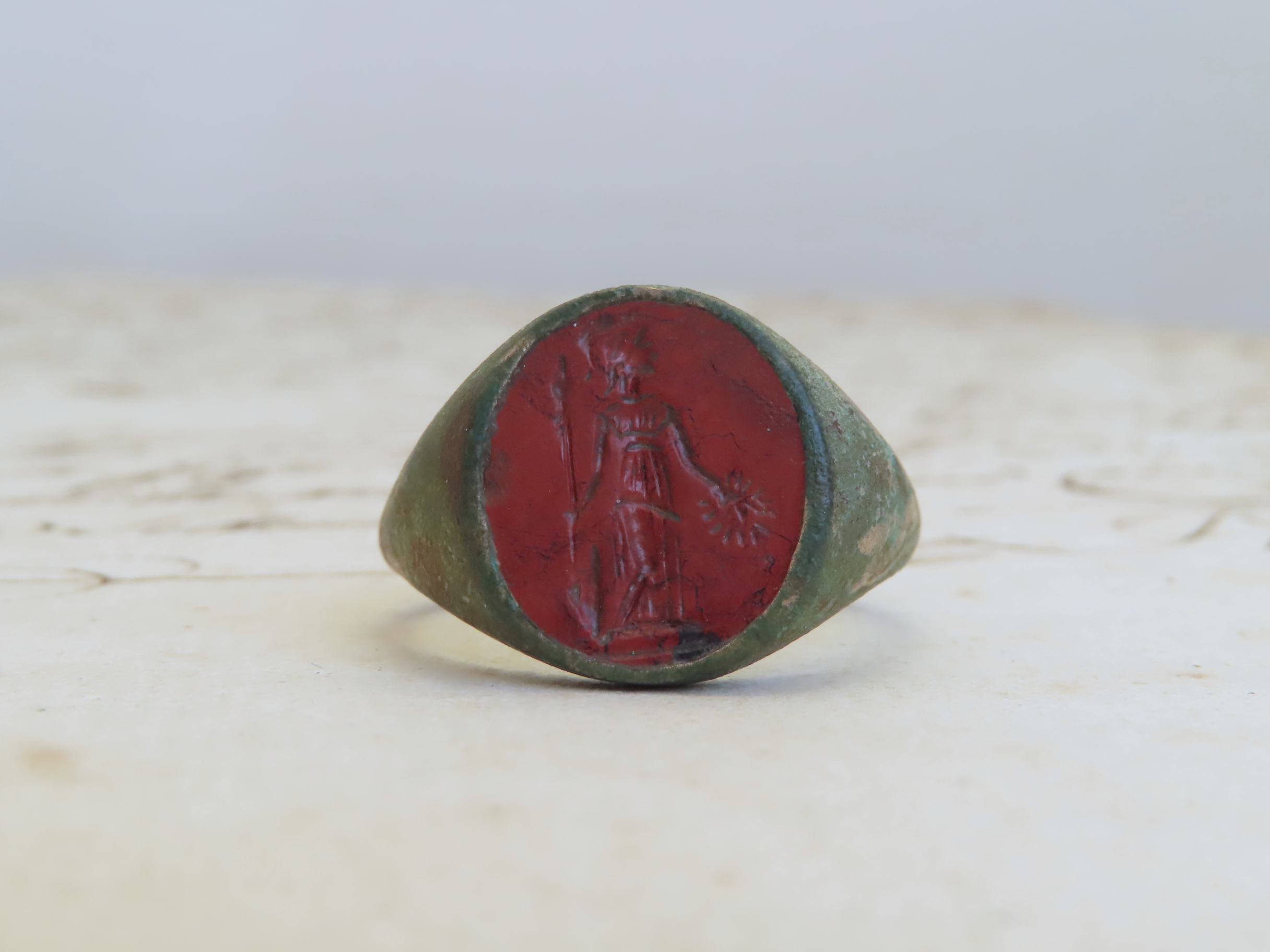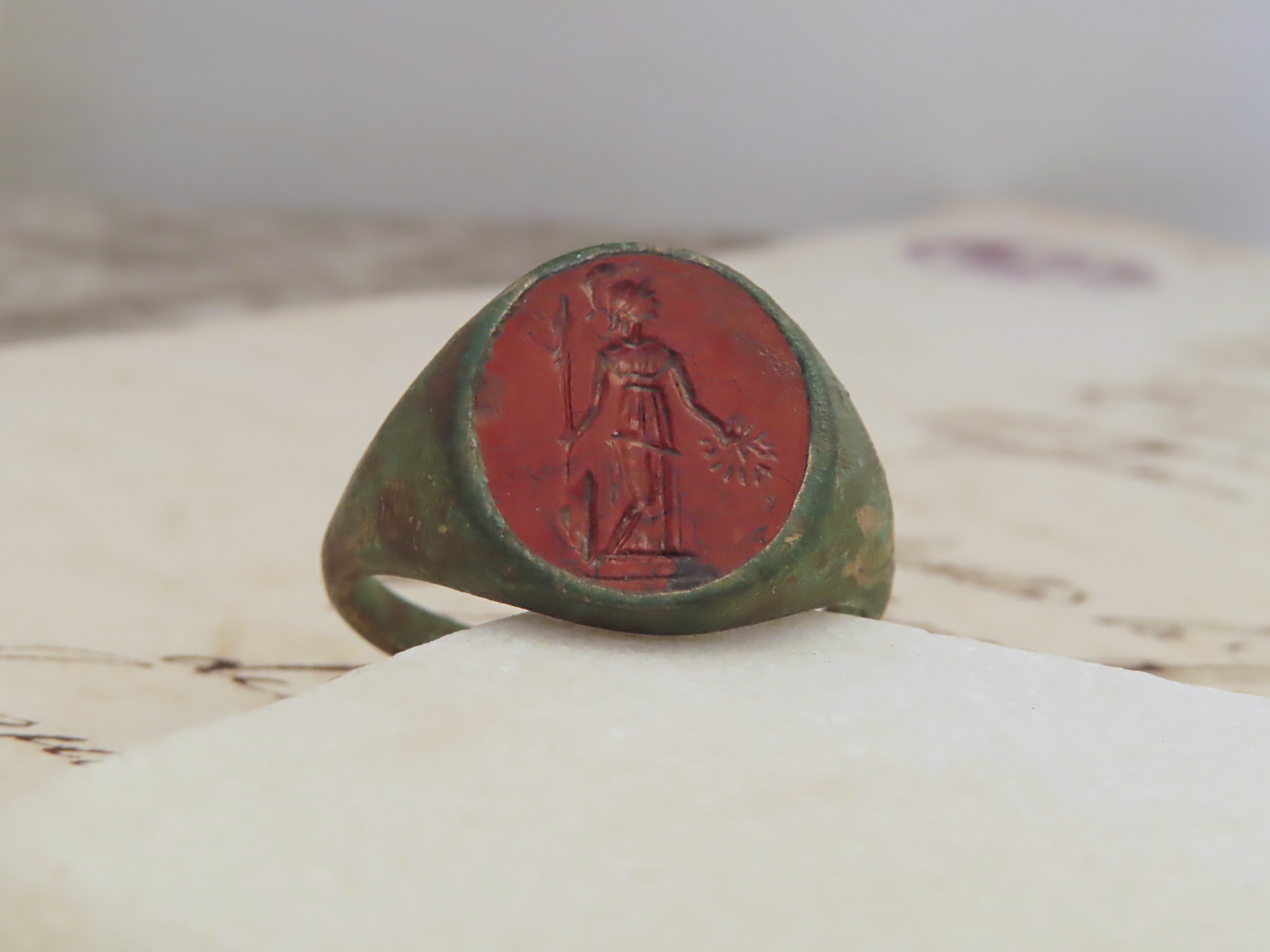 MR-269 古代ローマのインタリオリング ジャスパーにミネルバ(アテナ)の彫 |