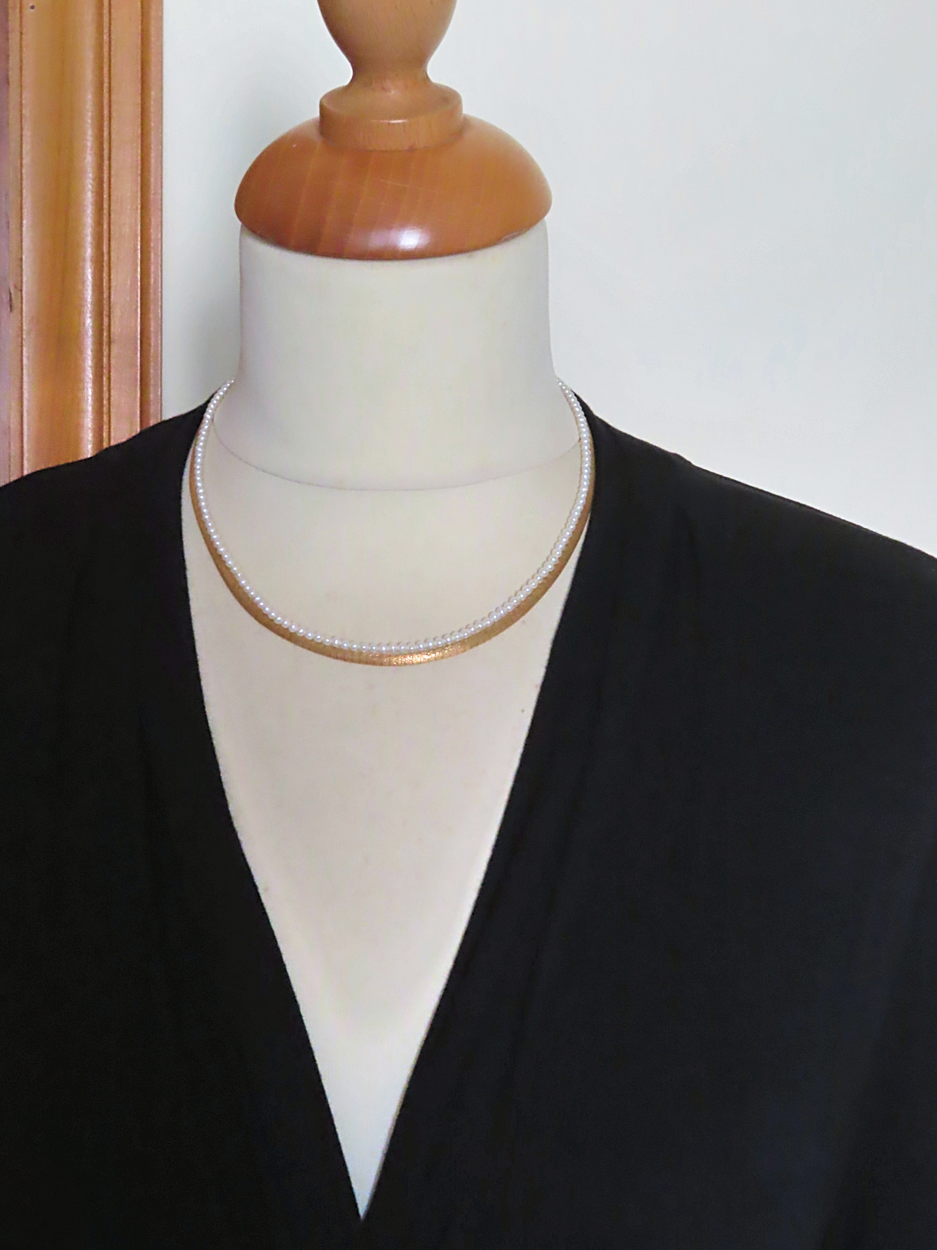 | 一粒の直径は、約2.5mmΦ。 ここまで小さな粒のネックレスは稀です。 今では、この様な小さな粒の生産者がいないそうです。 (特別な技術がいる上、大粒を作るより割が悪い、などの理由です。) 艶やかで照りが良く、粒が完璧に揃っています。 流石の高品質です。 |