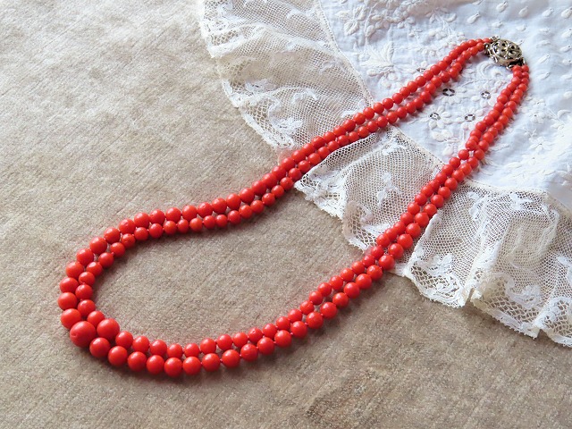 MR-322 地中海珊瑚の2連ネックレス 丁度良いボリュームの胡渡 |