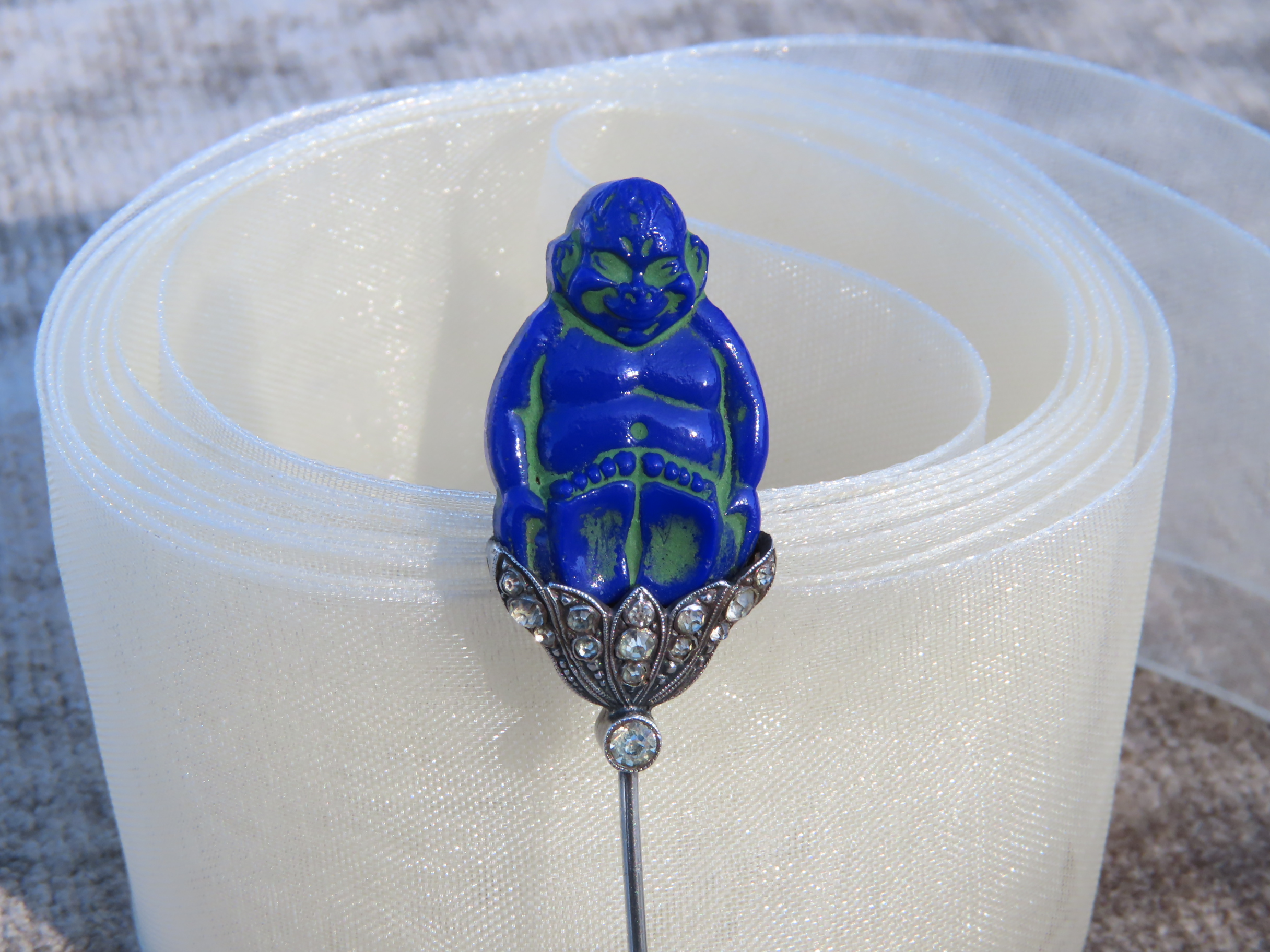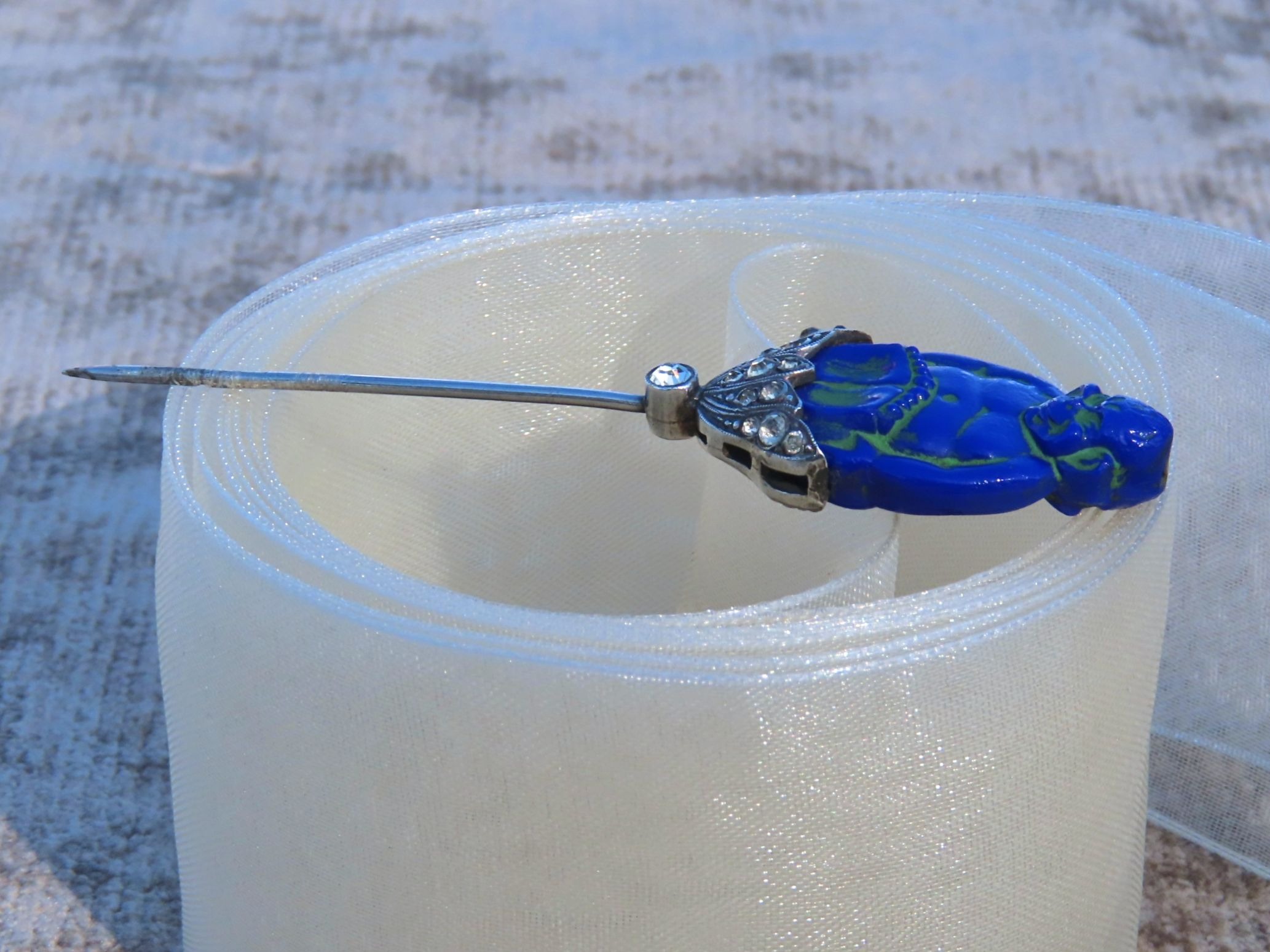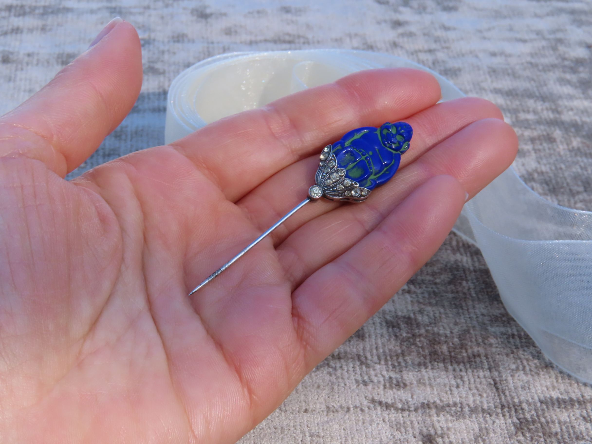 イタリア製の、ペーストガラスと銀台のクラバットピンです。
