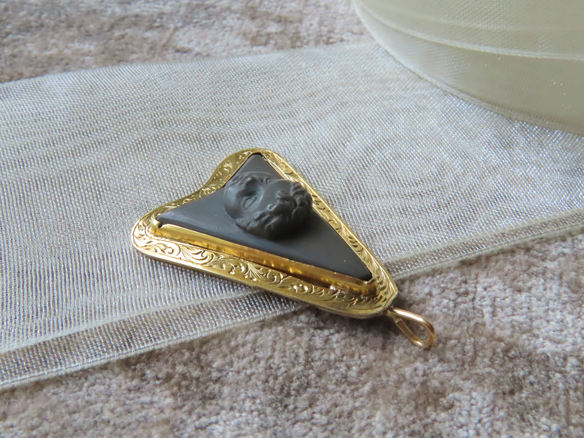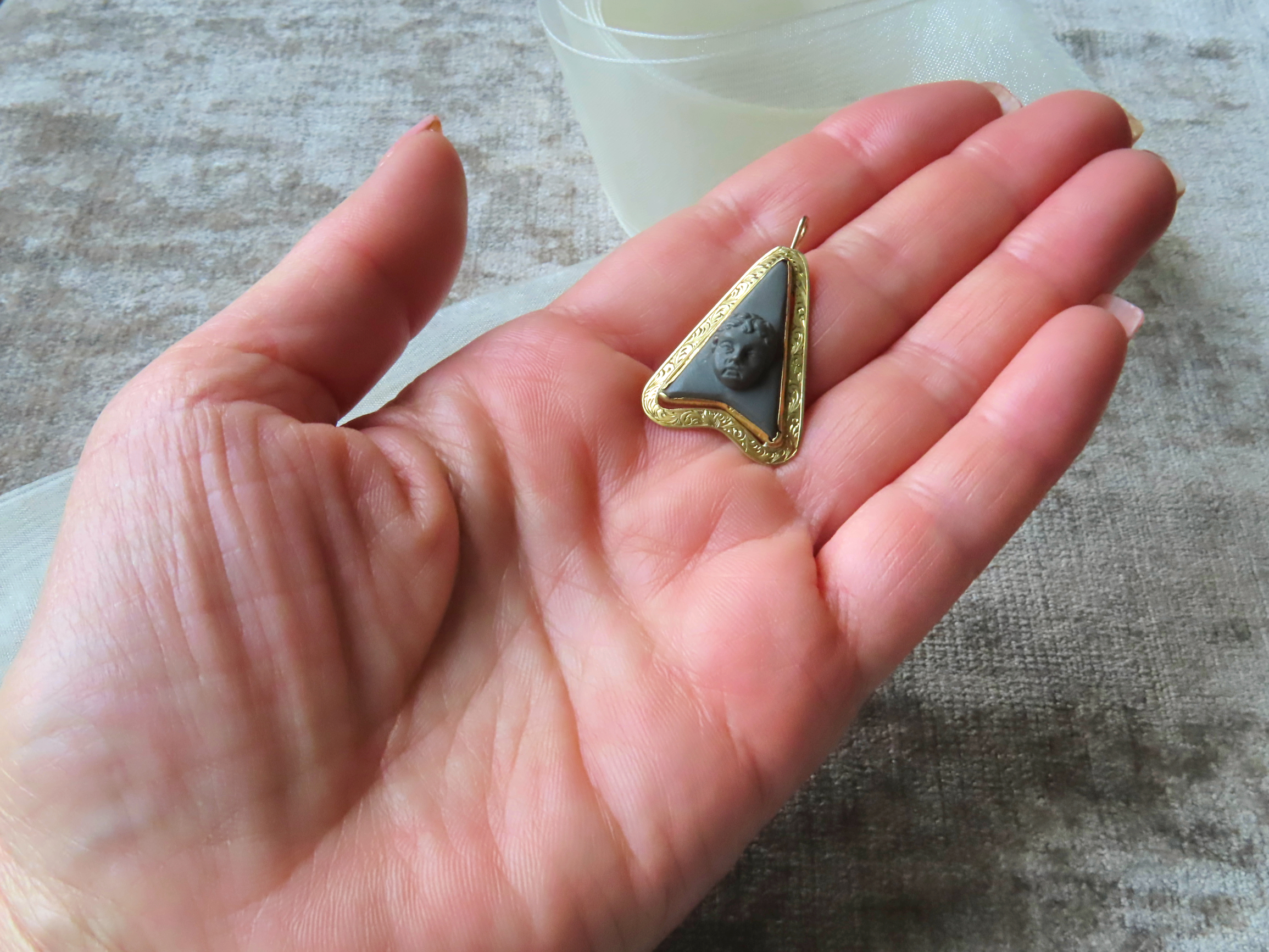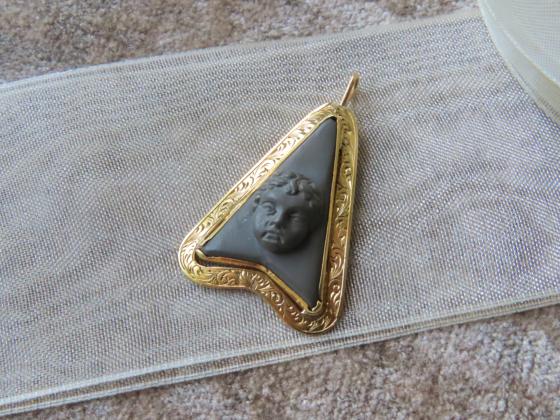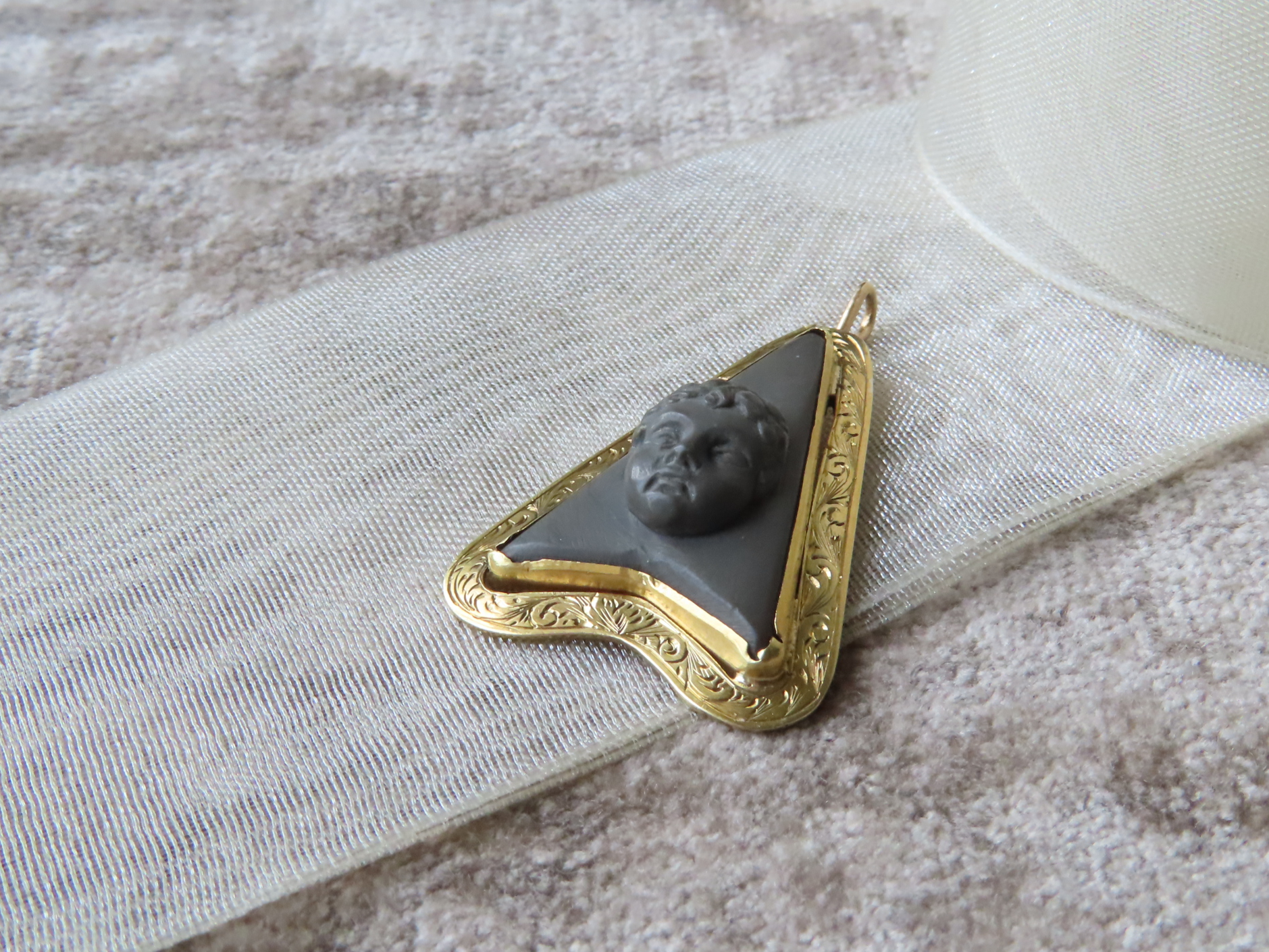 ラーバカメオは、女神や天使などが多い中、こちらは子供の頭です。
