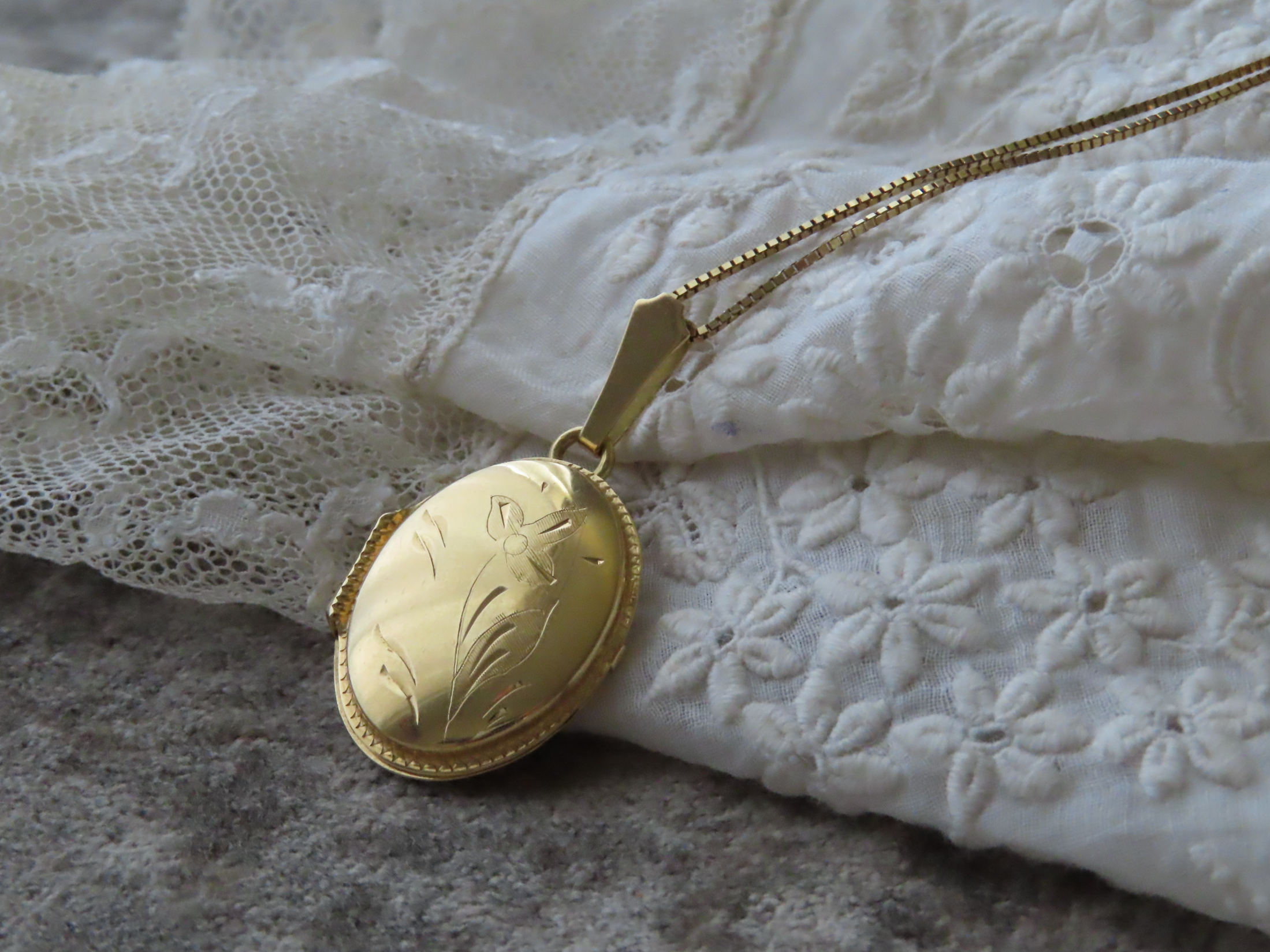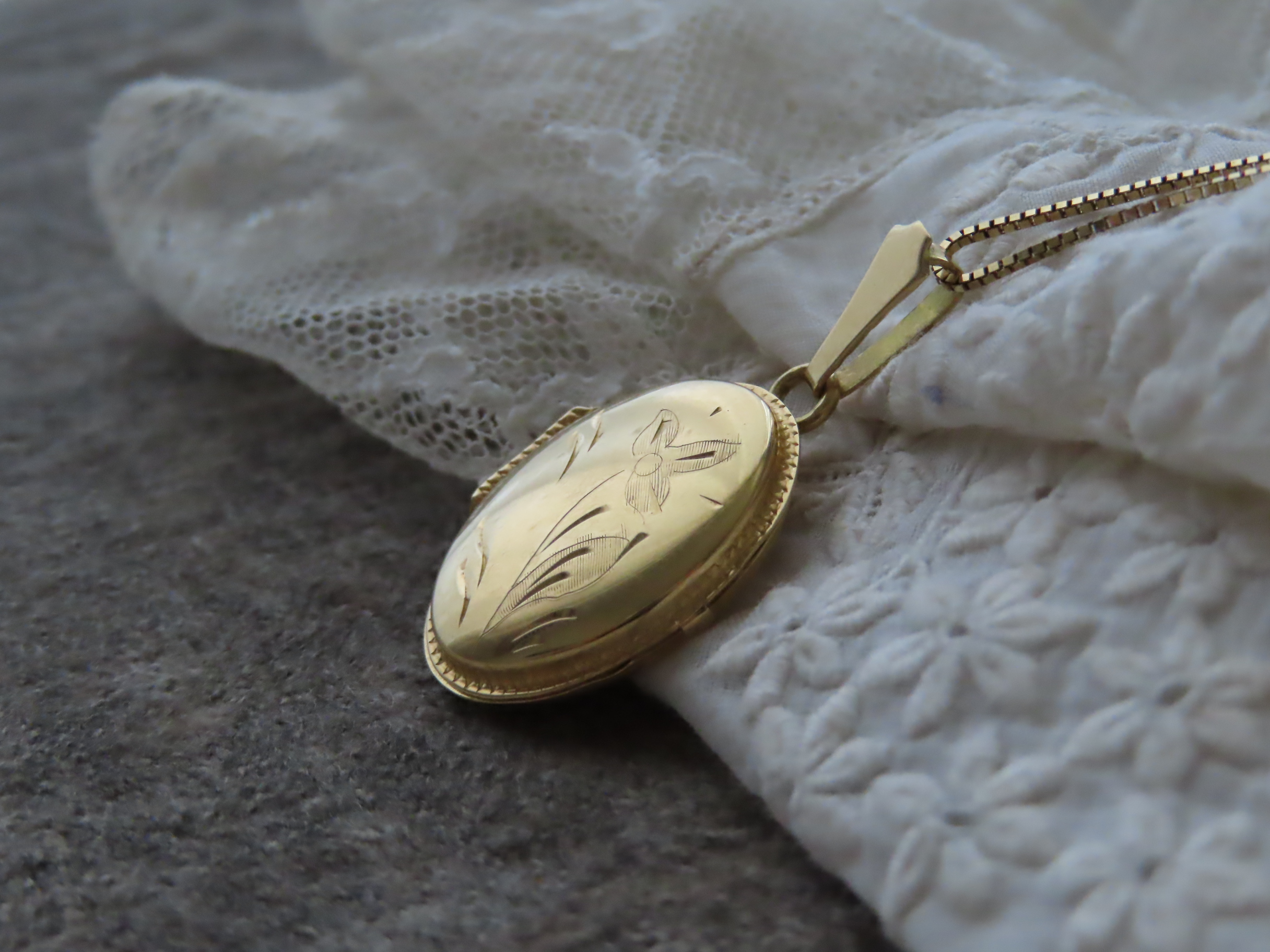 イタリア製・1950年代の、優し気なお花のロケットペンダントトップ&チェーンです。