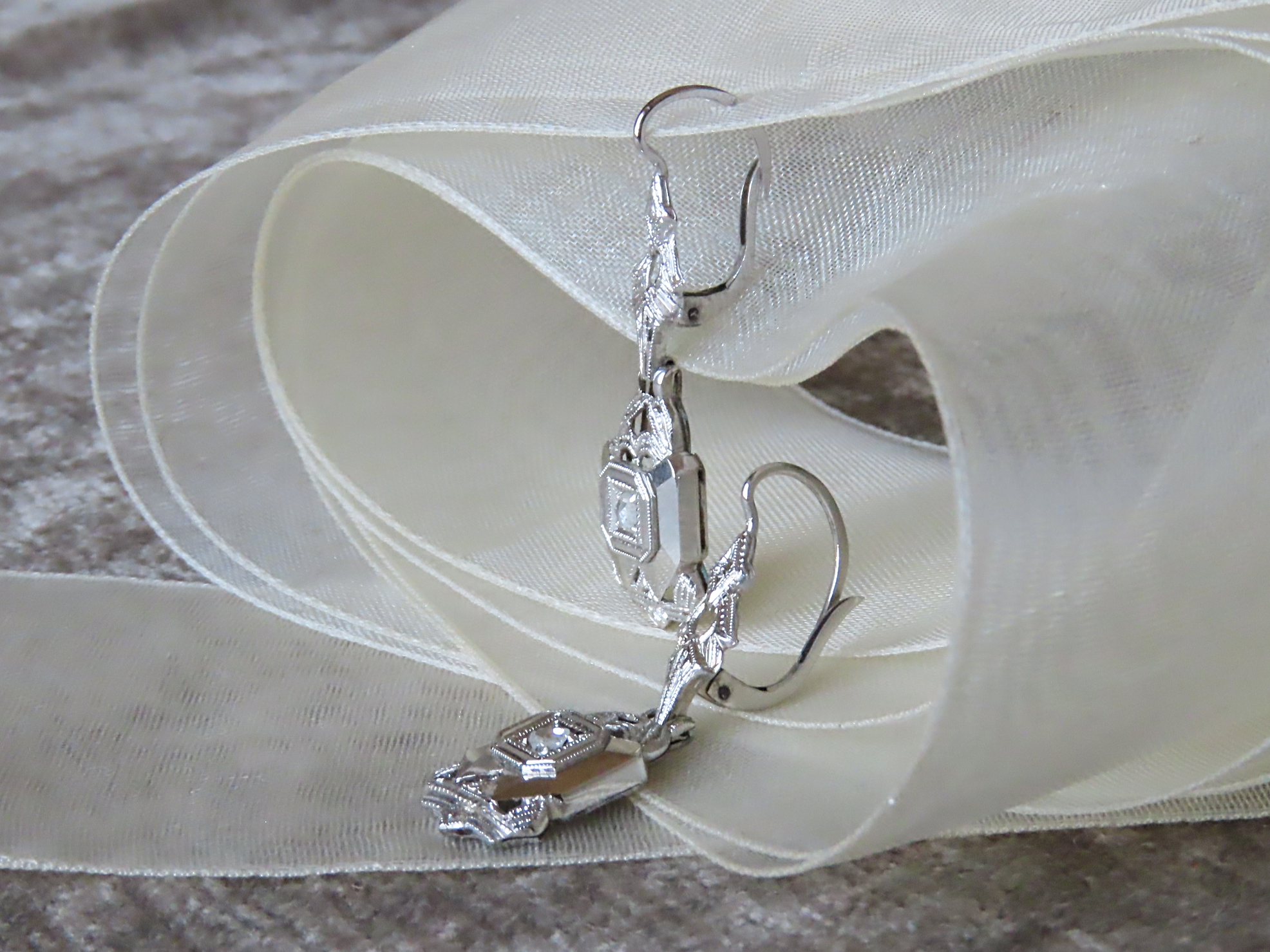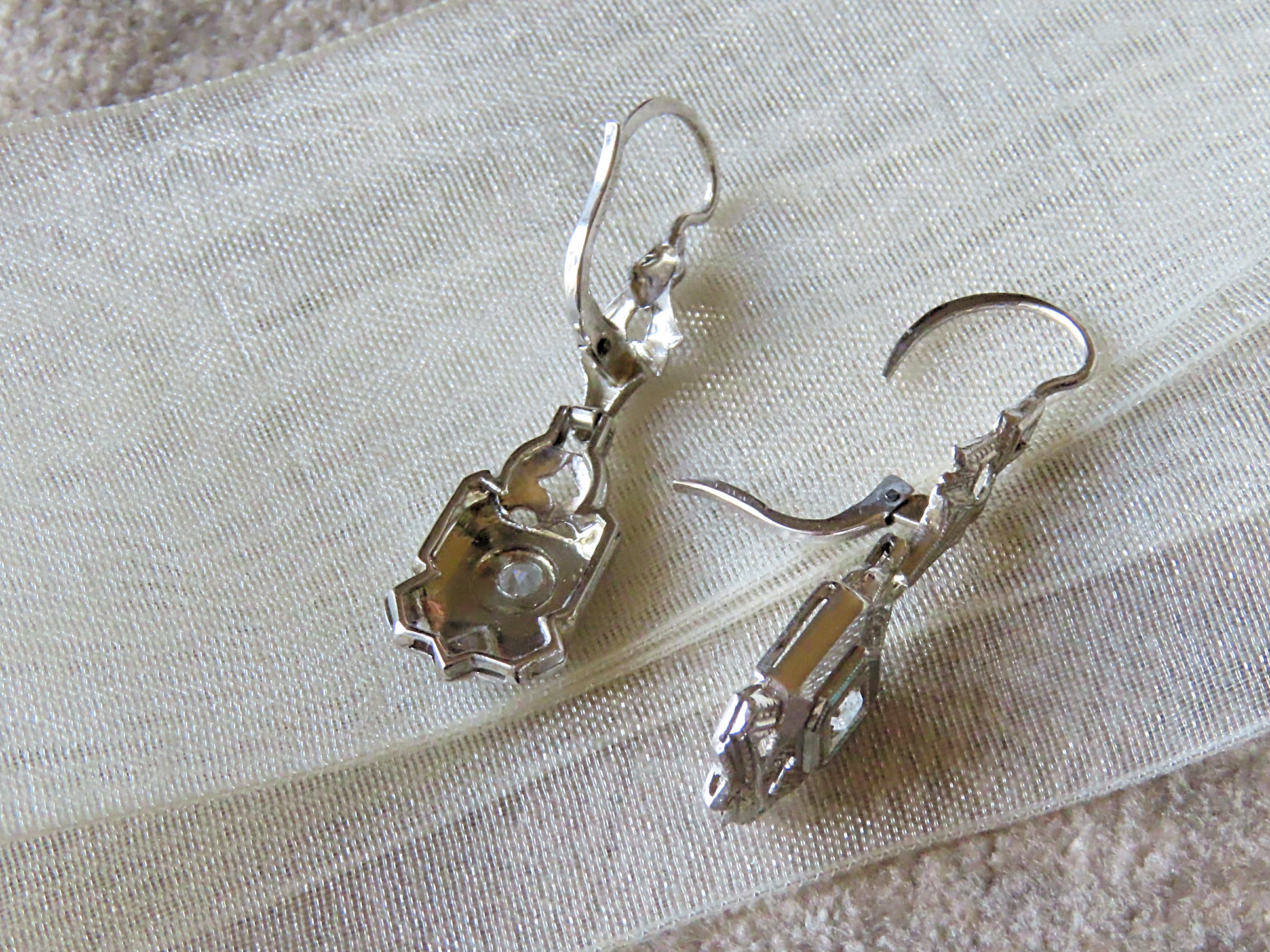 | アールデコ時代の特徴的なデザイン。 1920年代のイタリアの、WGとダイヤモンドのピアスです。 アールデコ期は15年弱と短かったので、中々見当たらない稀なお品です。 20世紀初頭から続くこの時代の、クールでスマートな白いジュエリー。 |