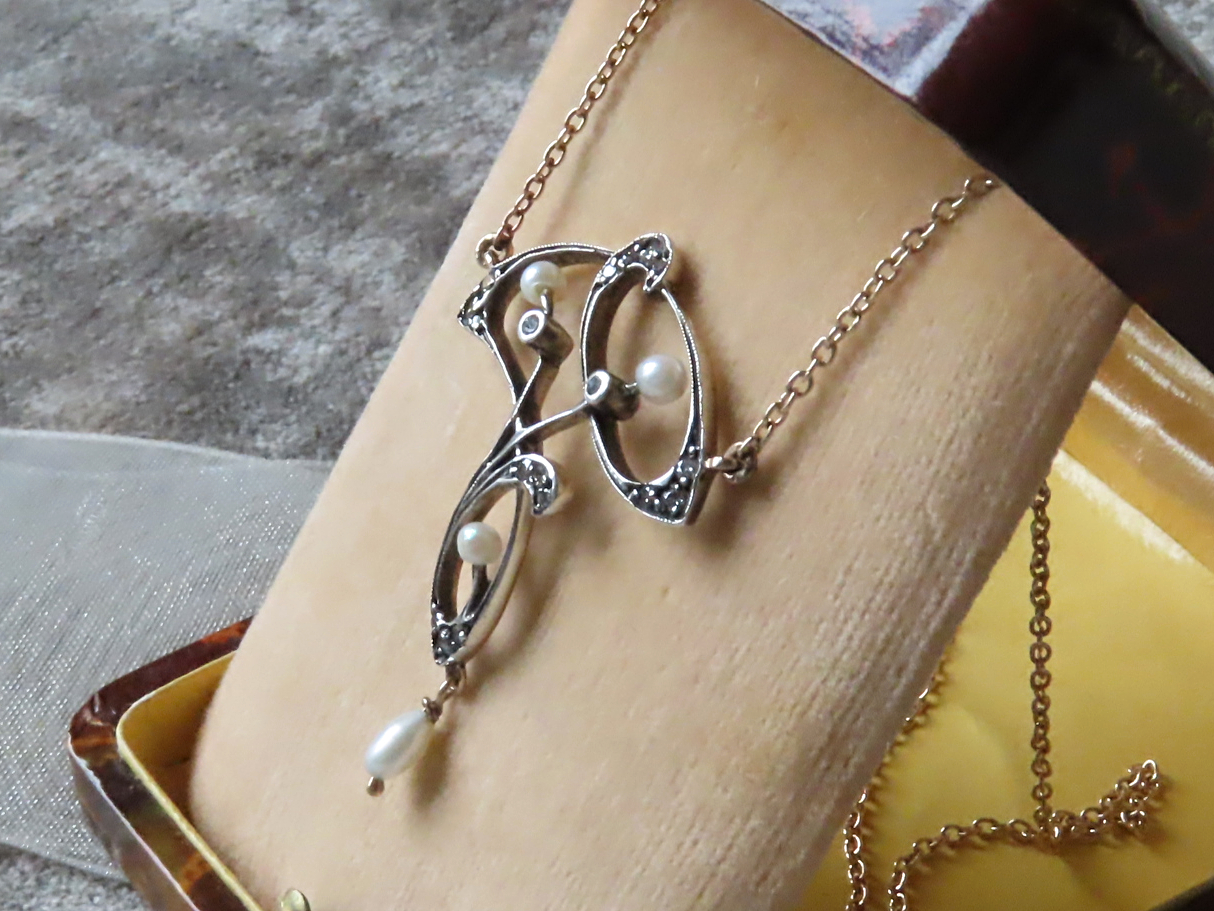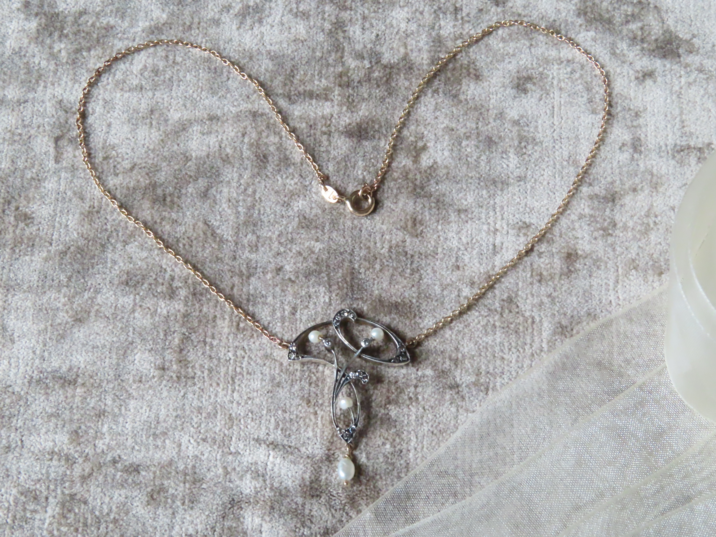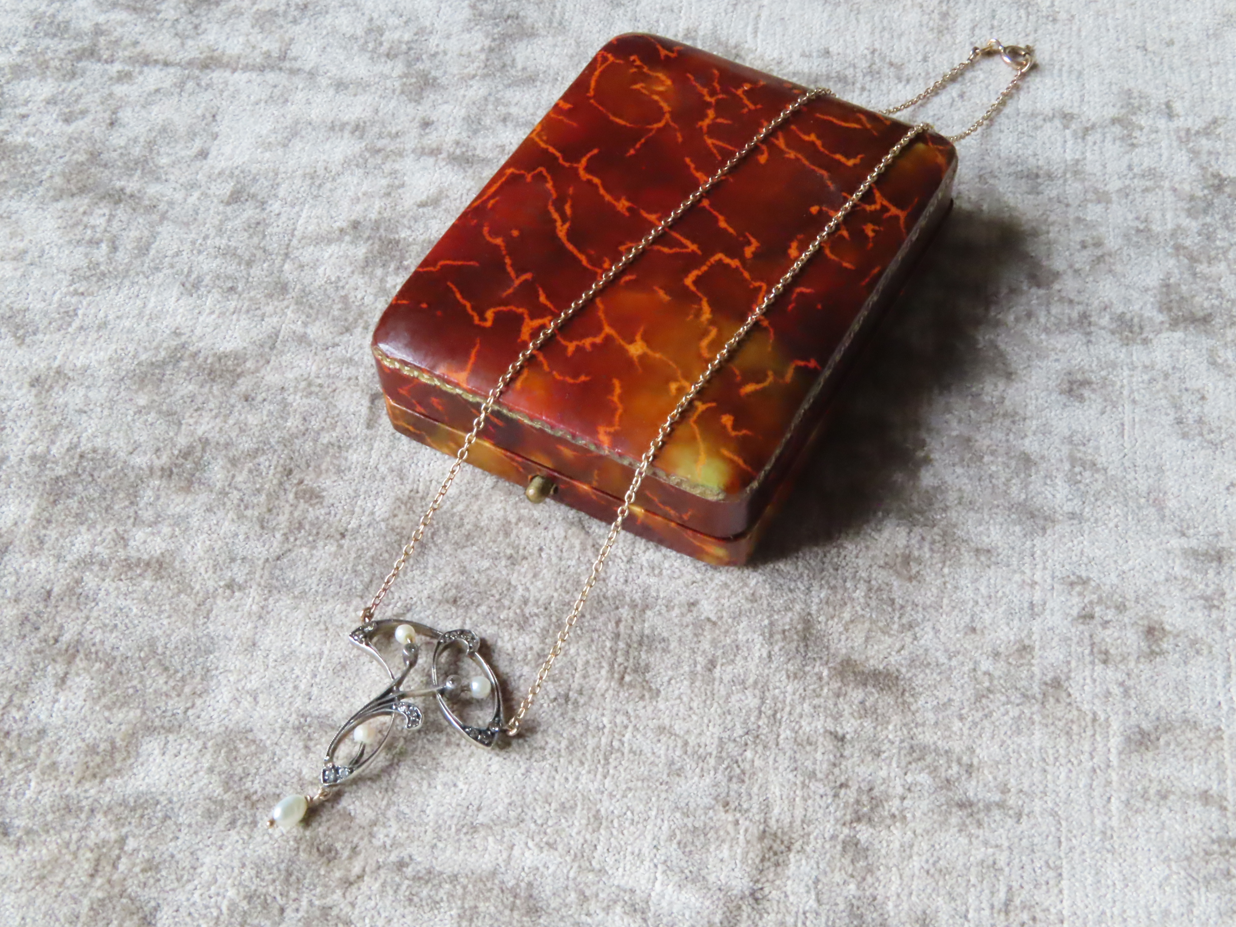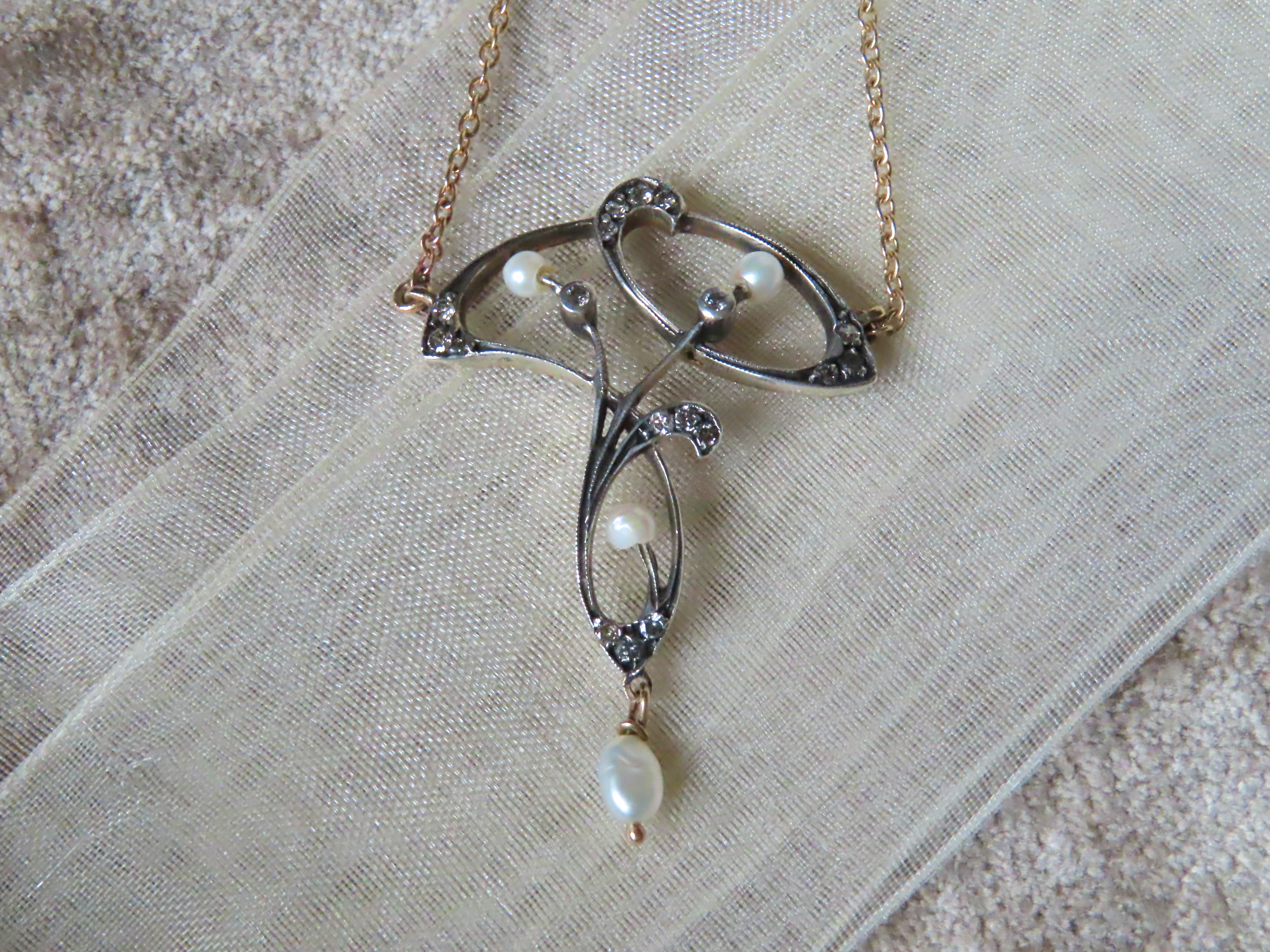 | NaturalPearl&Diamond pendant necklace Italy circa1900-1910 *excellent condision