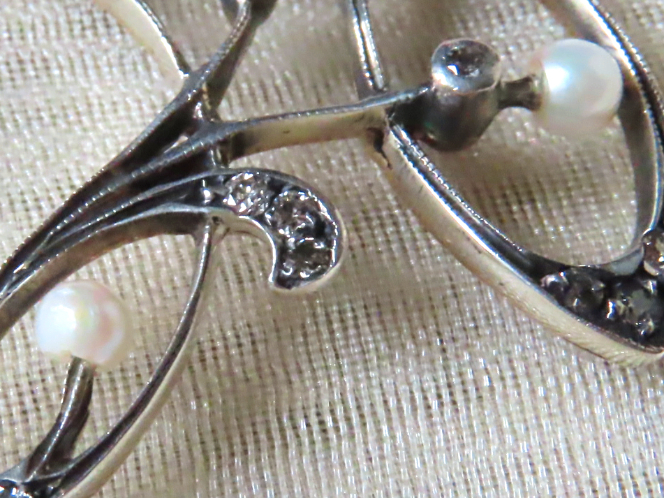 | 天然真珠(海水の物)は、柔らかい白で、ダイヤモンドはアンティークブリリアントカットです! 実はこれが珍しいのです。 |