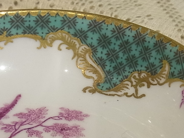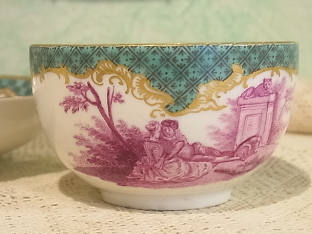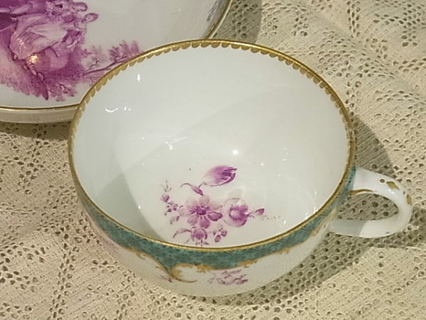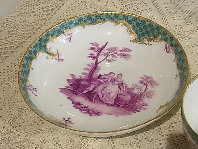 | マイセン磁器は1710年、東洋の磁器に魅せられたザクセン公国アウグスト強王の命によって生まれました。 このC&Sは、1741年、ロココを代表する画家・ワトー(Watteau)の作品を元に、へロルトが完成させた、ロココ宮廷文化を描いたワトー系、マイセンの中でも最高峰の絵付けです。 |