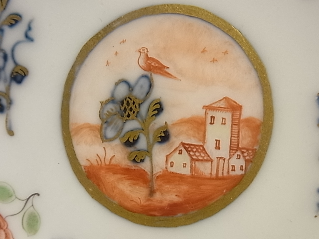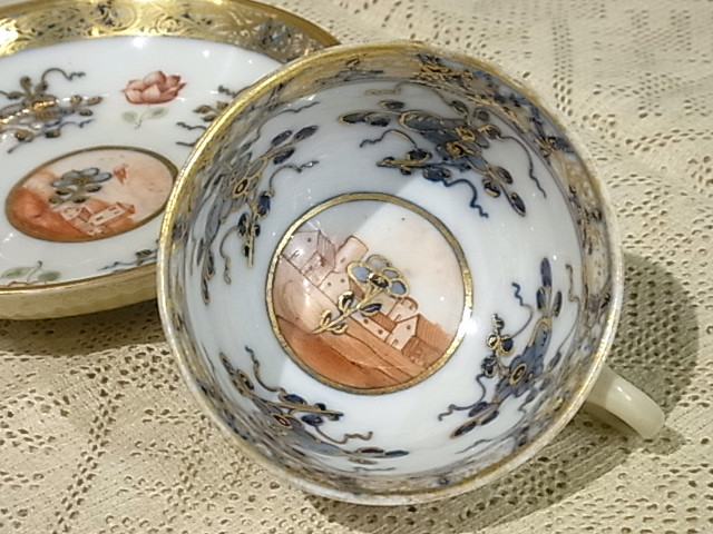 | マイセン磁器は1710年、東洋の磁器に魅せられたザクセン公国アウグスト強王の命によって生まれました。 このC&Sは、18世紀当時の憧れであった日本の伊万里の影響が、色濃く現れています。 しかしよくよく見ると、地元の風景とマッチングしていたりするのが面白い。 ※カーソルを置きますと、拡大写真がご覧になれます。 |