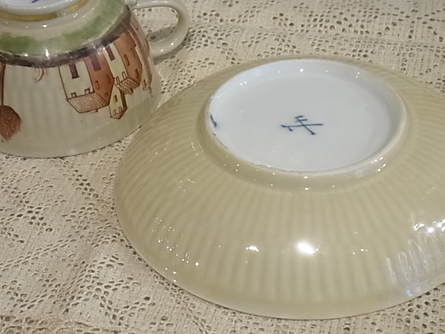 カップの中の絵柄は、また地元の田園の農家の風景で・・・ ※カーソルを置きますと、拡大写真がご覧になれます。 カップの縁の金彩に擦れがあります。 |