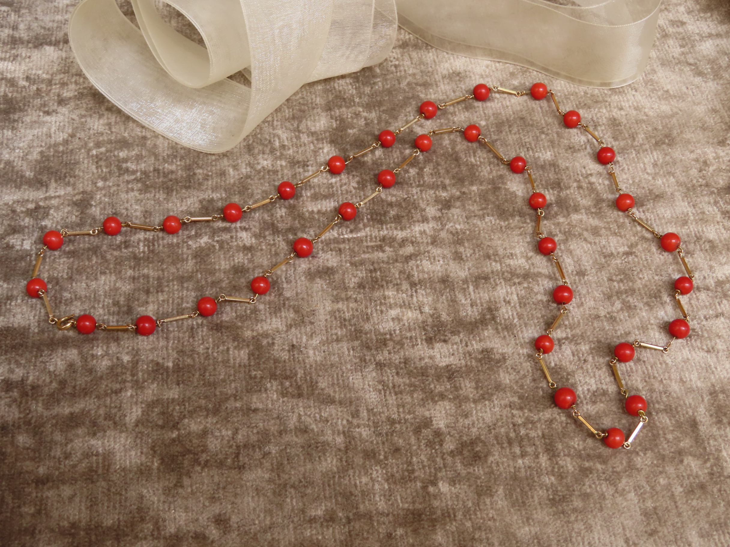 1930年代の、地中海珊瑚のステーションネックレスです。