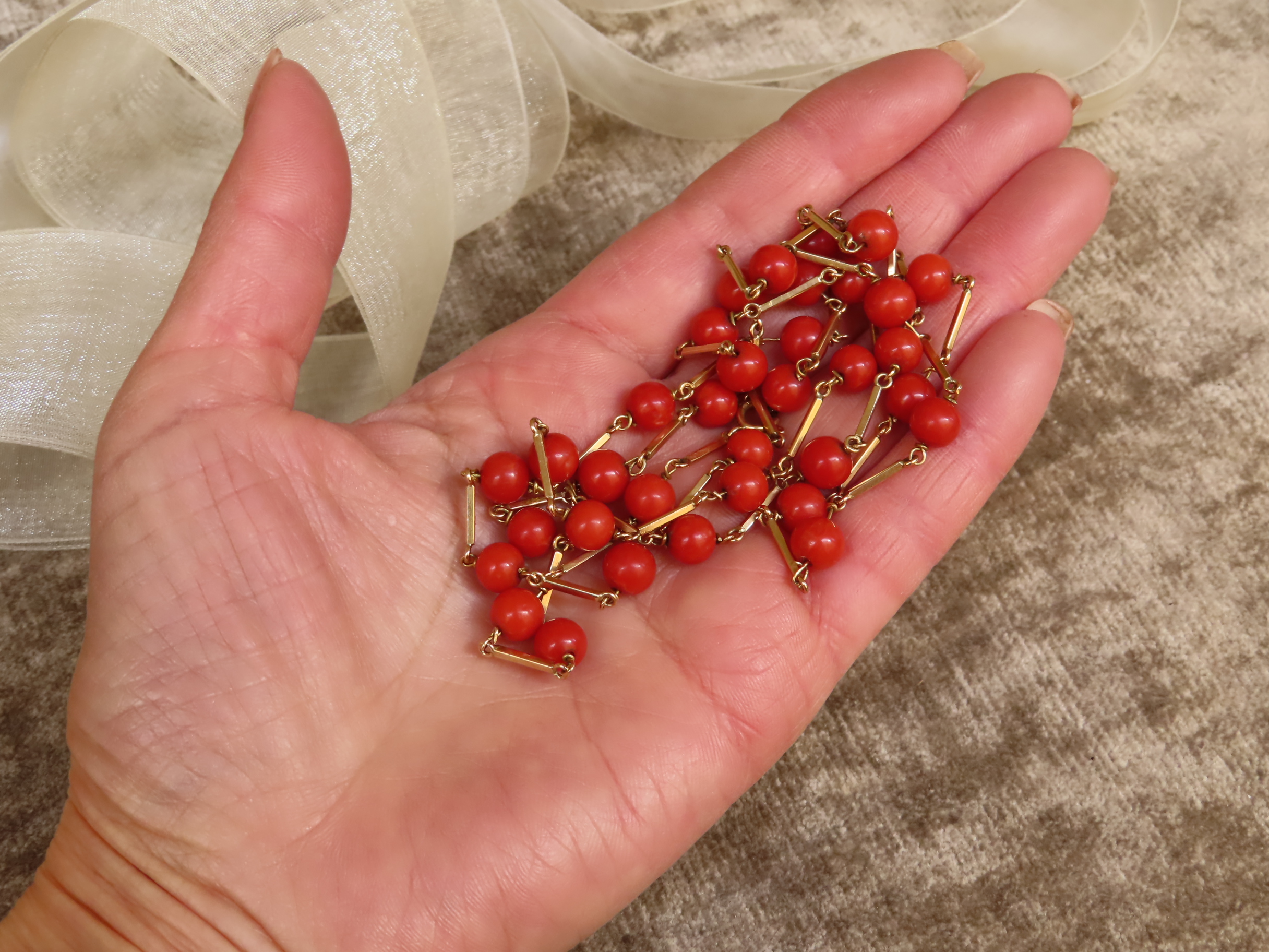 今では枯渇している地中海珊瑚、このような戦前までのものが、この大きさの粒で色も綺麗に揃っています。