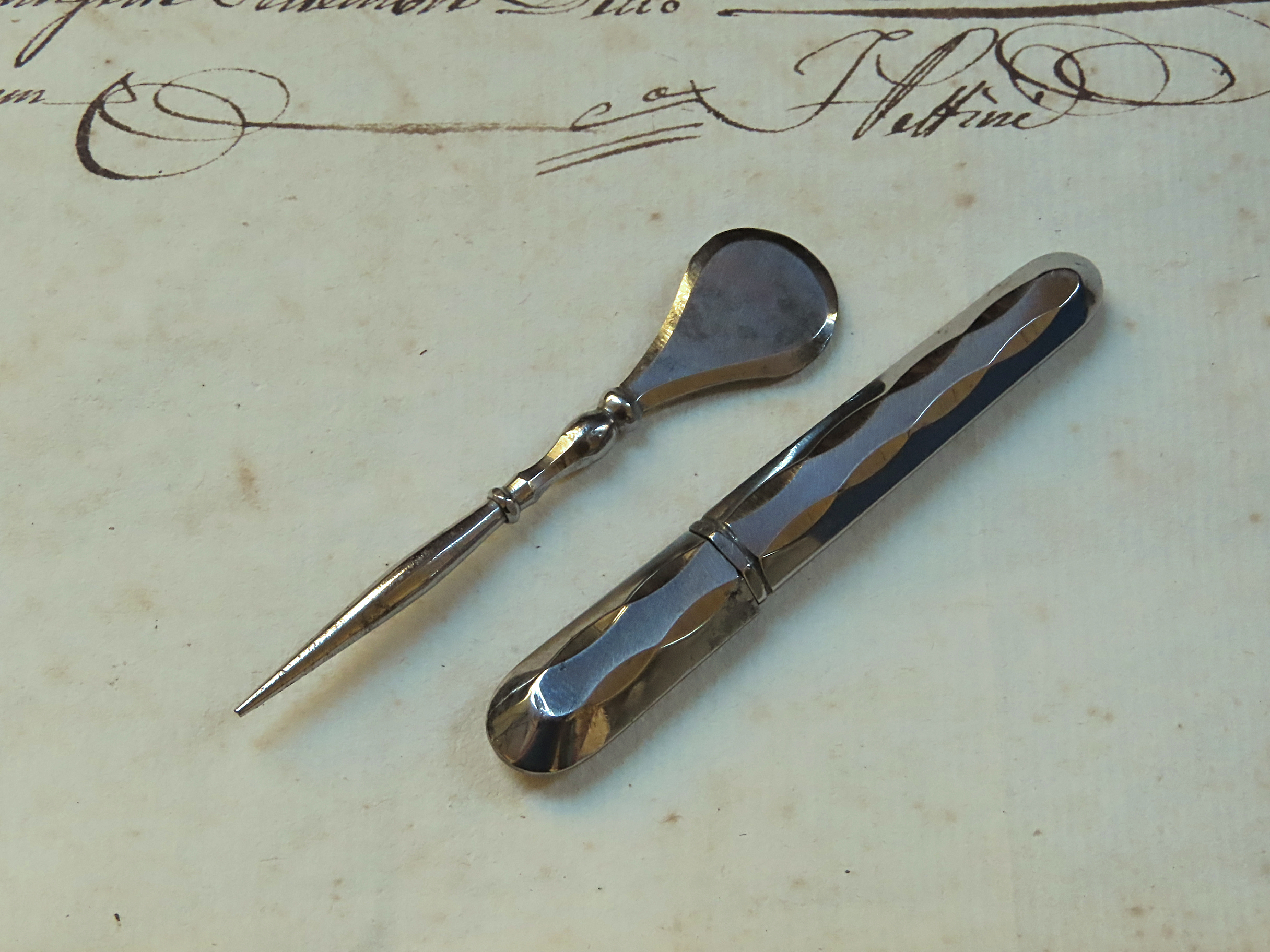 ハサミの柄と指ぬきは、銀製です。
